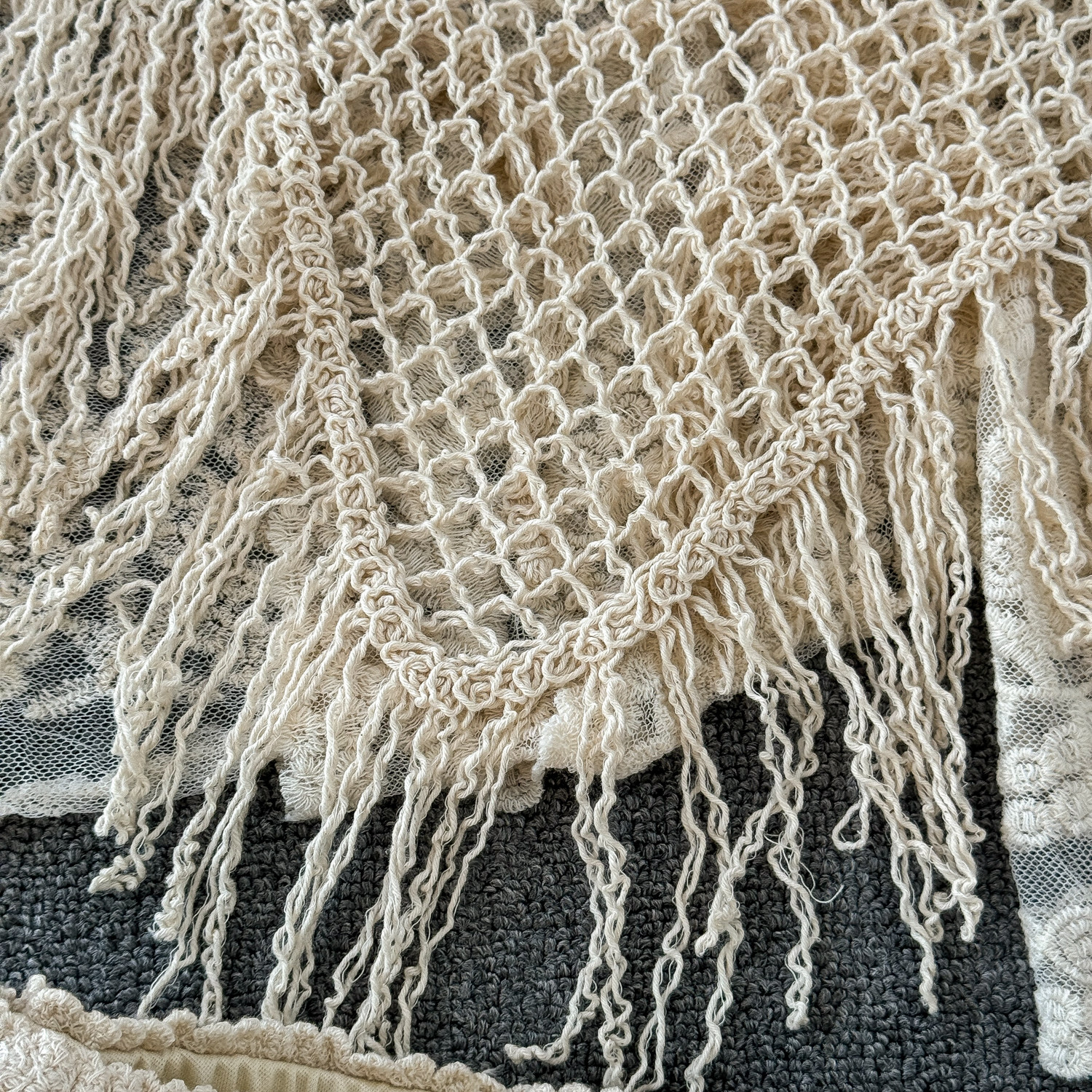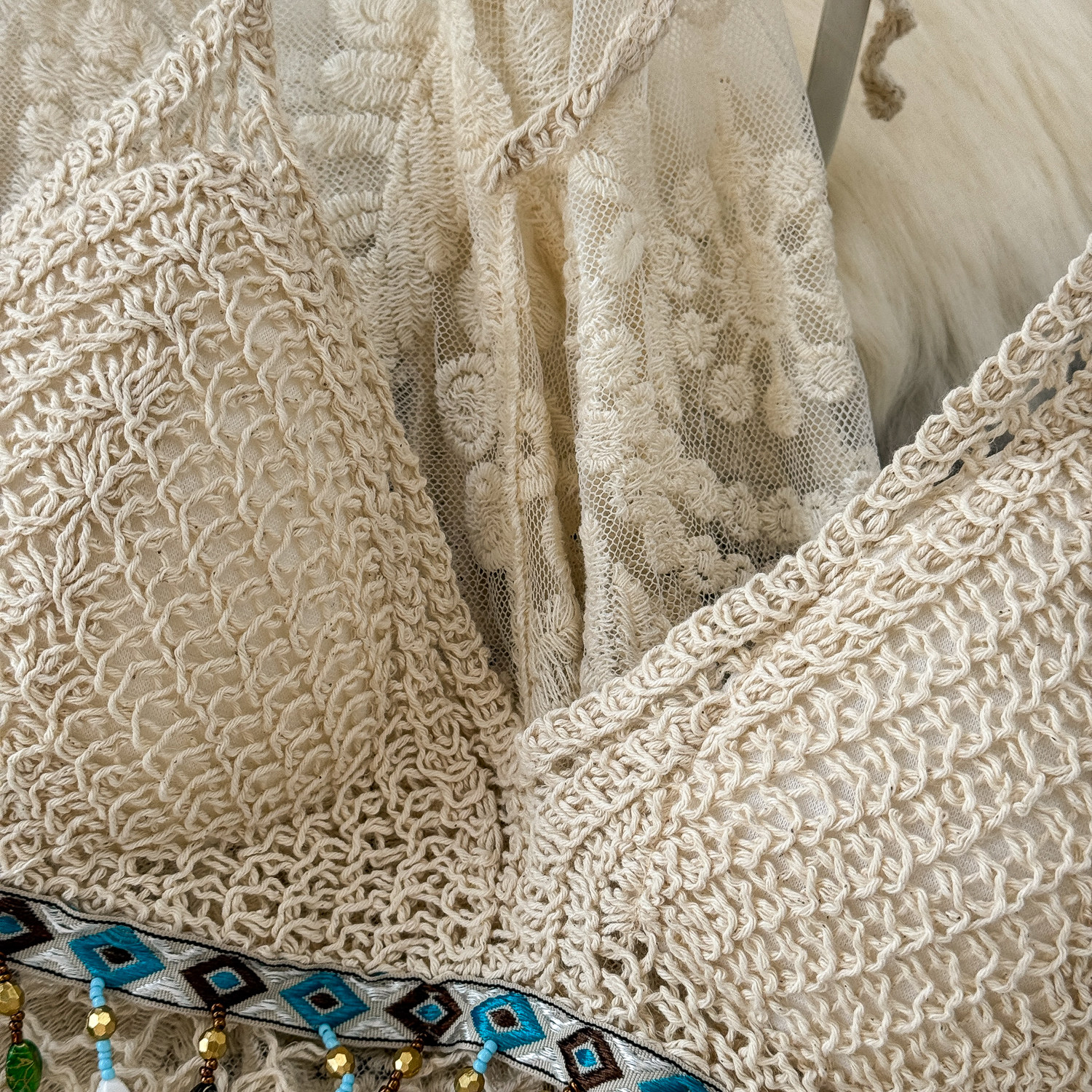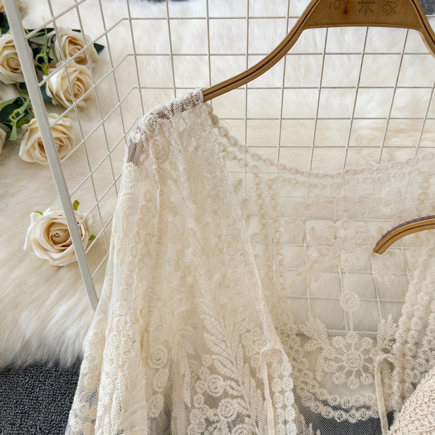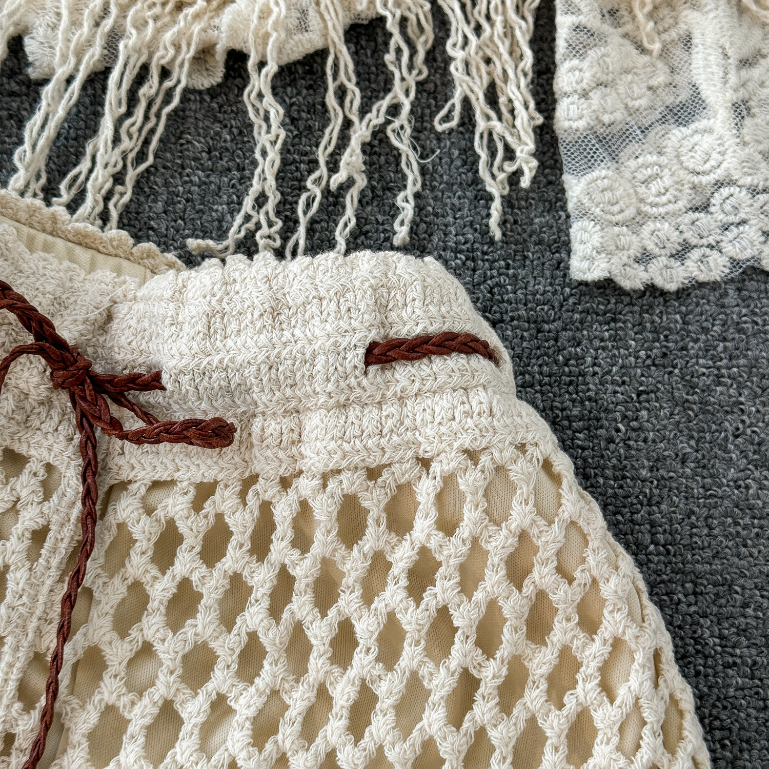 Летний кружевной комплект, кардиган с кисточками, шорты, с вышивкой, 3 предмета