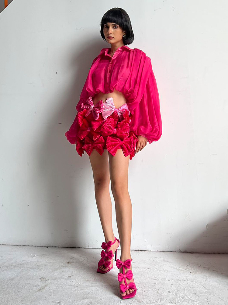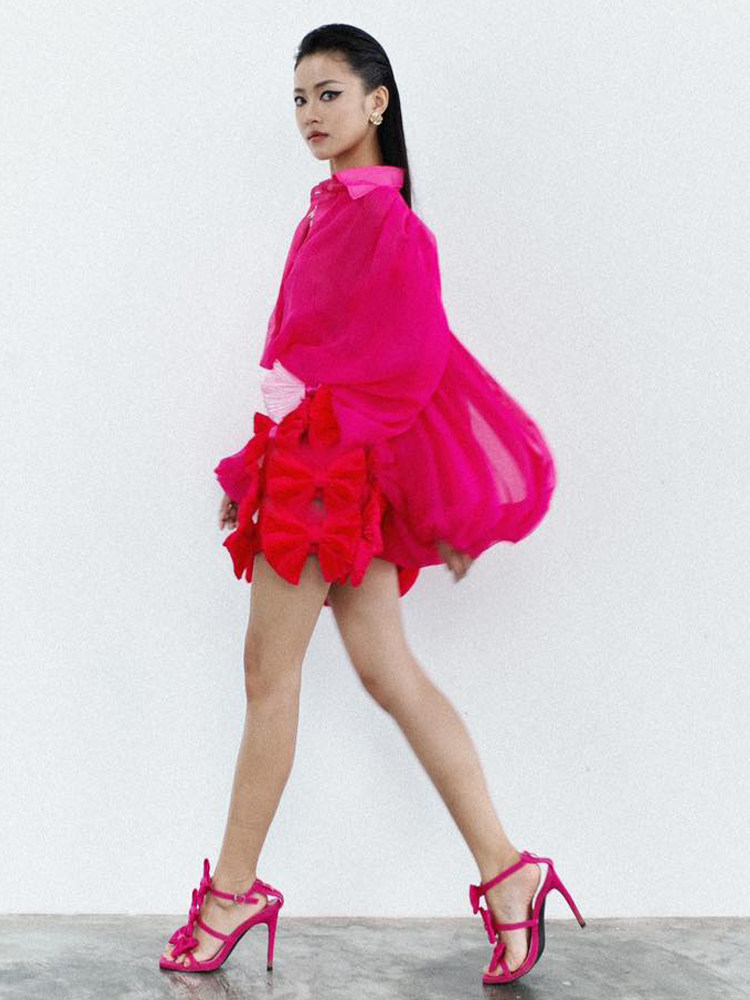 Cat Das La Vie Vietnamese Nishe Design Brand 24 года Новая воздушная плиссированная юбка из рукава лука