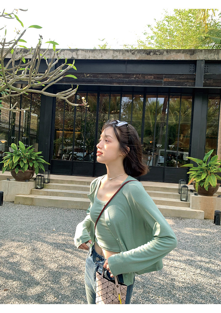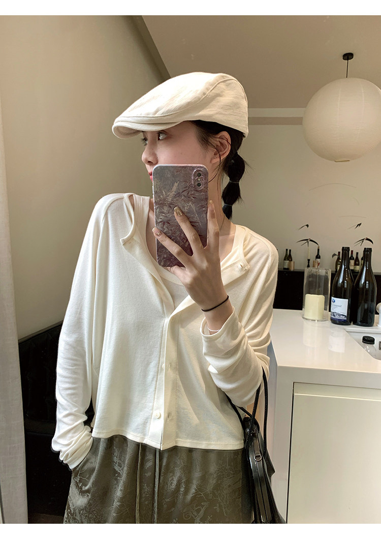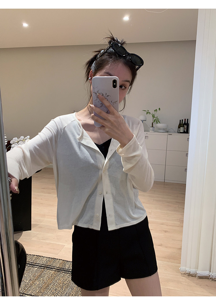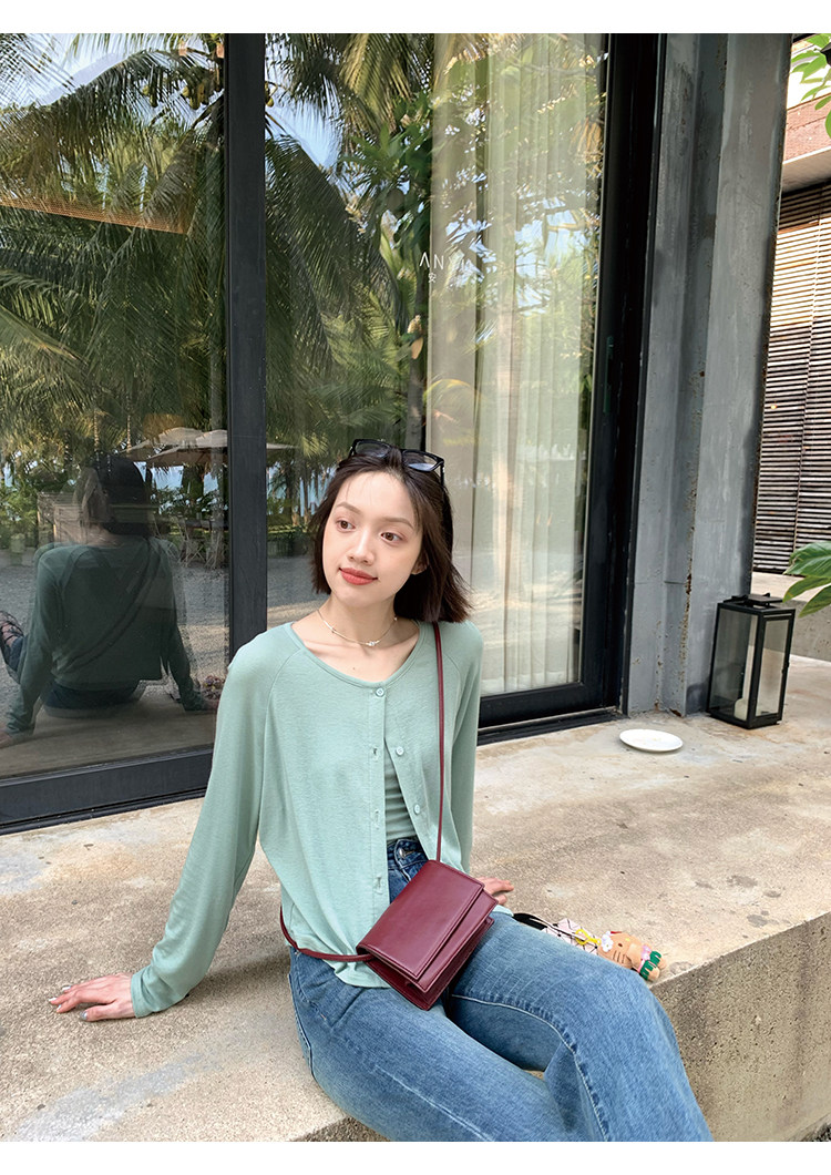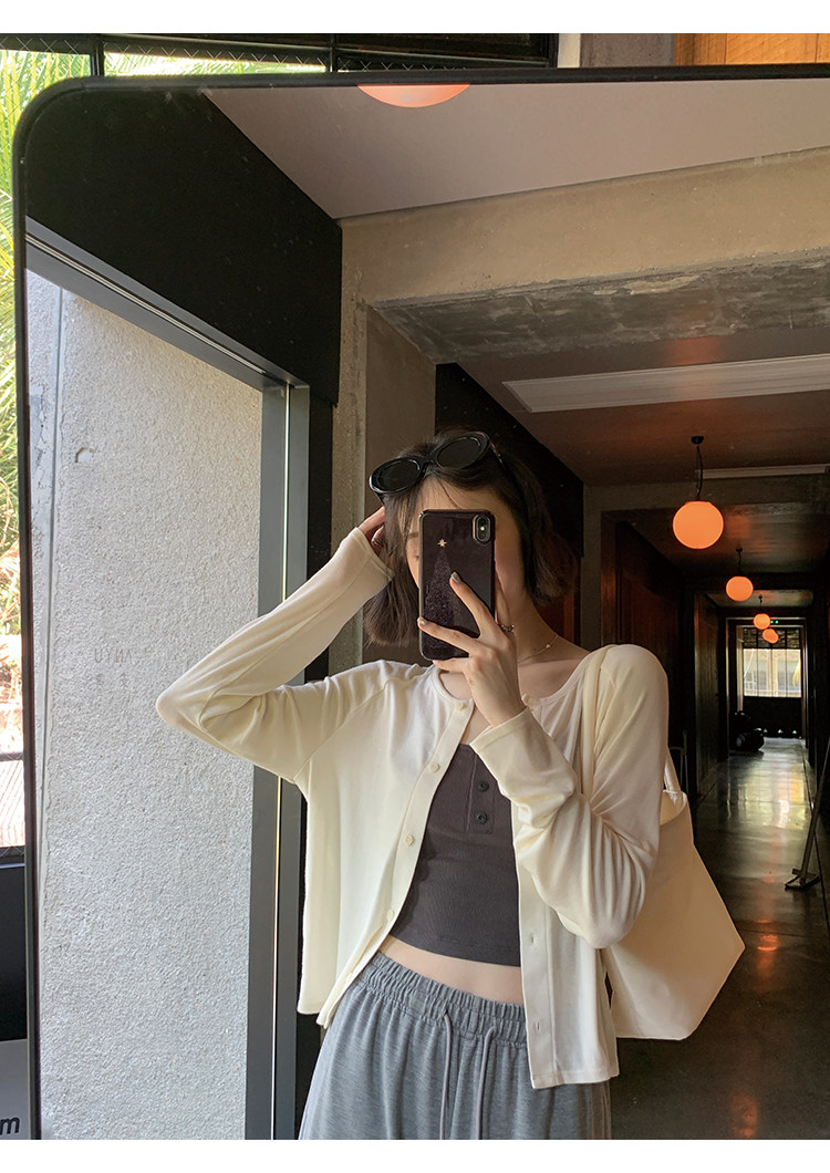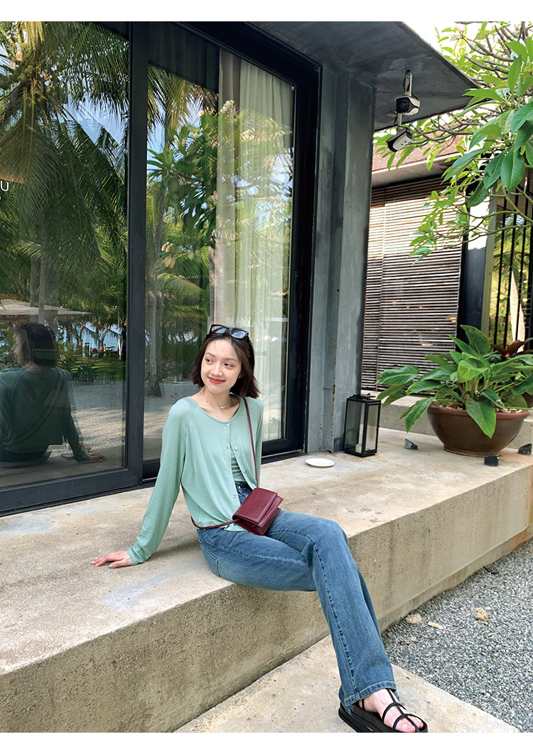 Свет и свет, сопровождающий проникновение в лето ~ Q Бомбы, сосающие пот -поглощающий небо шелковый кардиган+крышка пара молока можно купить в одиночку