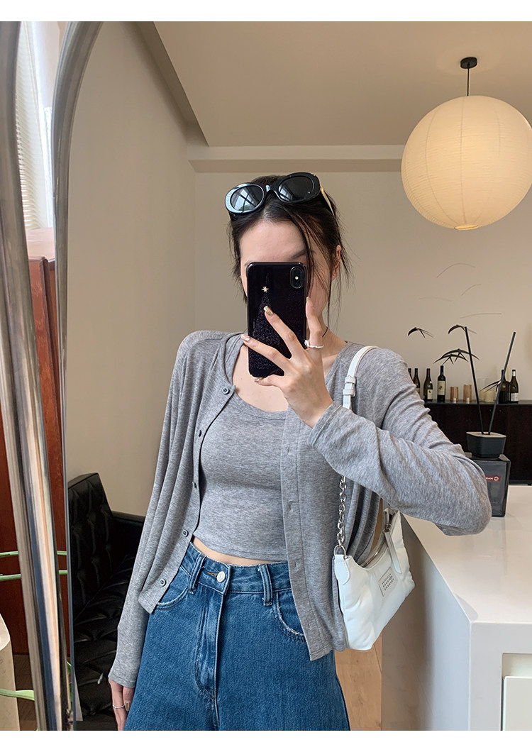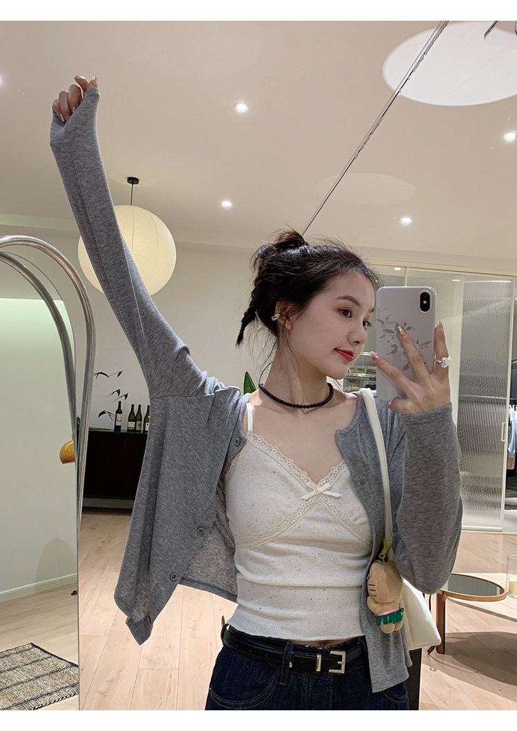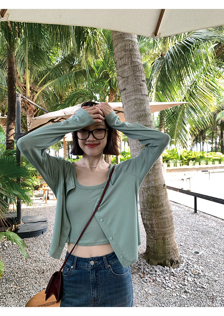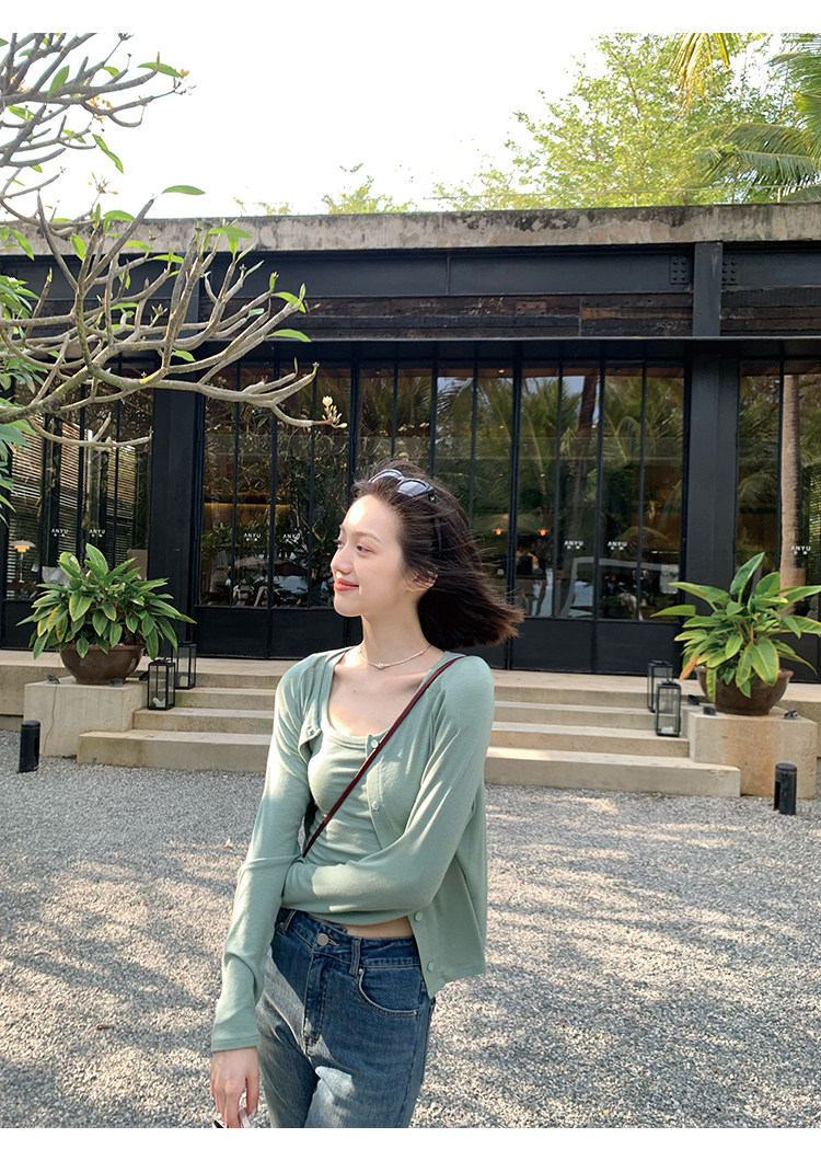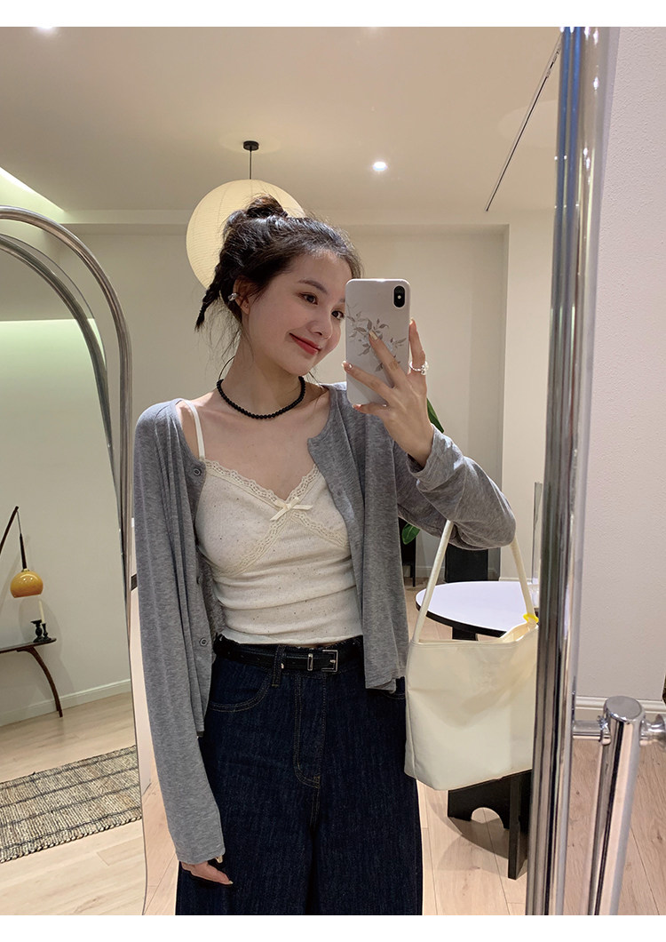 Свет и свет, сопровождающий проникновение в лето ~ Q Бомбы, сосающие пот -поглощающий небо шелковый кардиган+крышка пара молока можно купить в одиночку