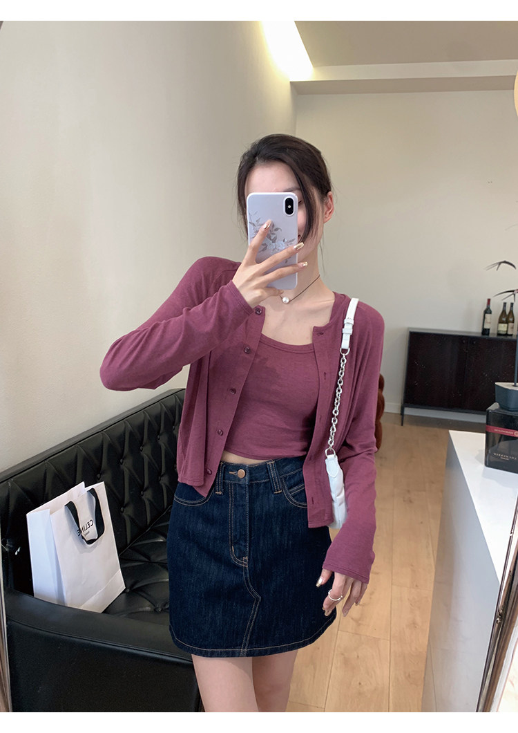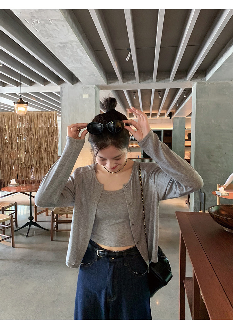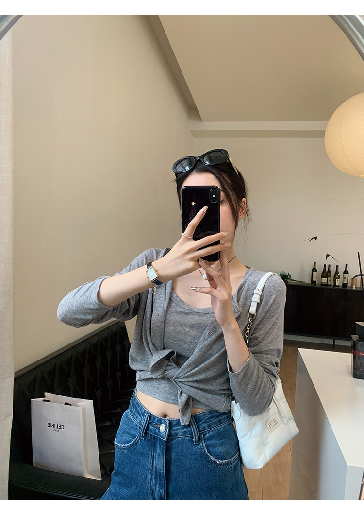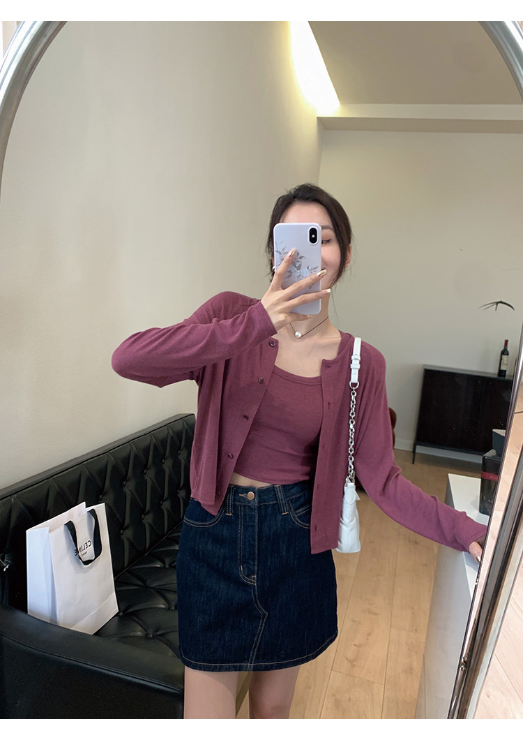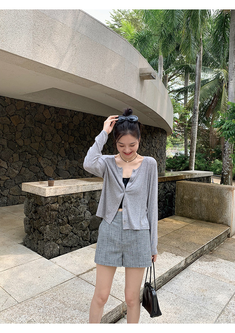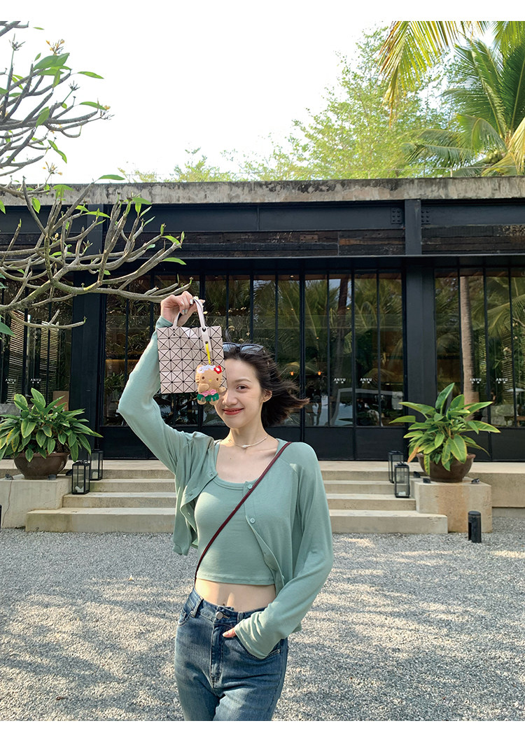 Свет и свет, сопровождающий проникновение в лето ~ Q Бомбы, сосающие пот -поглощающий небо шелковый кардиган+крышка пара молока можно купить в одиночку