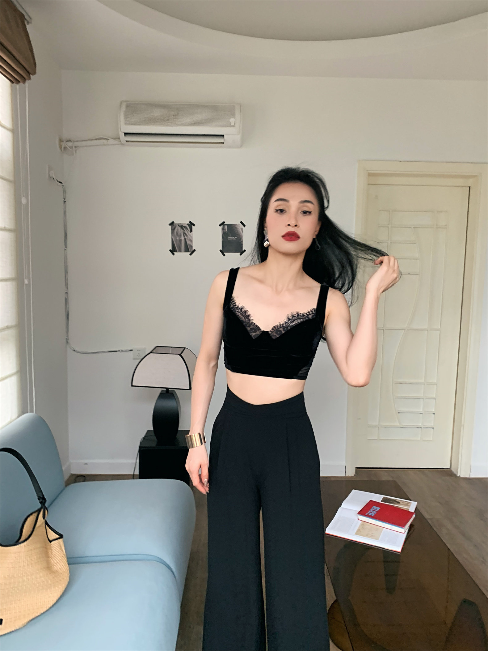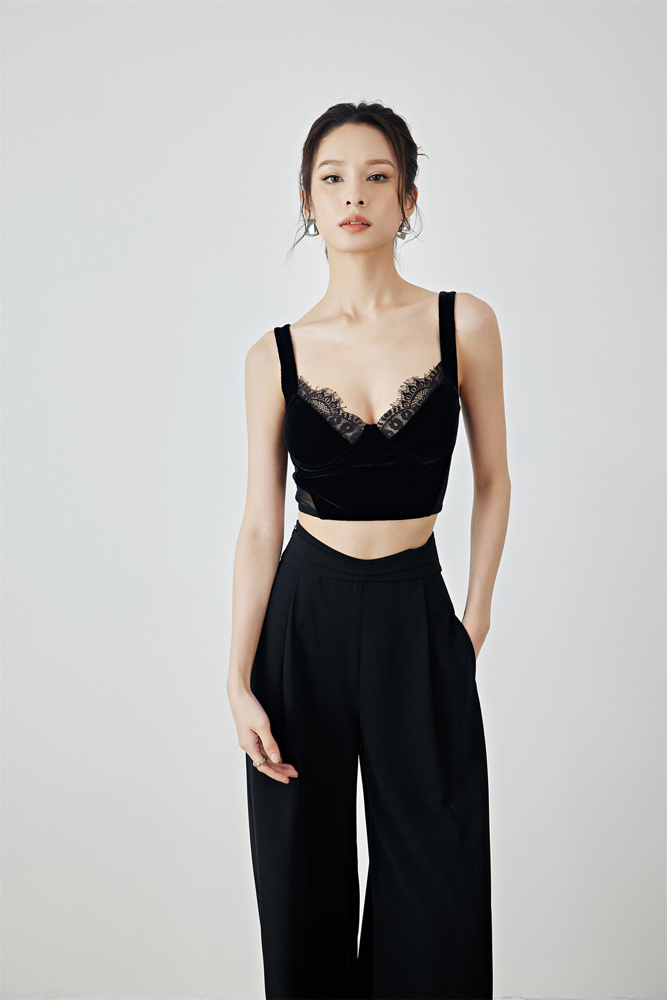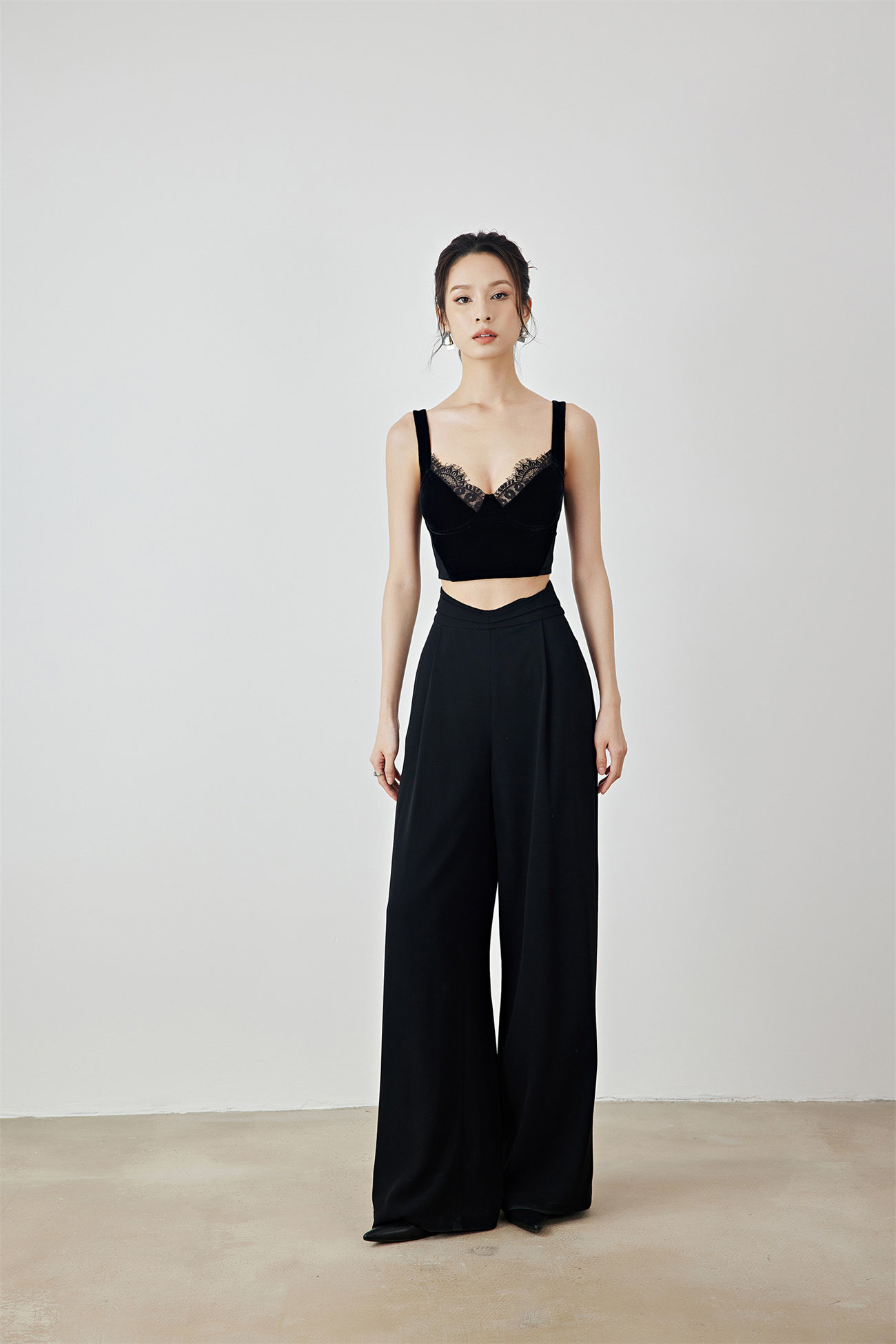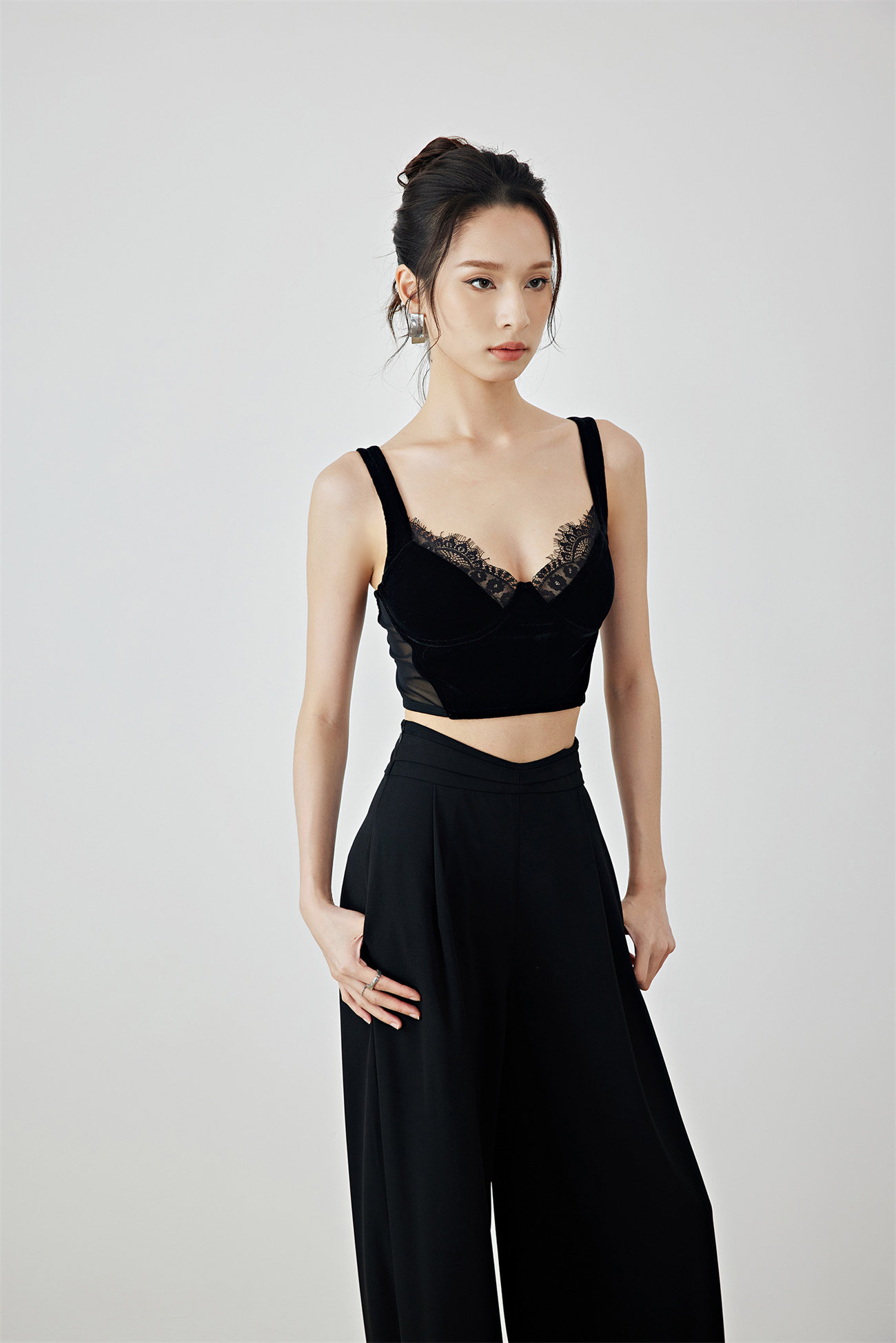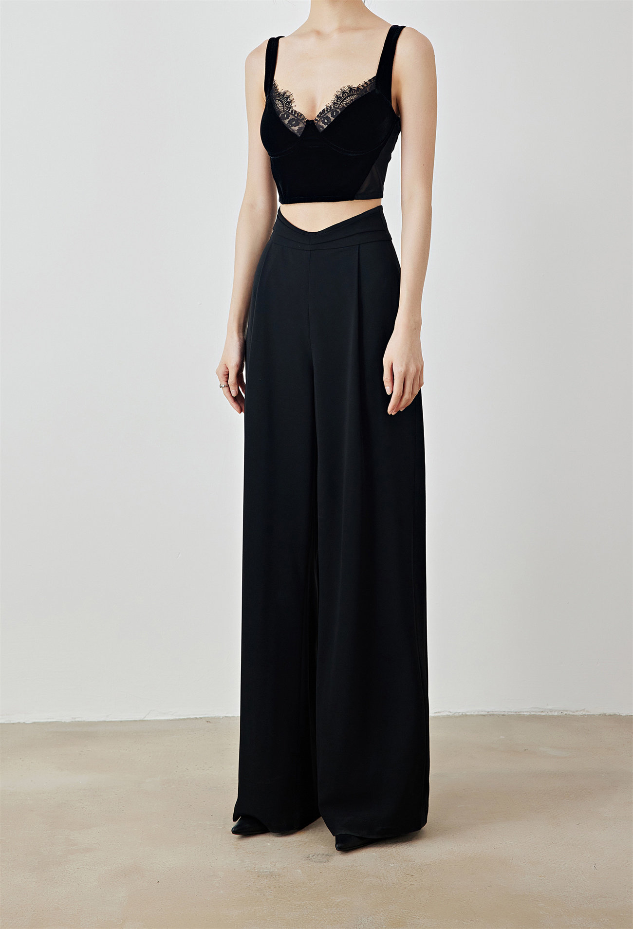Летний черный бархатный кружевной лебедь, жилет, штаны, высокая талия