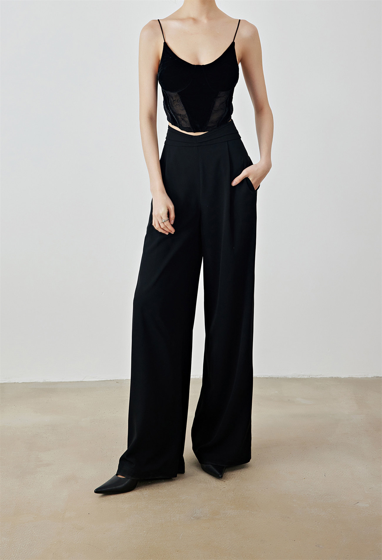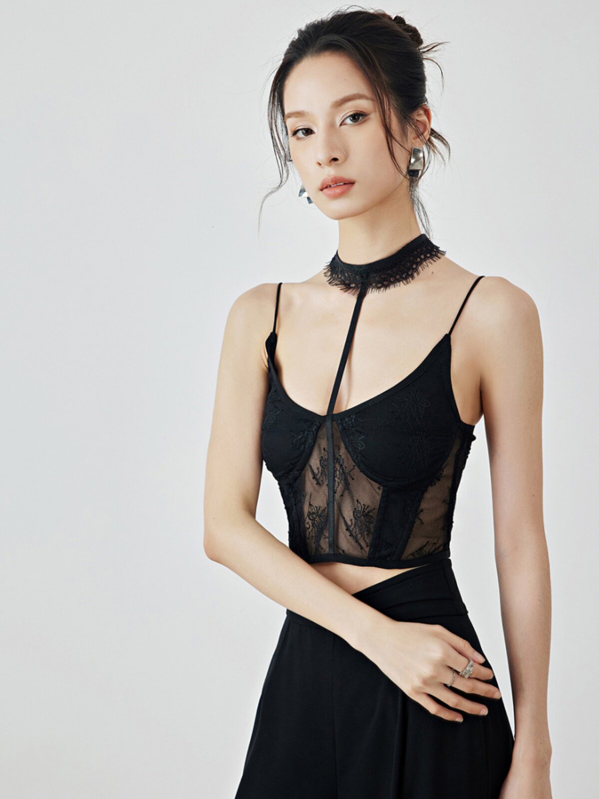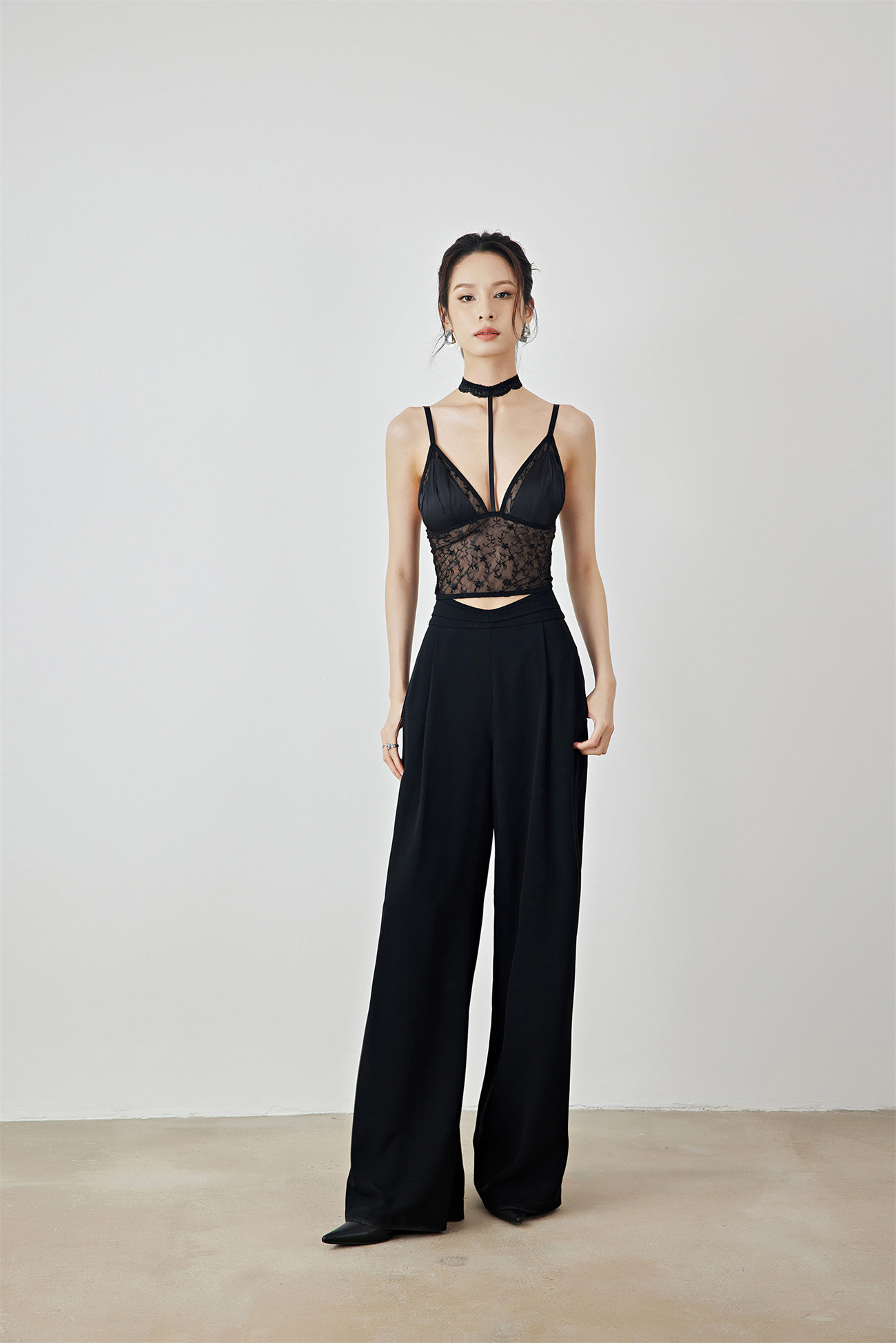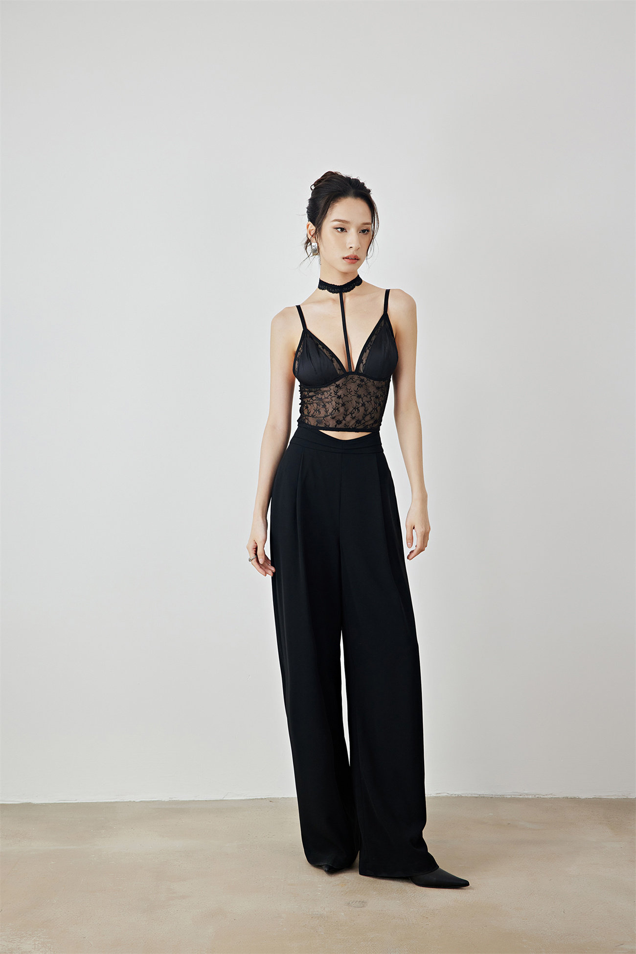 Летний черный бархатный кружевной лебедь, жилет, штаны, высокая талия