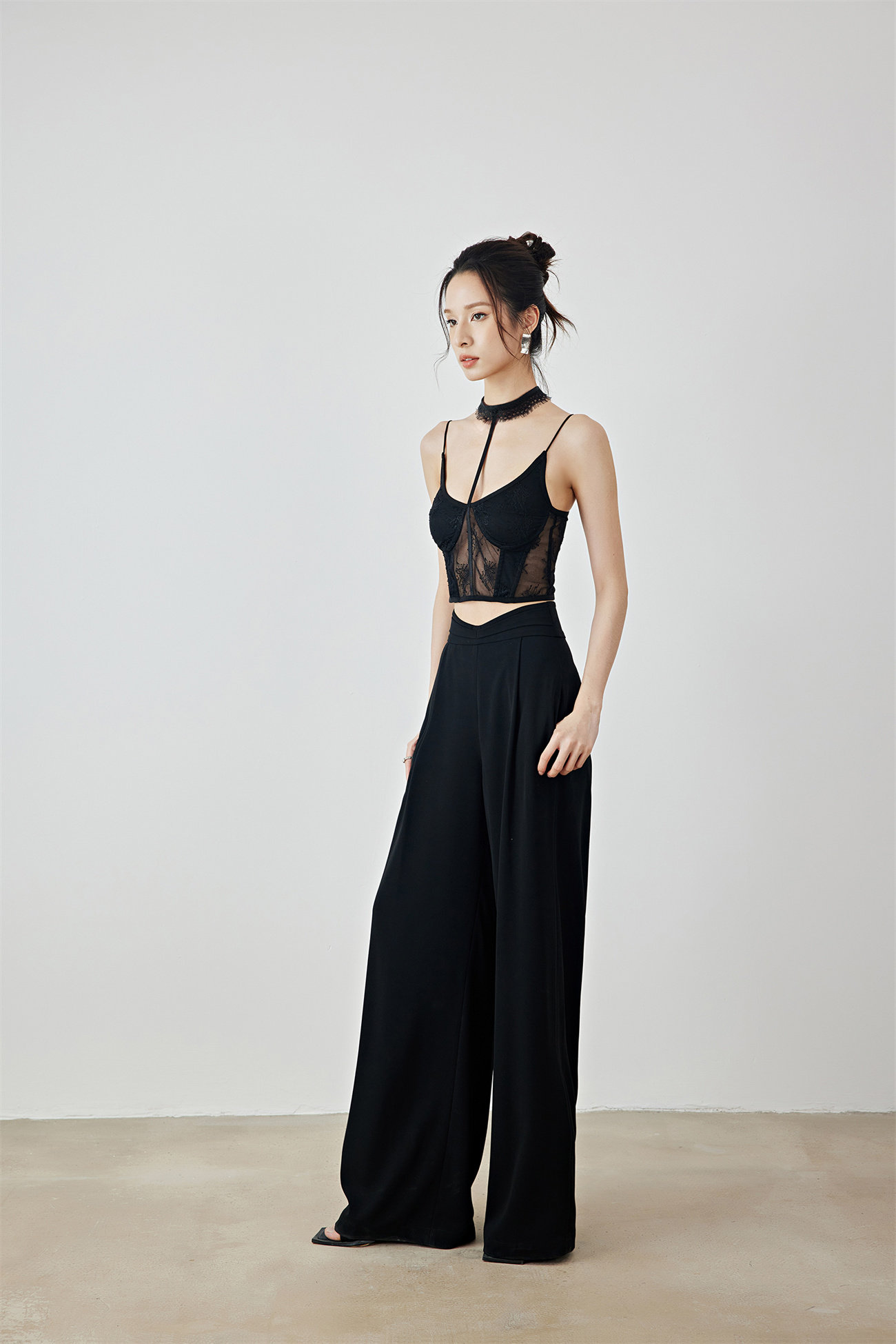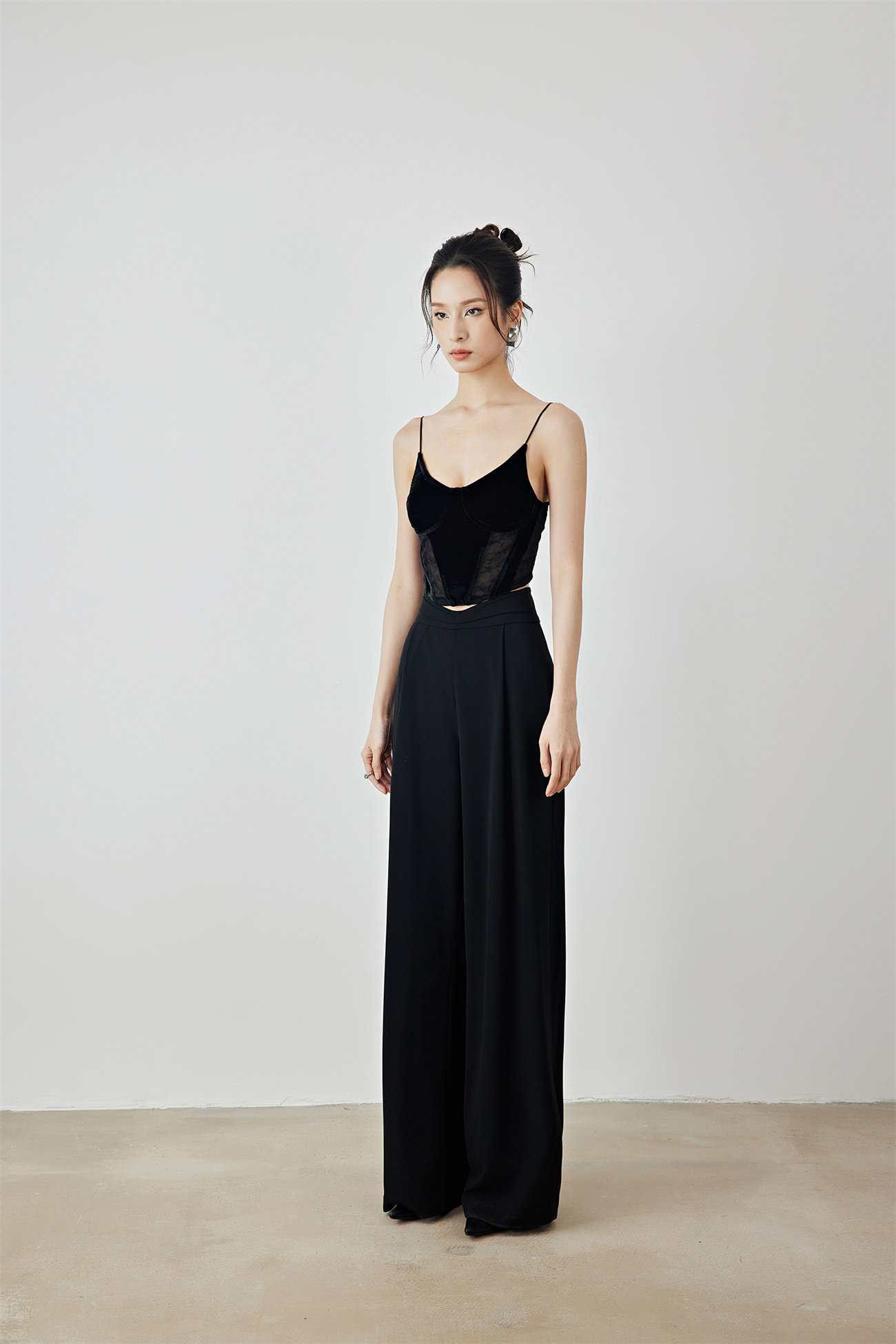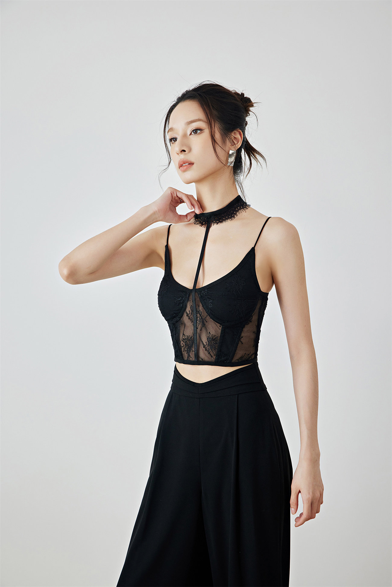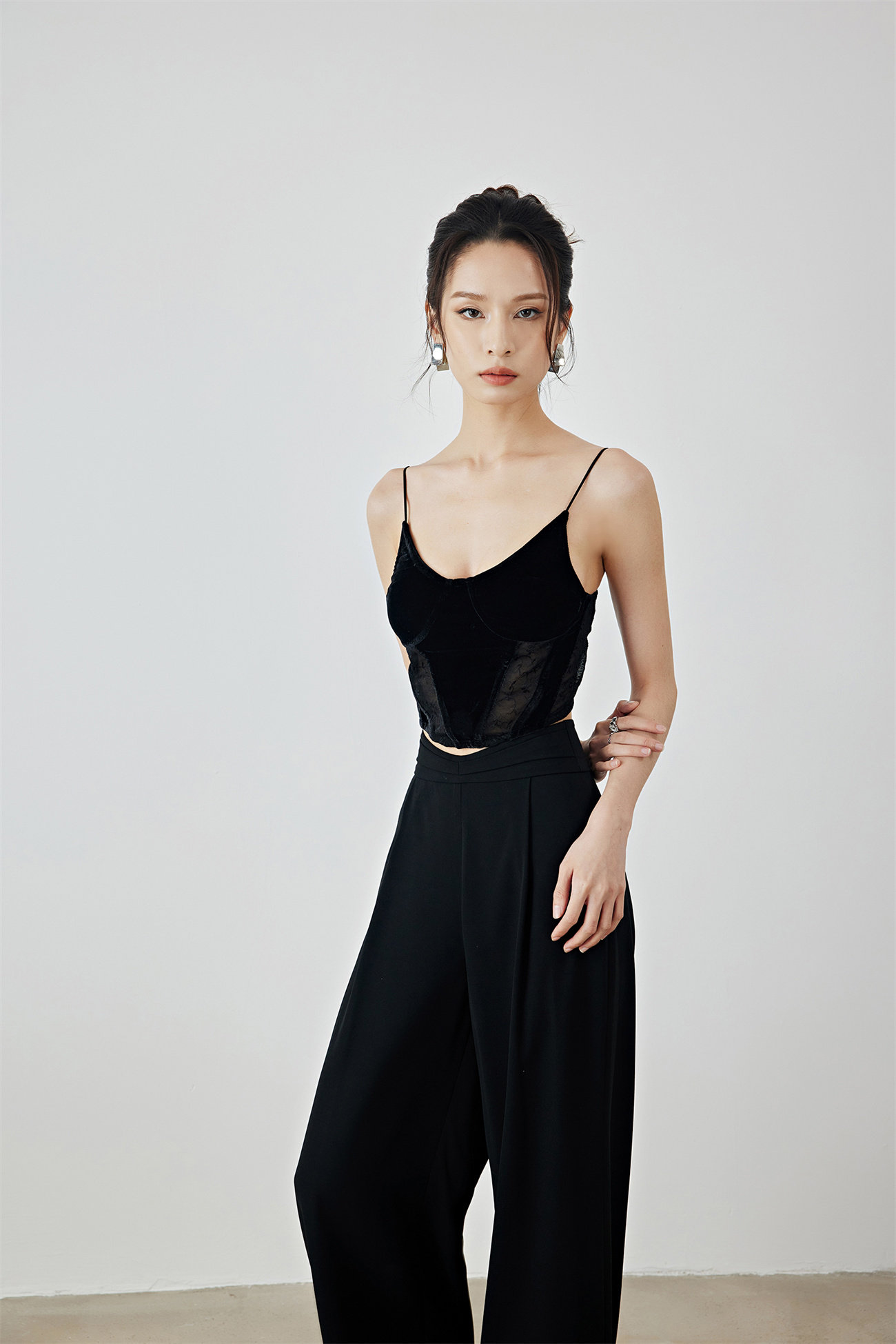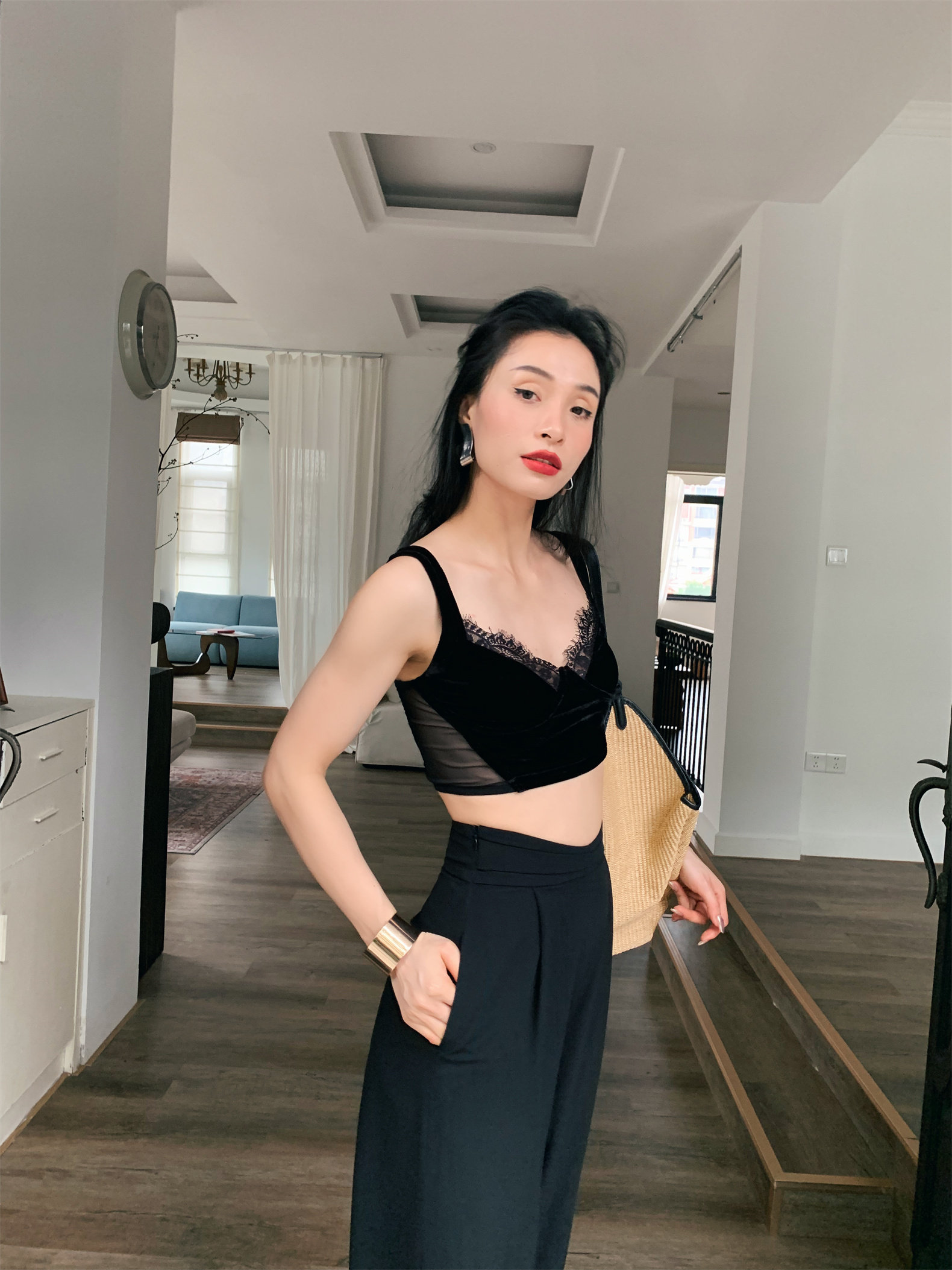 Летний черный бархатный кружевной лебедь, жилет, штаны, высокая талия