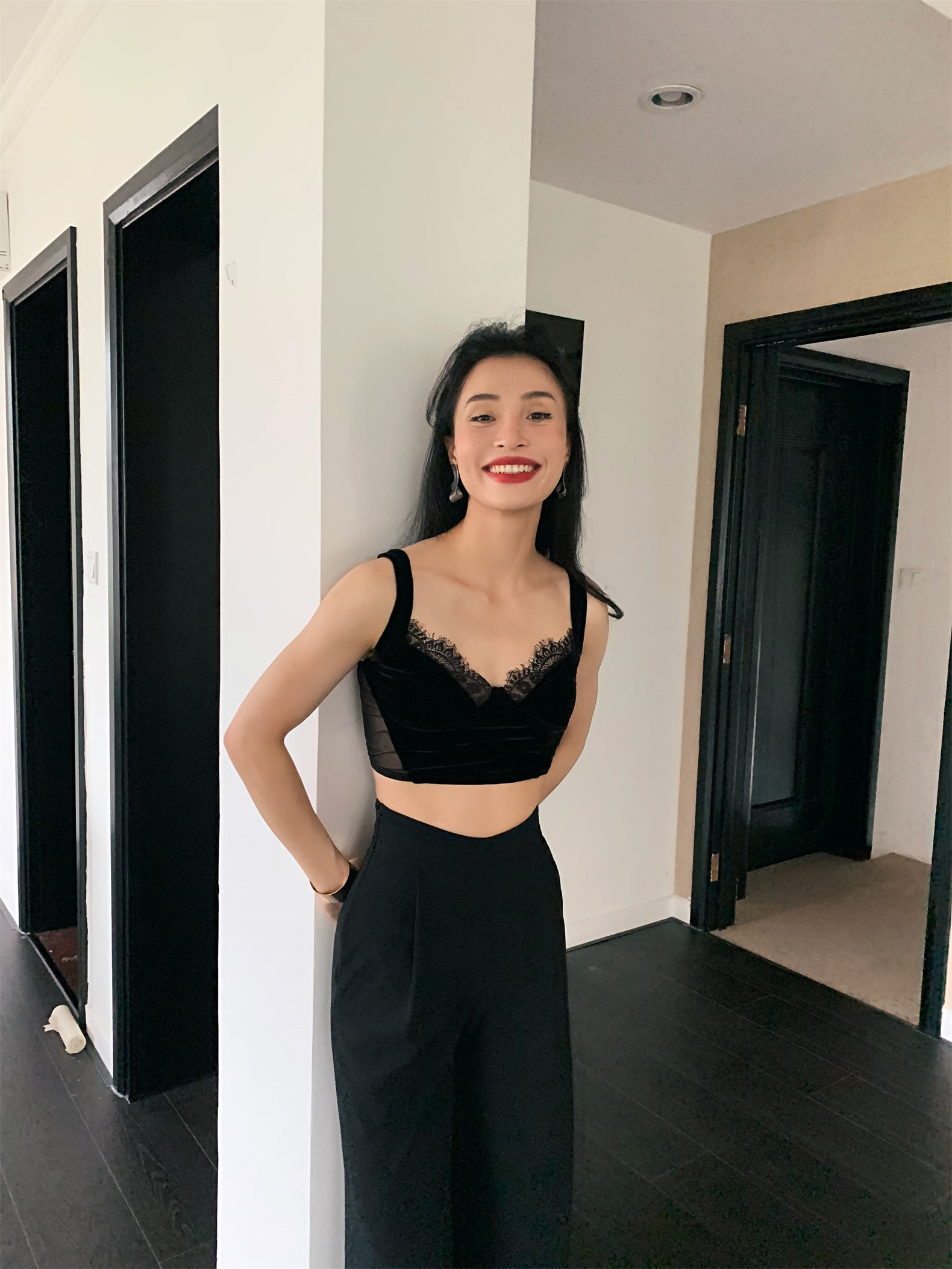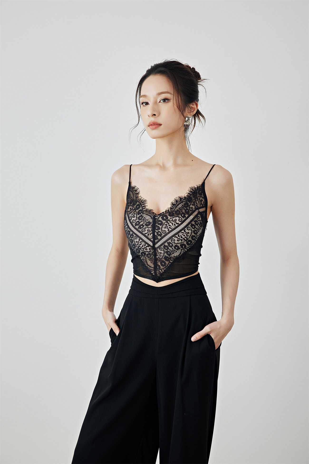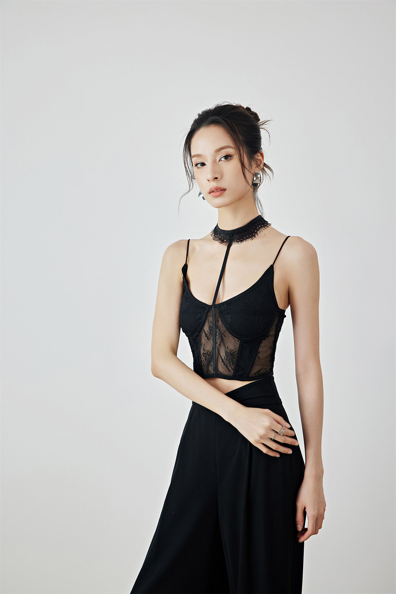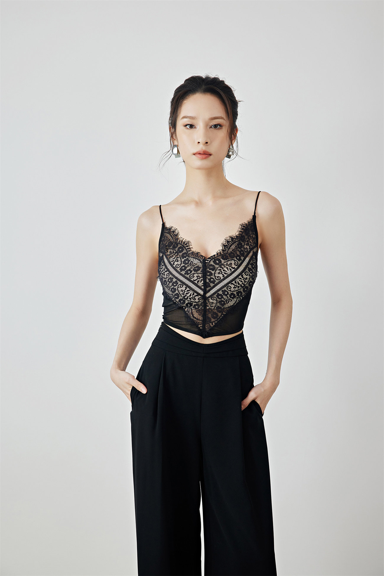 Летний черный бархатный кружевной лебедь, жилет, штаны, высокая талия