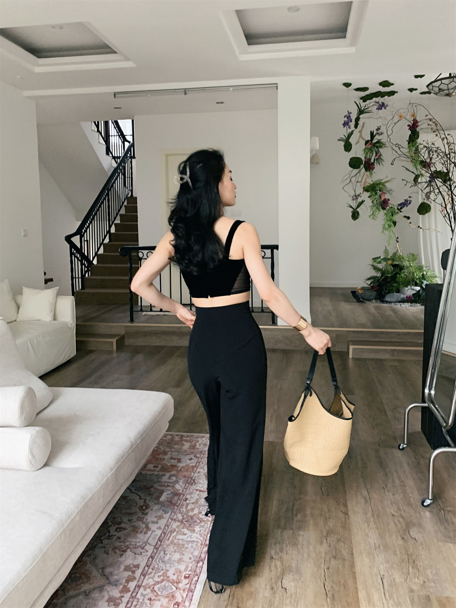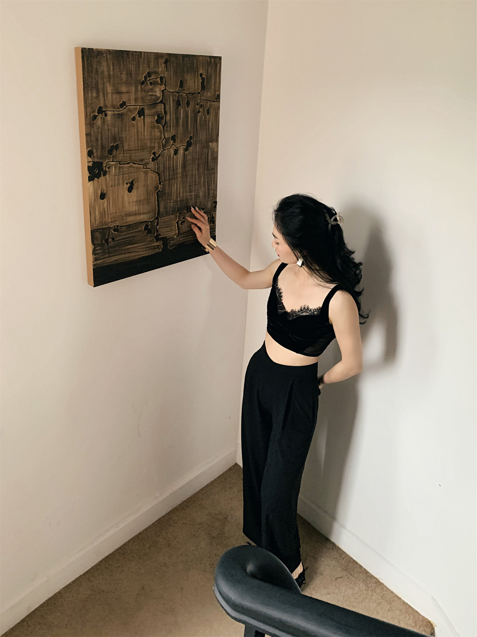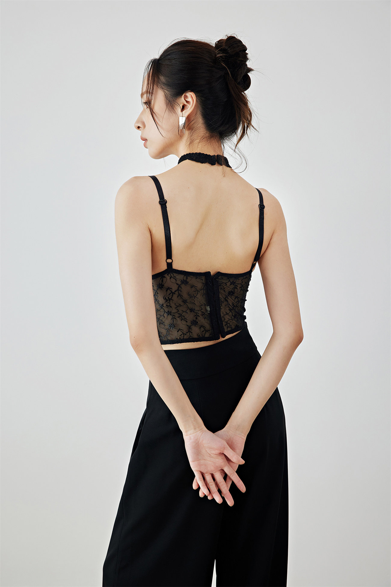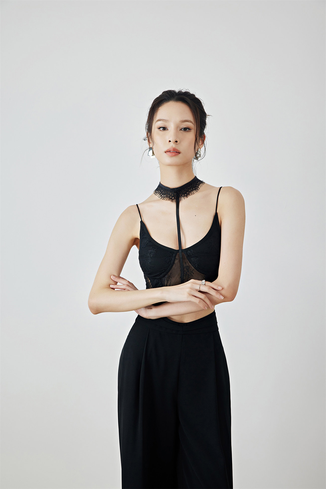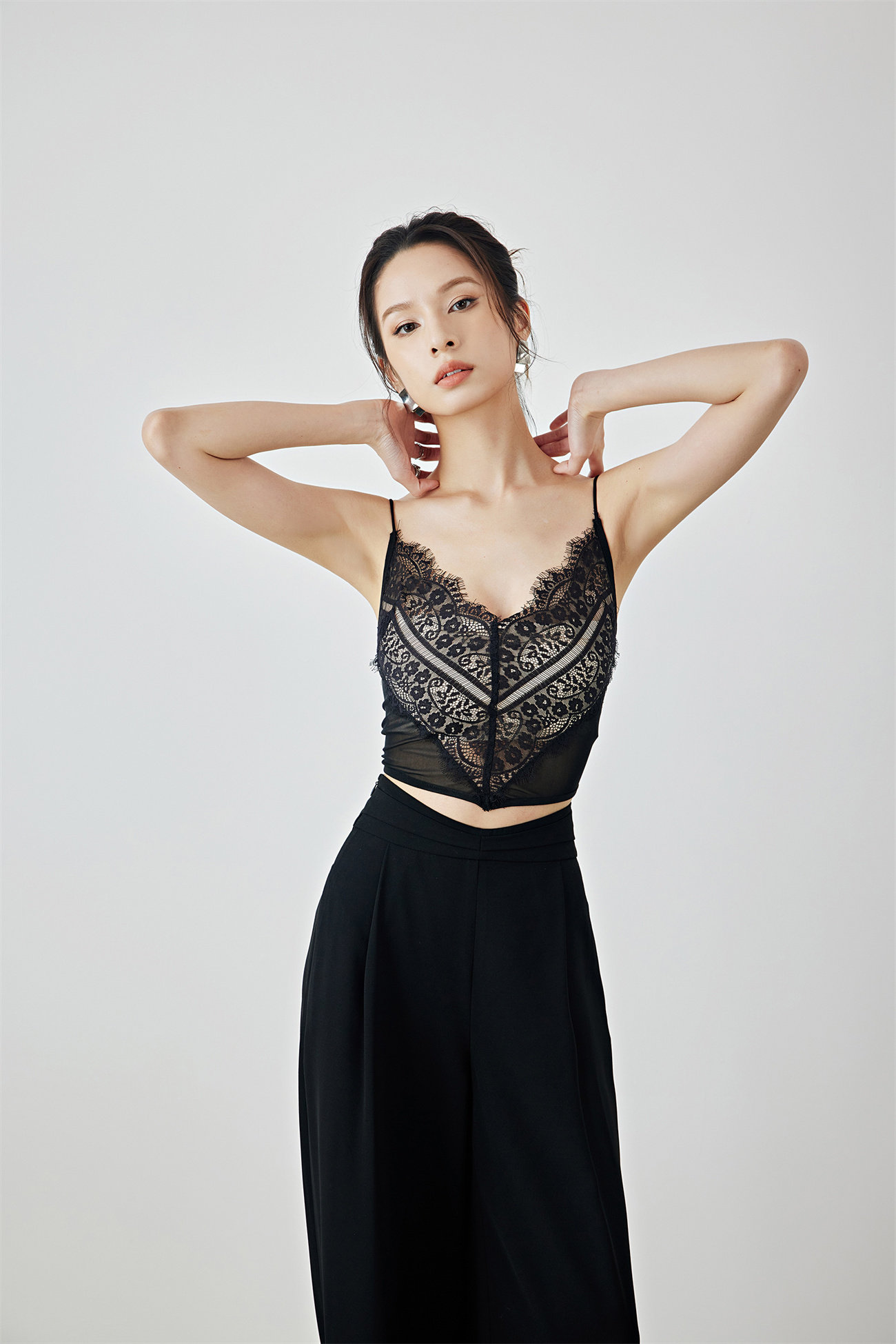 Летний черный бархатный кружевной лебедь, жилет, штаны, высокая талия