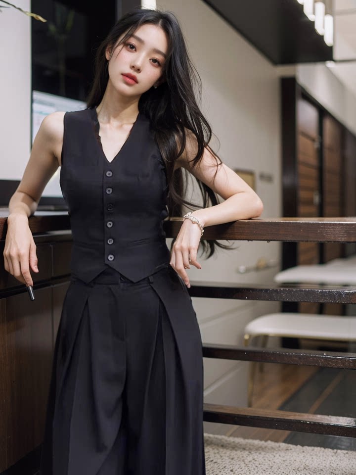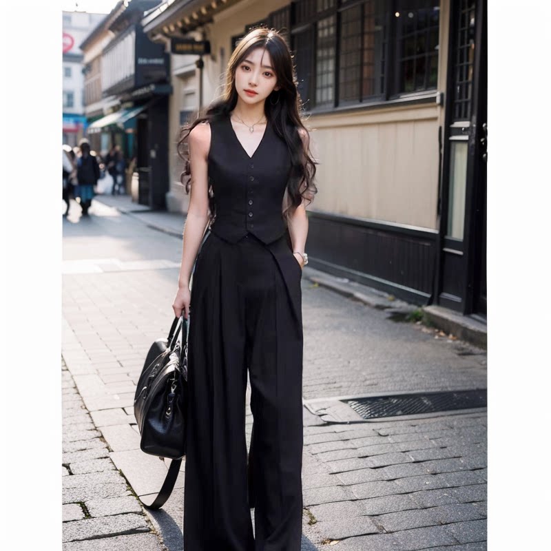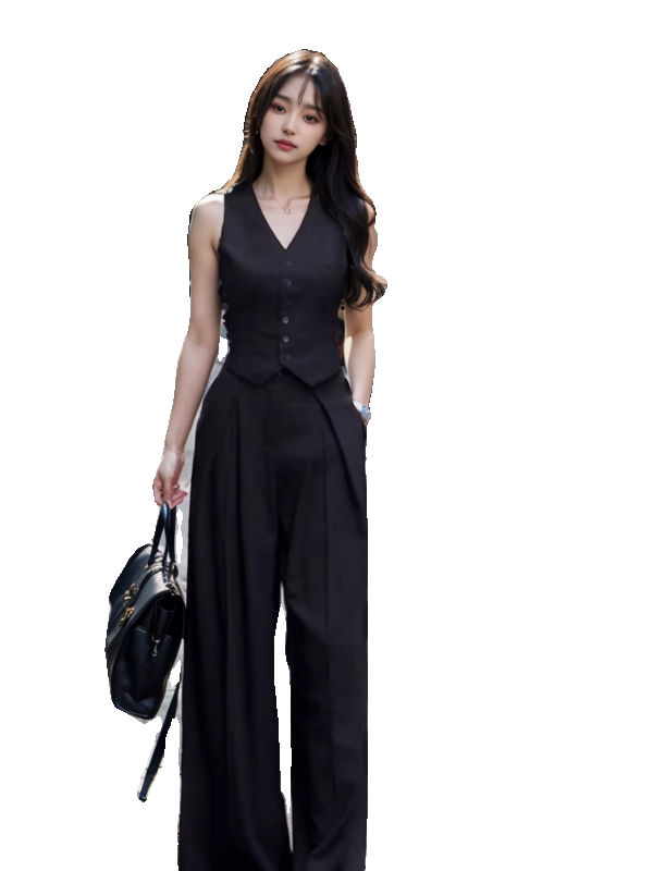 Черный костюм, жилет, летняя тонкая майка топ, элитная пони, футболка без рукавов, в стиле Шанель