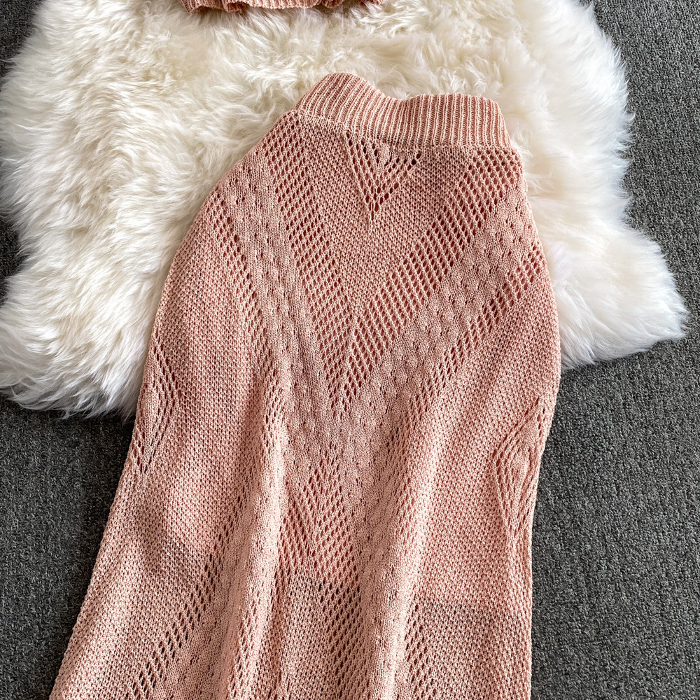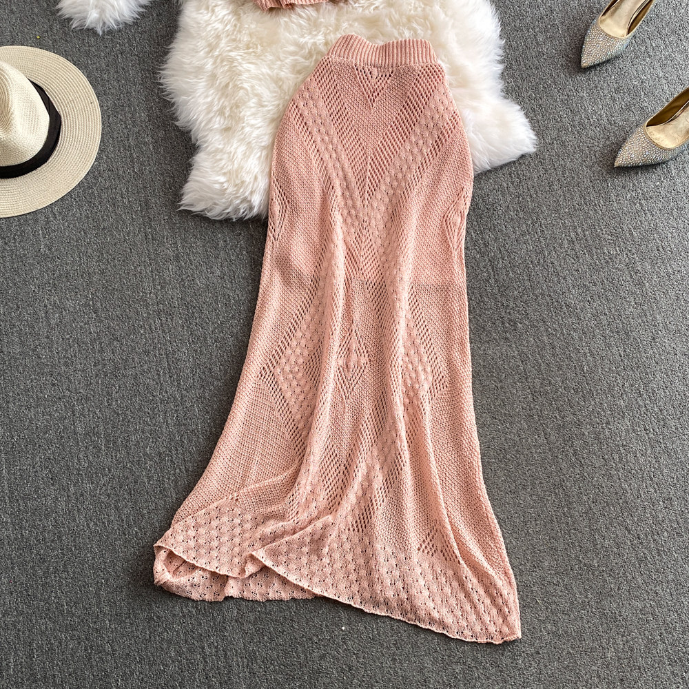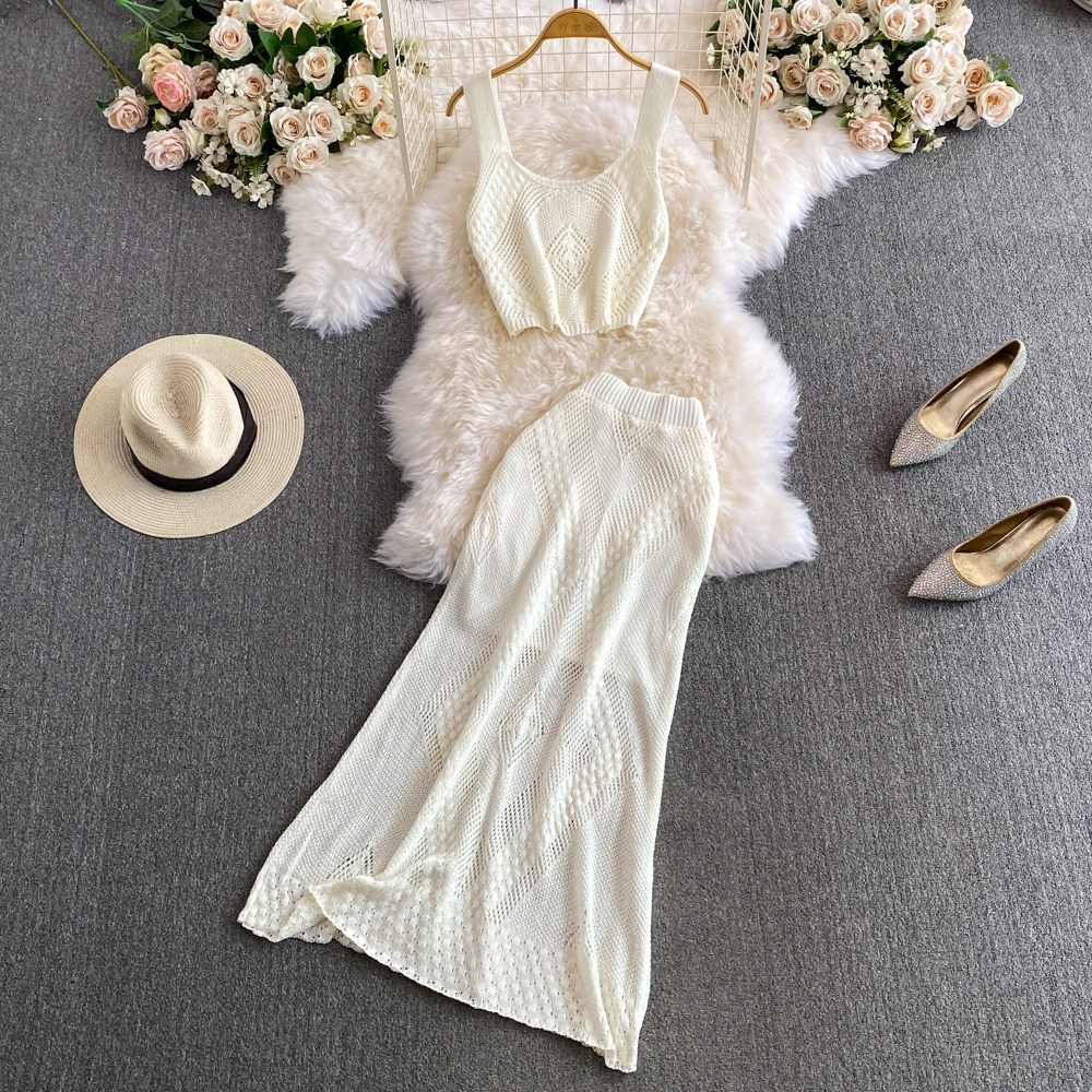 Модный трикотажный летний комплект, топ с чашечками, приталенная длинная юбка, в цветочек, с акцентом на бедрах, высокая талия