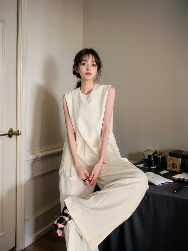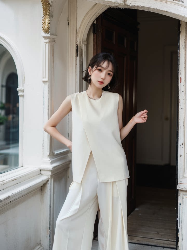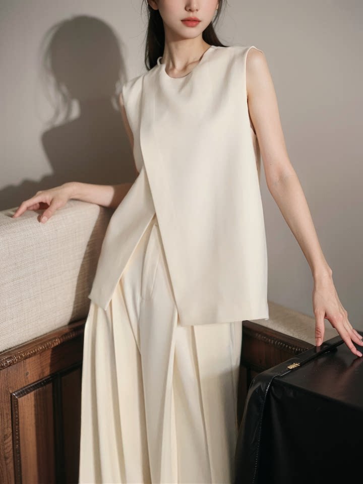 Летняя дизайнерская футболка с круглым воротником, повседневные брюки, комплект, 2025 года, легкий роскошный стиль, тренд сезона, высокая талия, оверсайз
