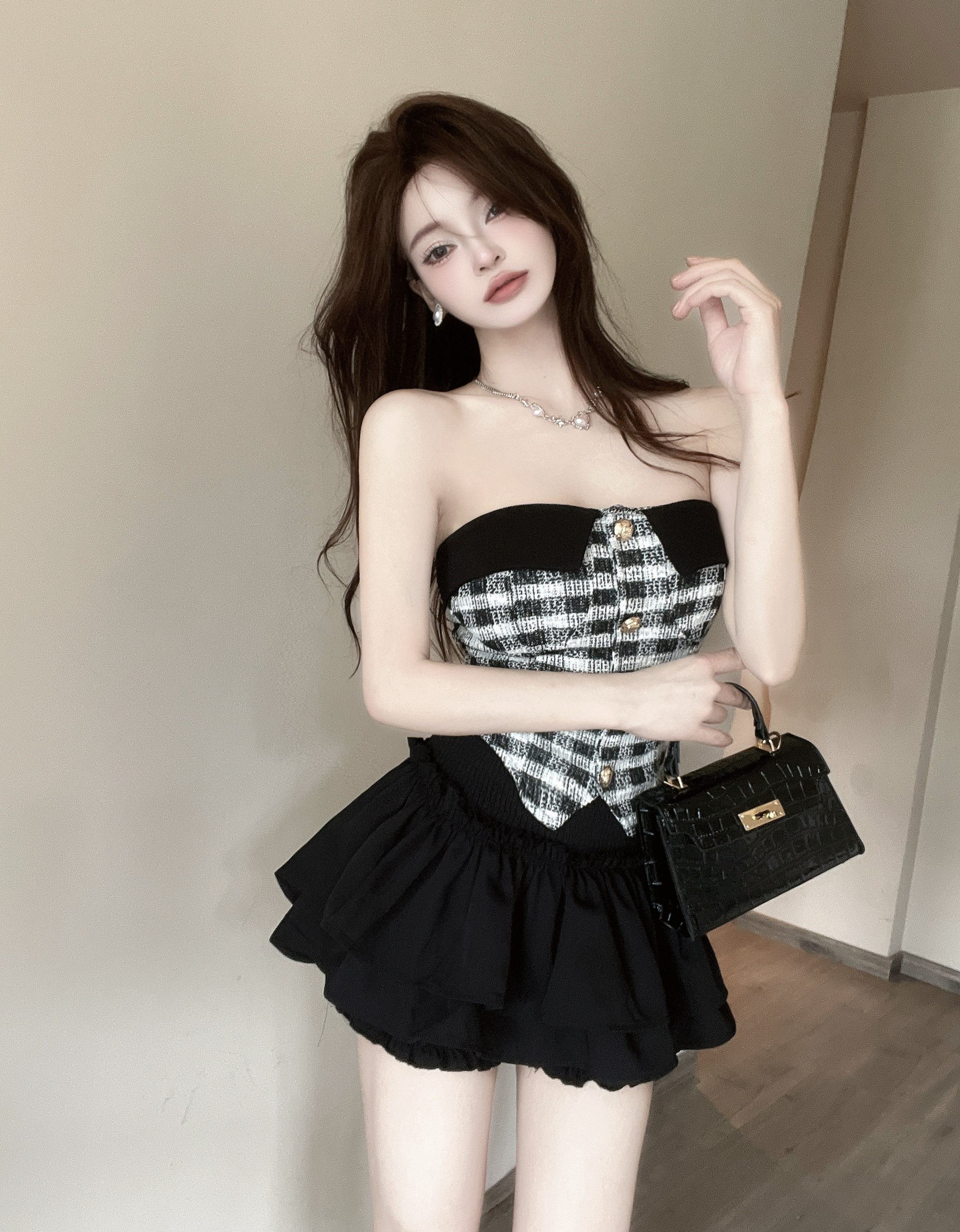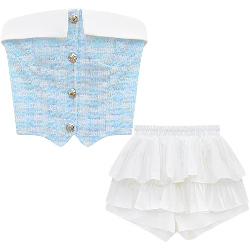 Комплект, бюстгальтер-топ, летняя юбка, мини-юбка, в стиле Шанель, французский стиль
