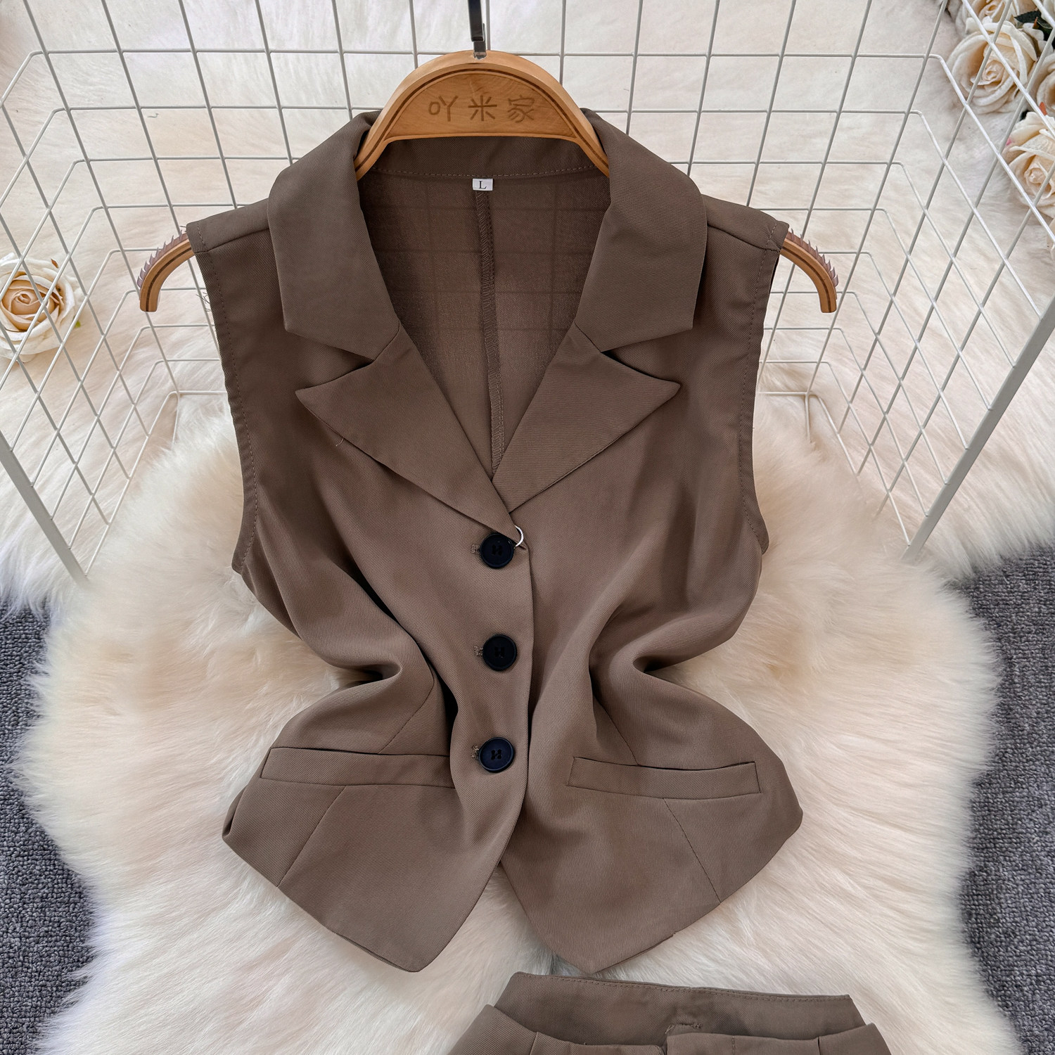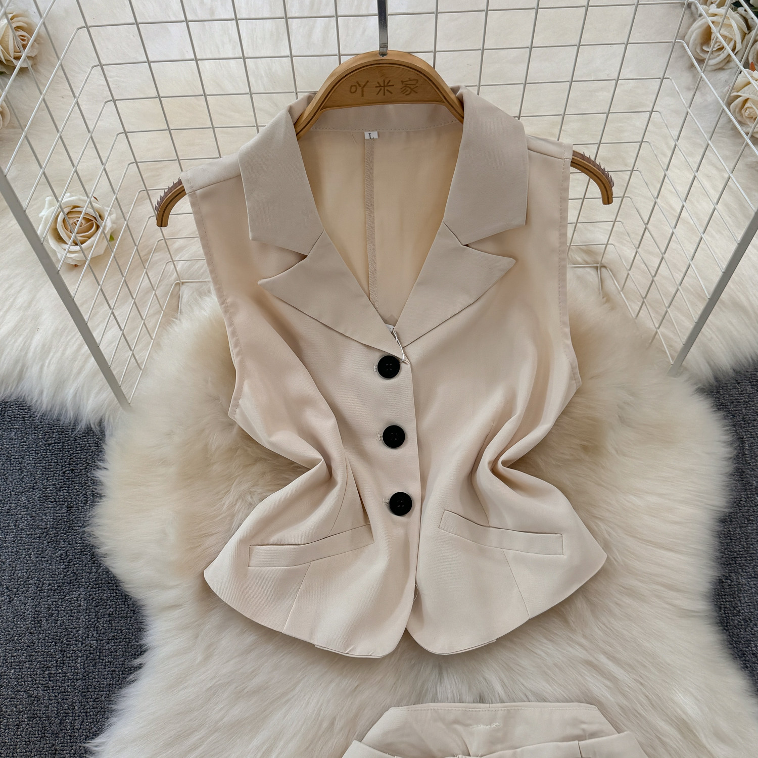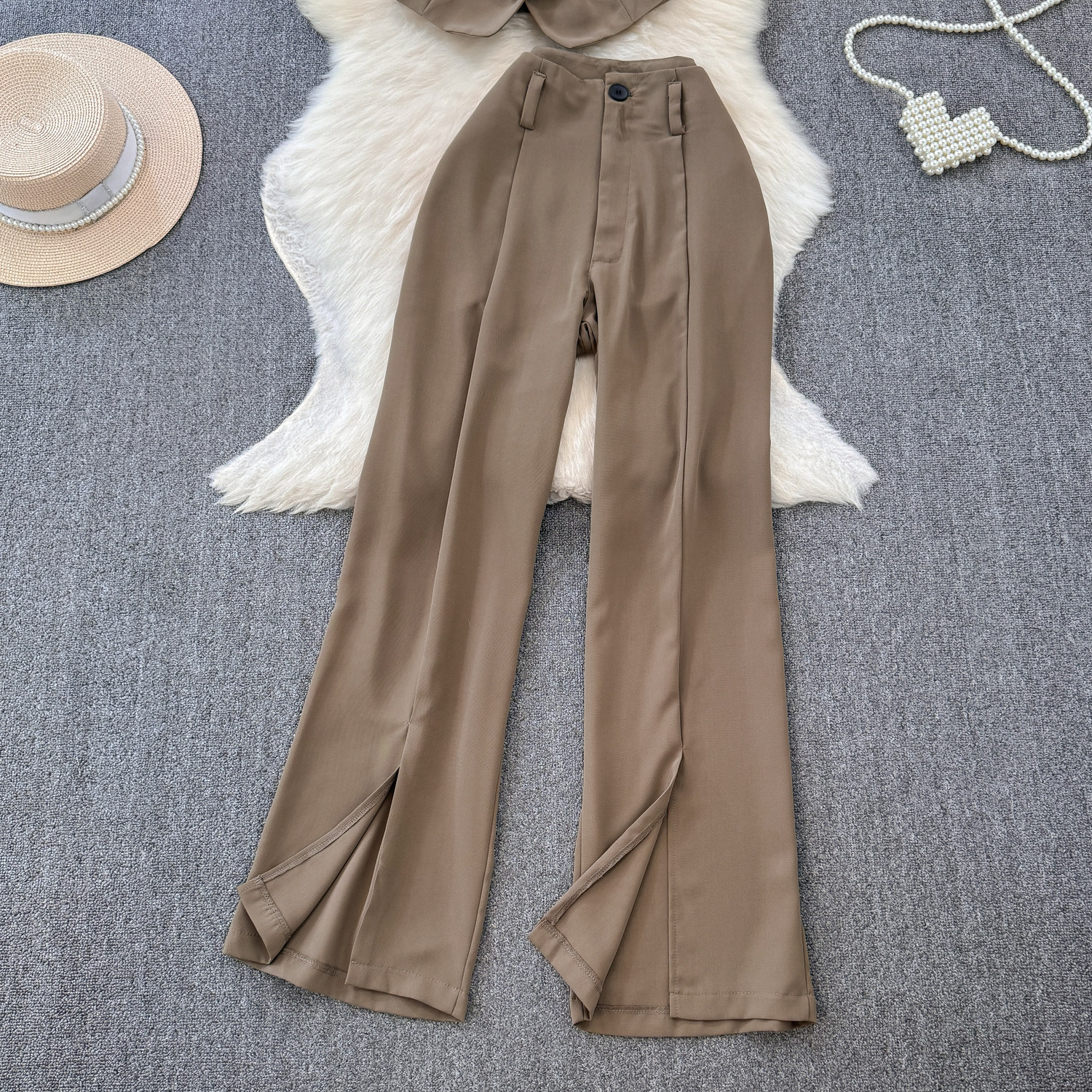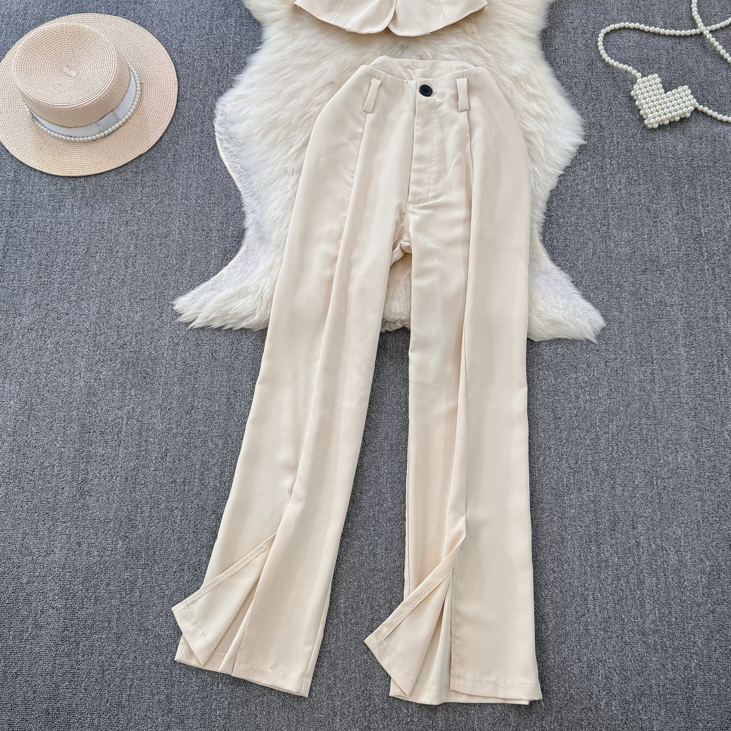 Комплект, приталенный костюм, штаны, в корейском стиле, высокая талия, свободный прямой крой