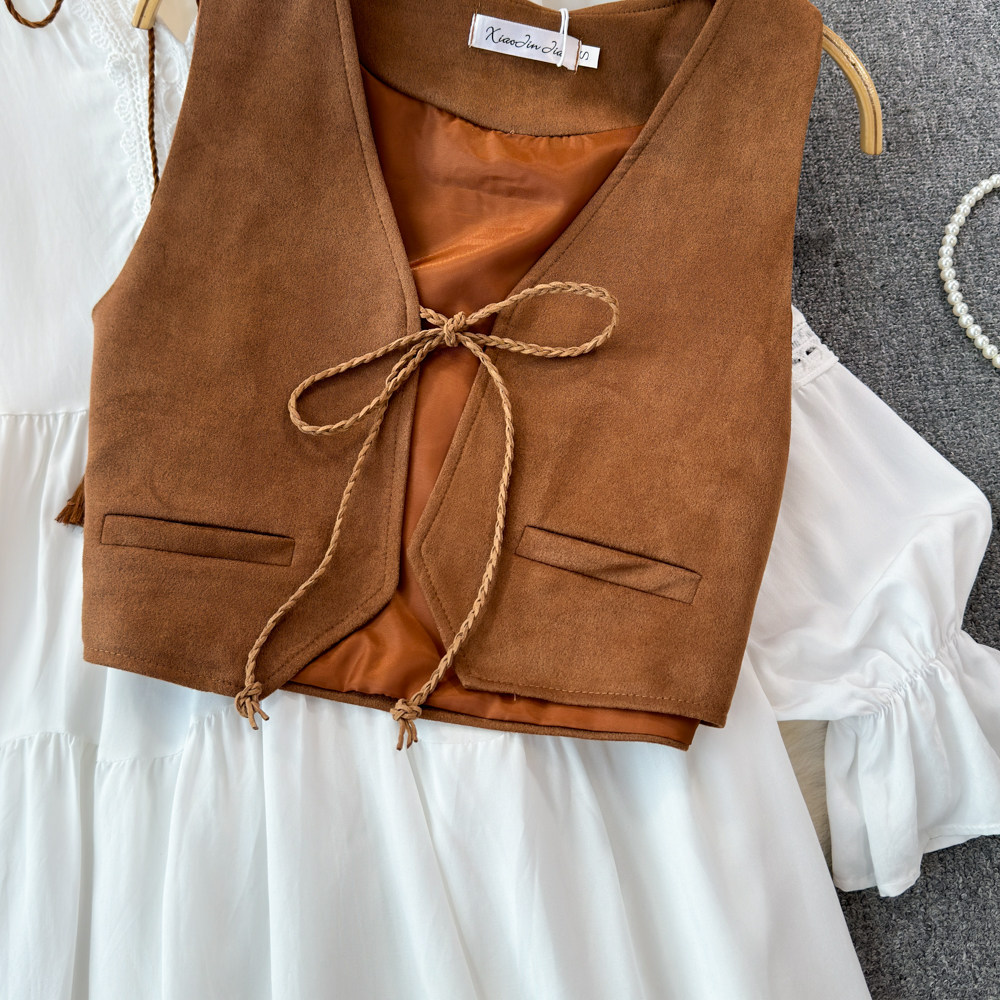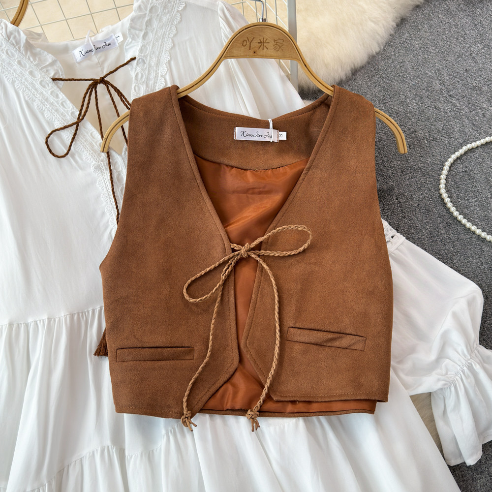 Модный жилет, кардиган, универсальный комплект, короткая майка топ, куртка, французский стиль, изысканный стиль, V-образный вырез