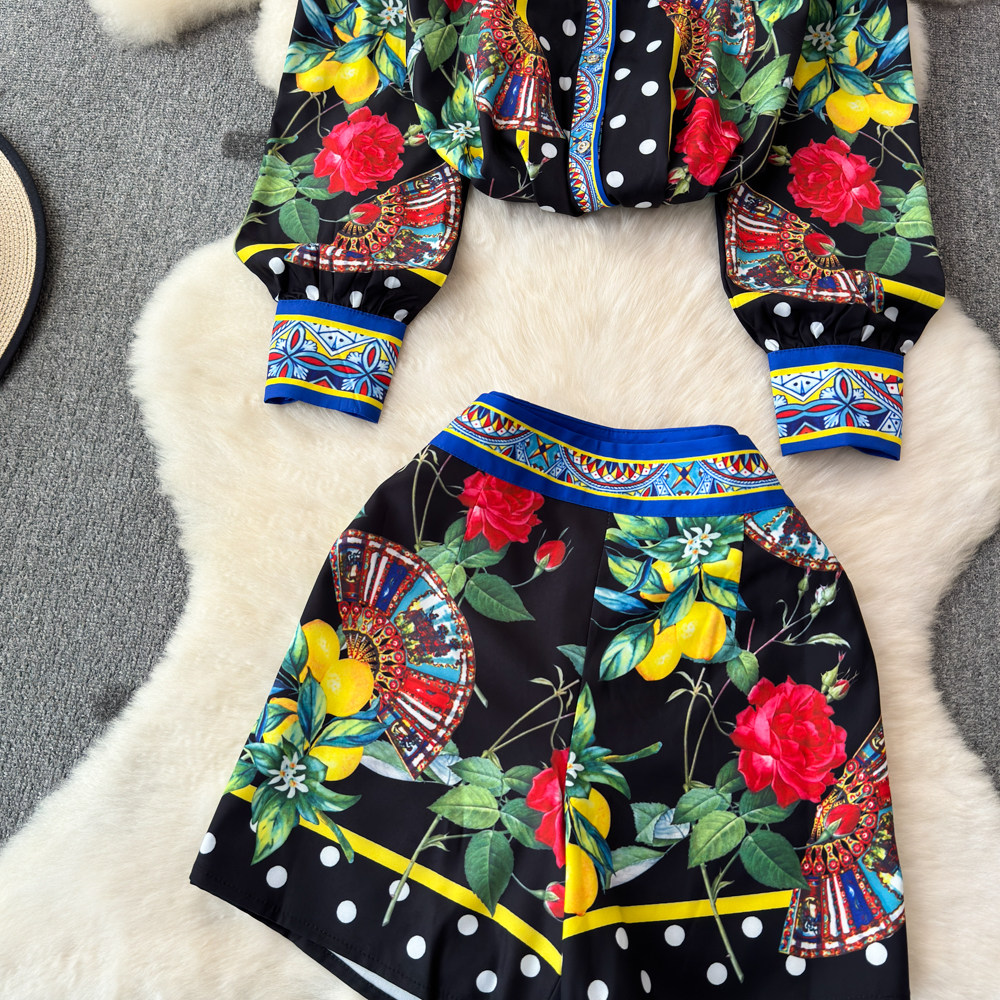 Ретро комплект, рубашка, шорты, штаны, европейский стиль, высокая талия