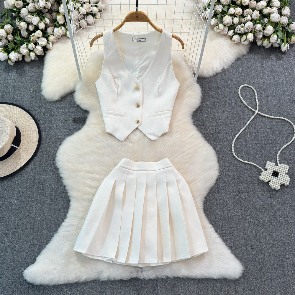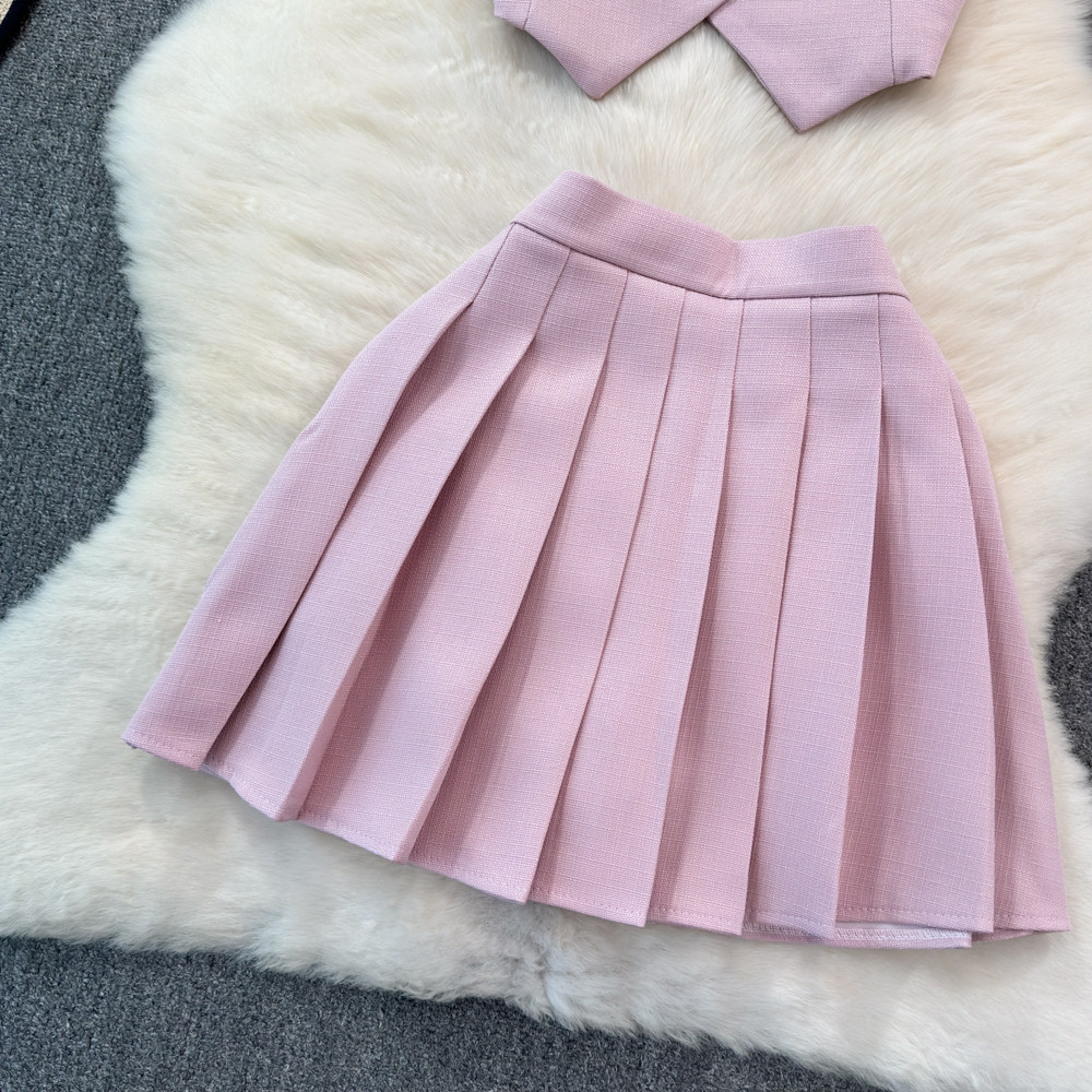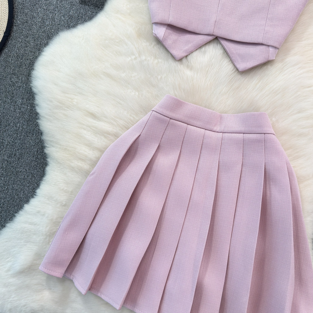 Летний металлический костюм, жилет, юбка в складку, комплект, популярно в интернете, в стиле Шанель