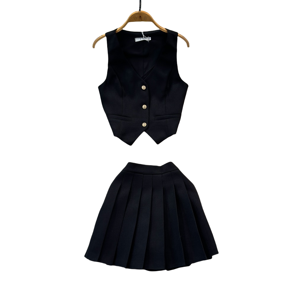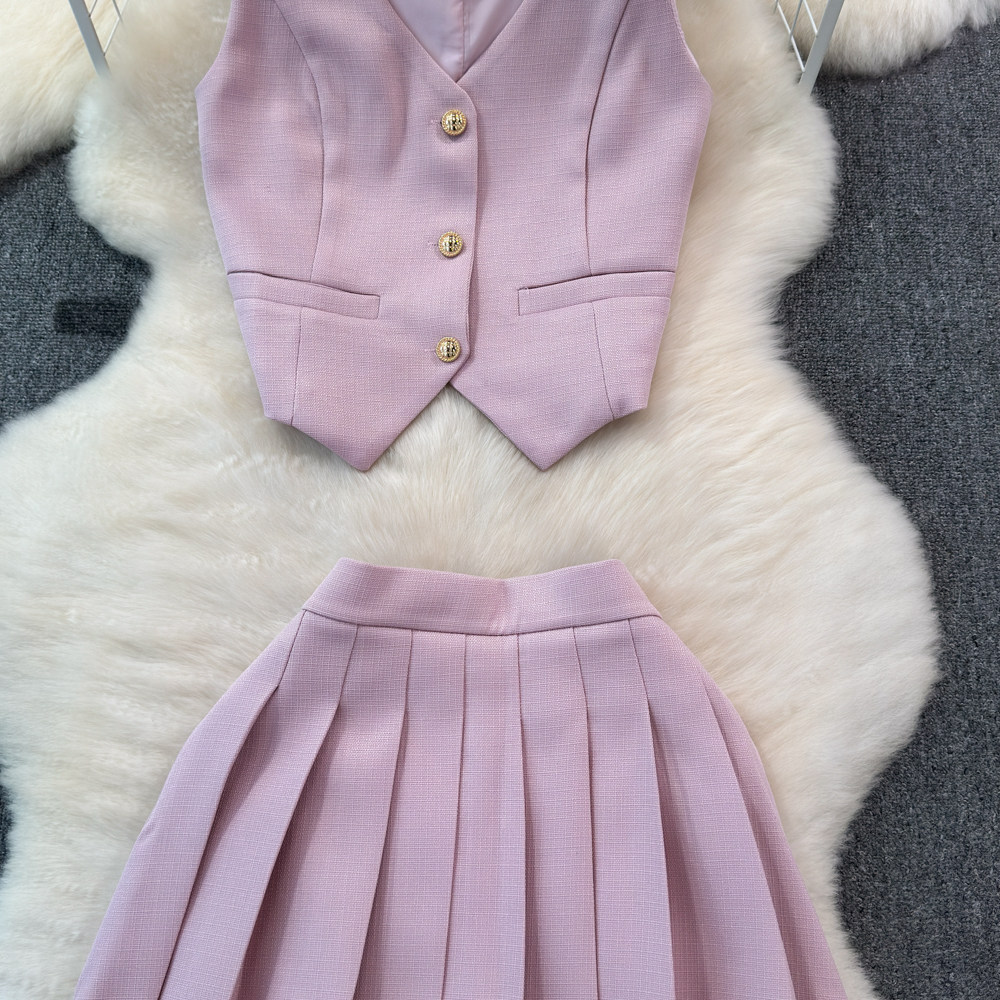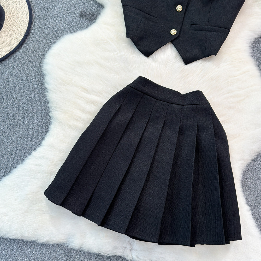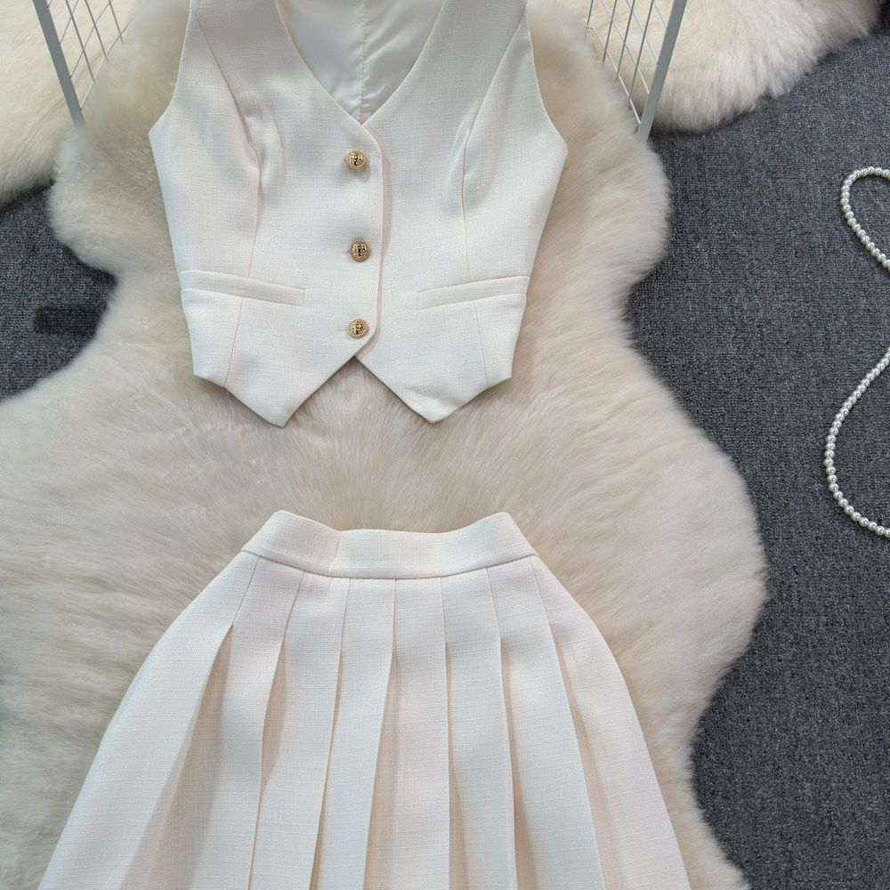 Летний металлический костюм, жилет, юбка в складку, комплект, популярно в интернете, в стиле Шанель