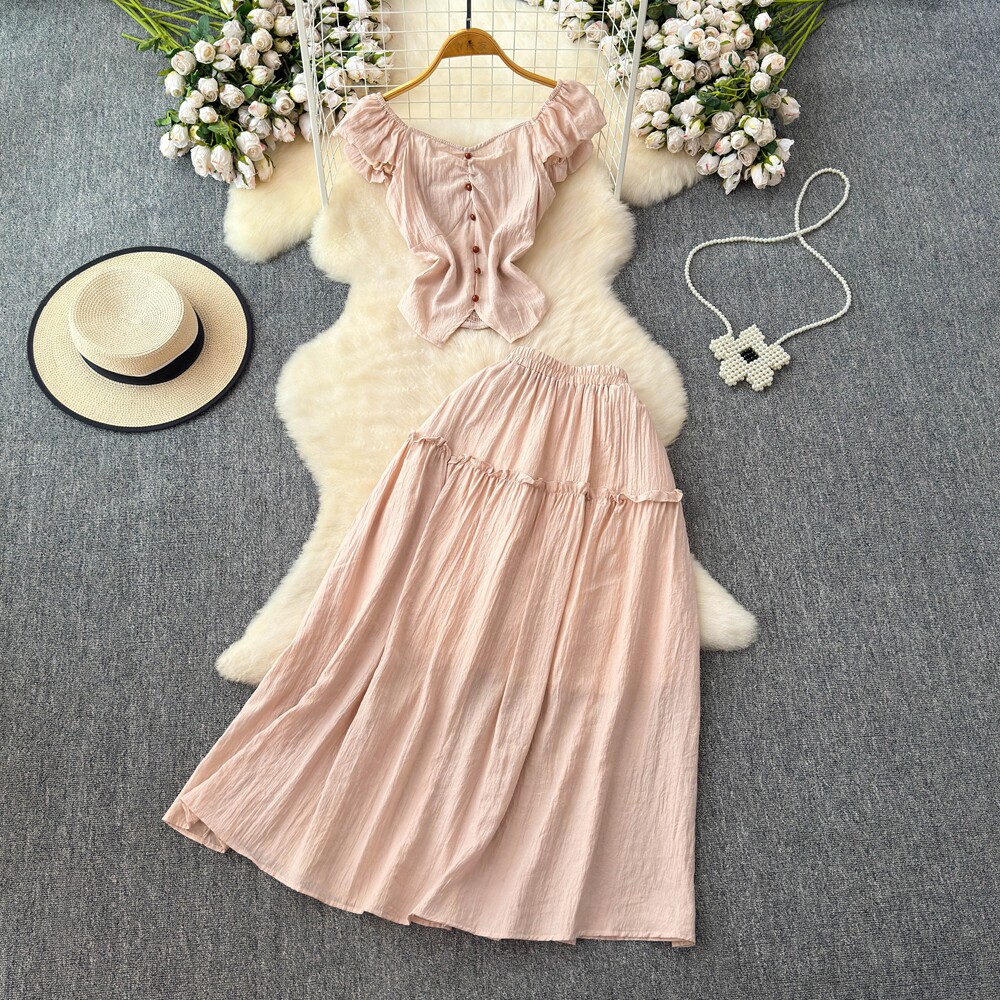 Летний милый дизайнерский приталенный корсет, длинная юбка, комплект, тренд сезона