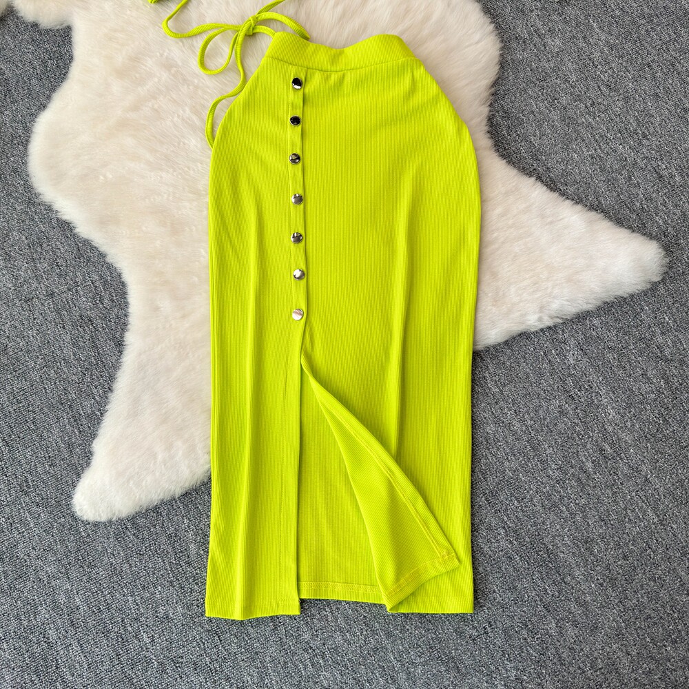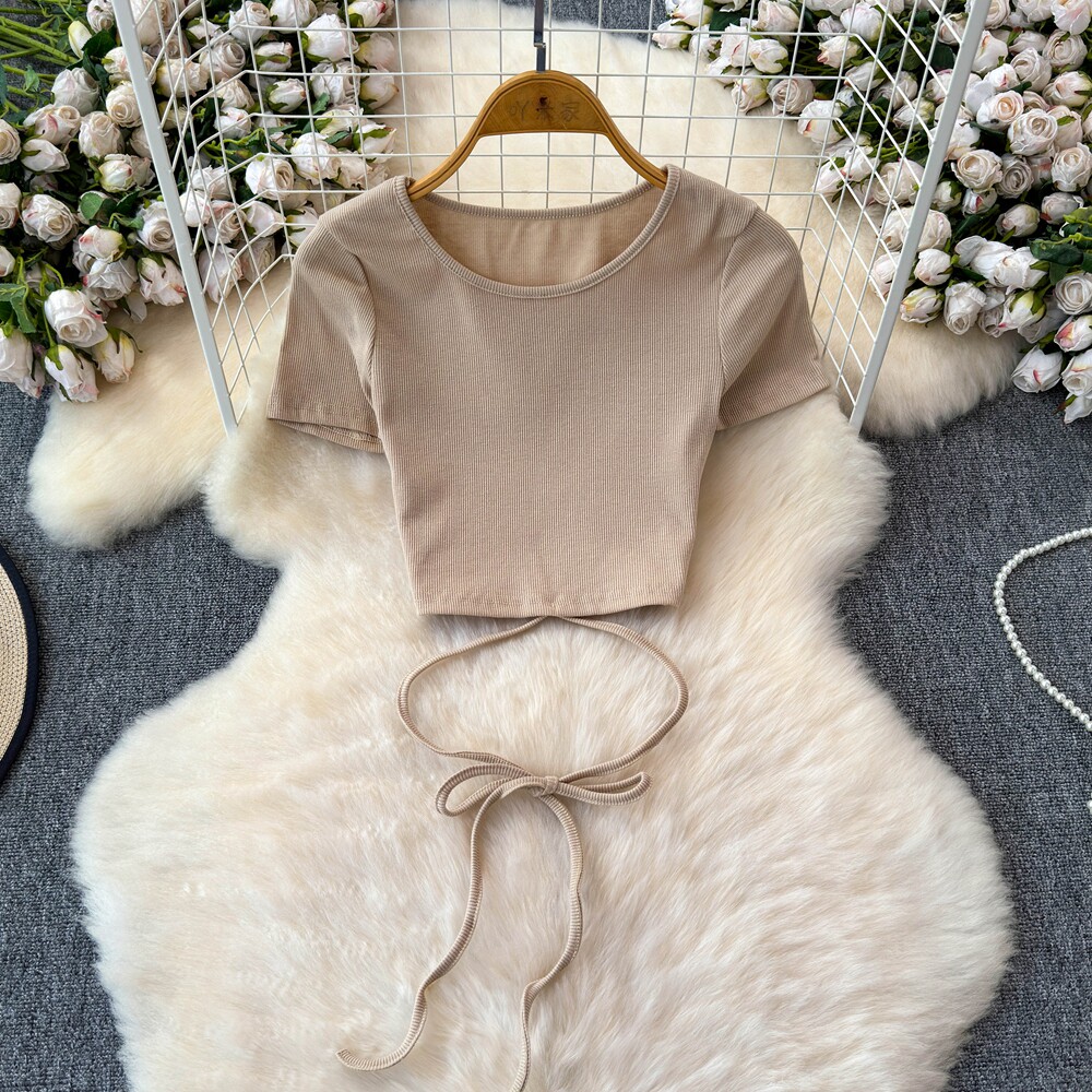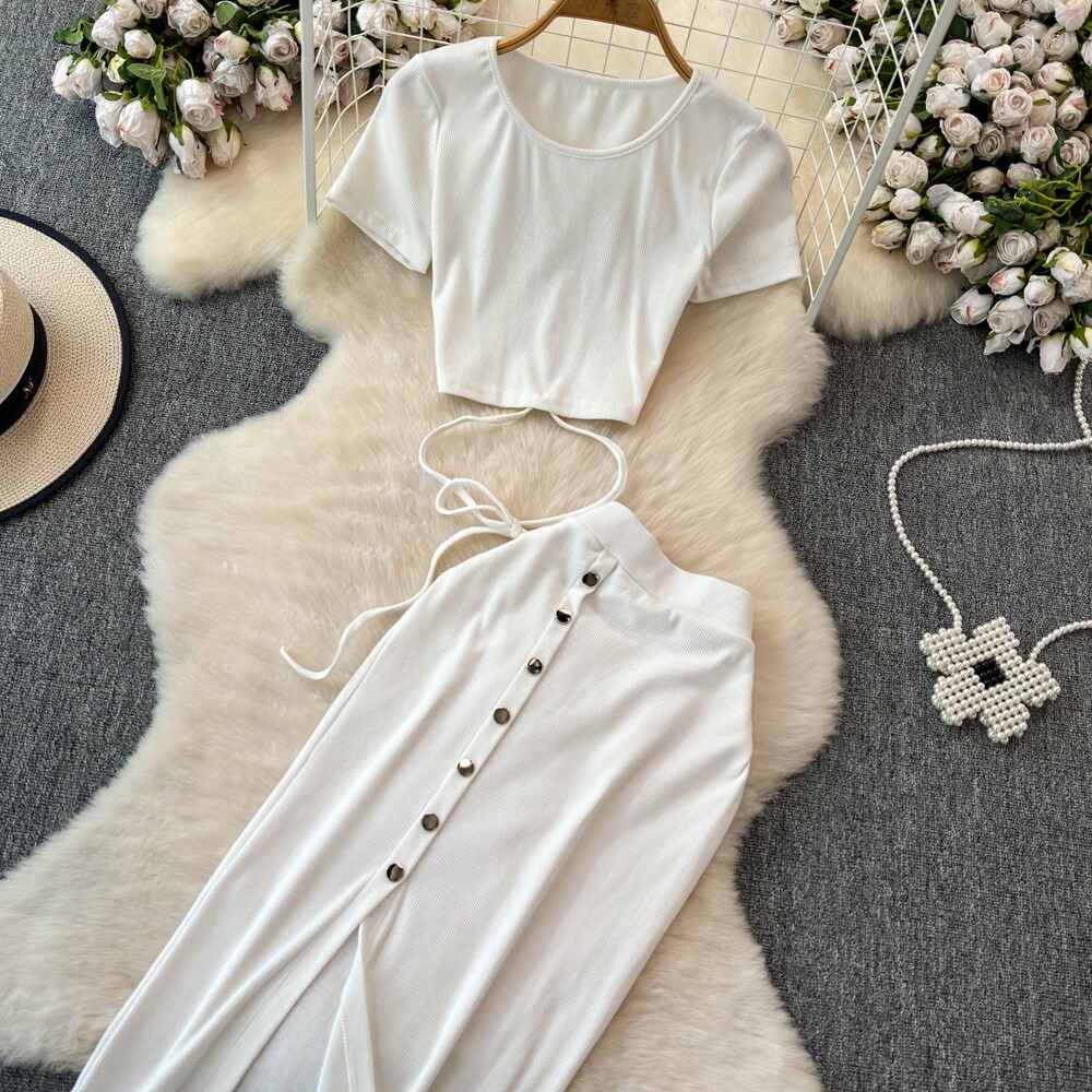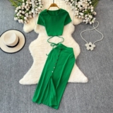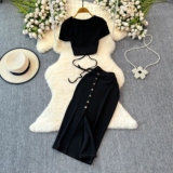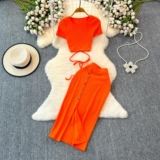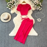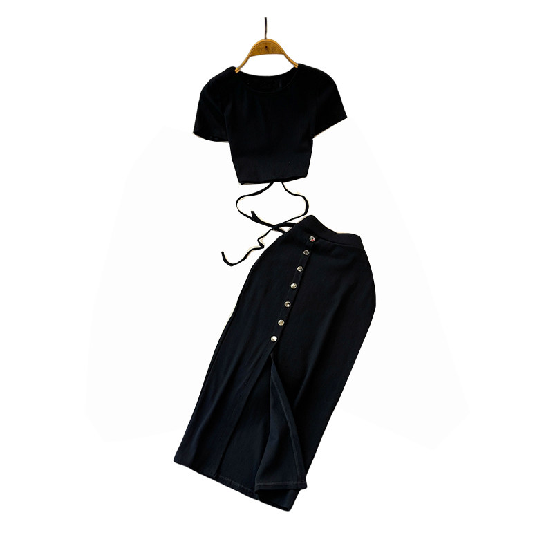 Брендовый сексуальный ремень, летний комплект с круглым воротником, приталенная юбка, европейский стиль, высокая талия