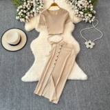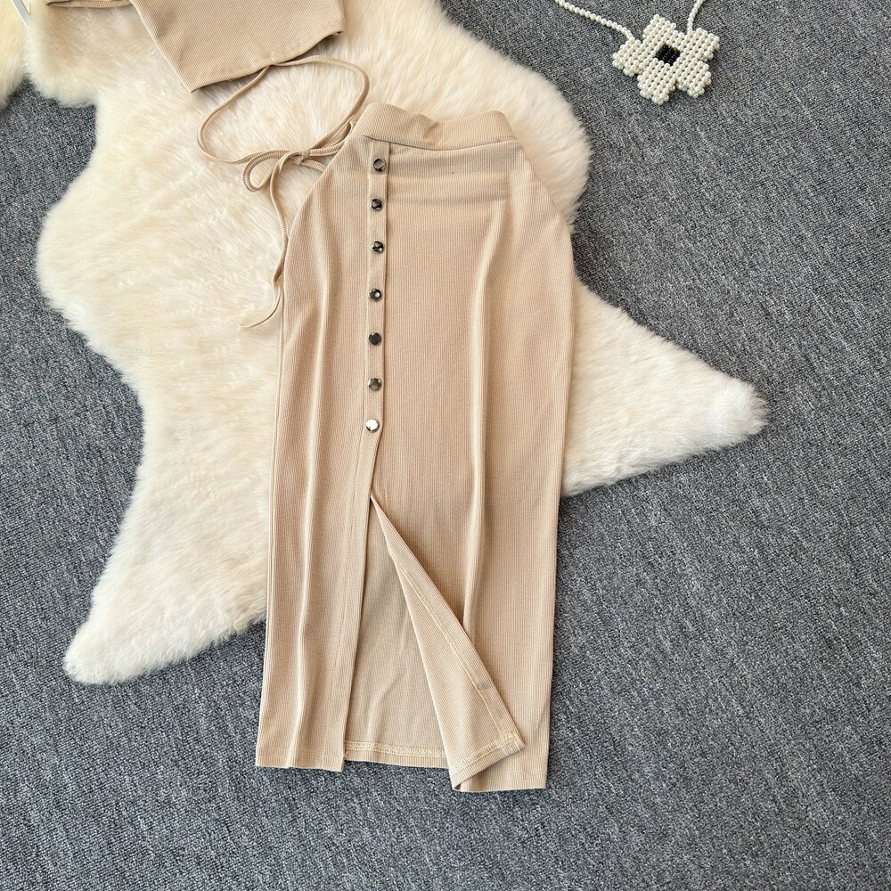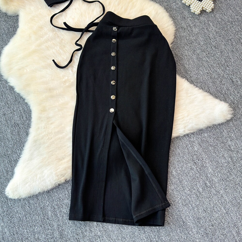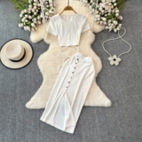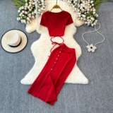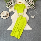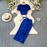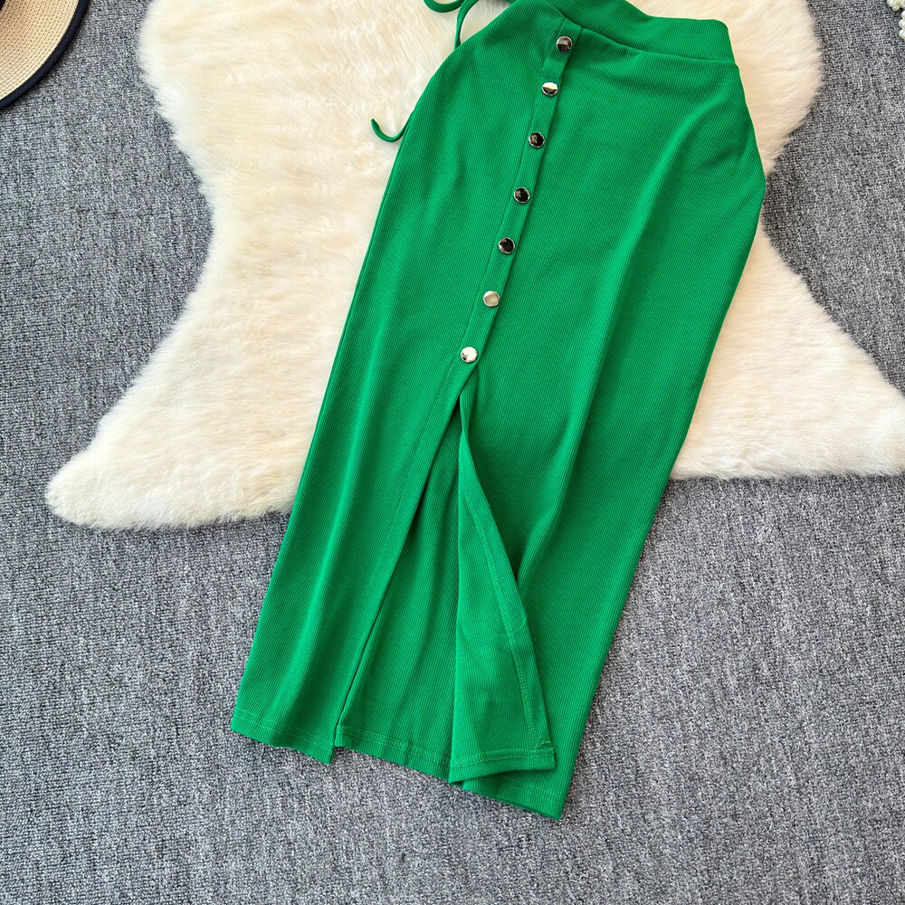 Брендовый сексуальный ремень, летний комплект с круглым воротником, приталенная юбка, европейский стиль, высокая талия