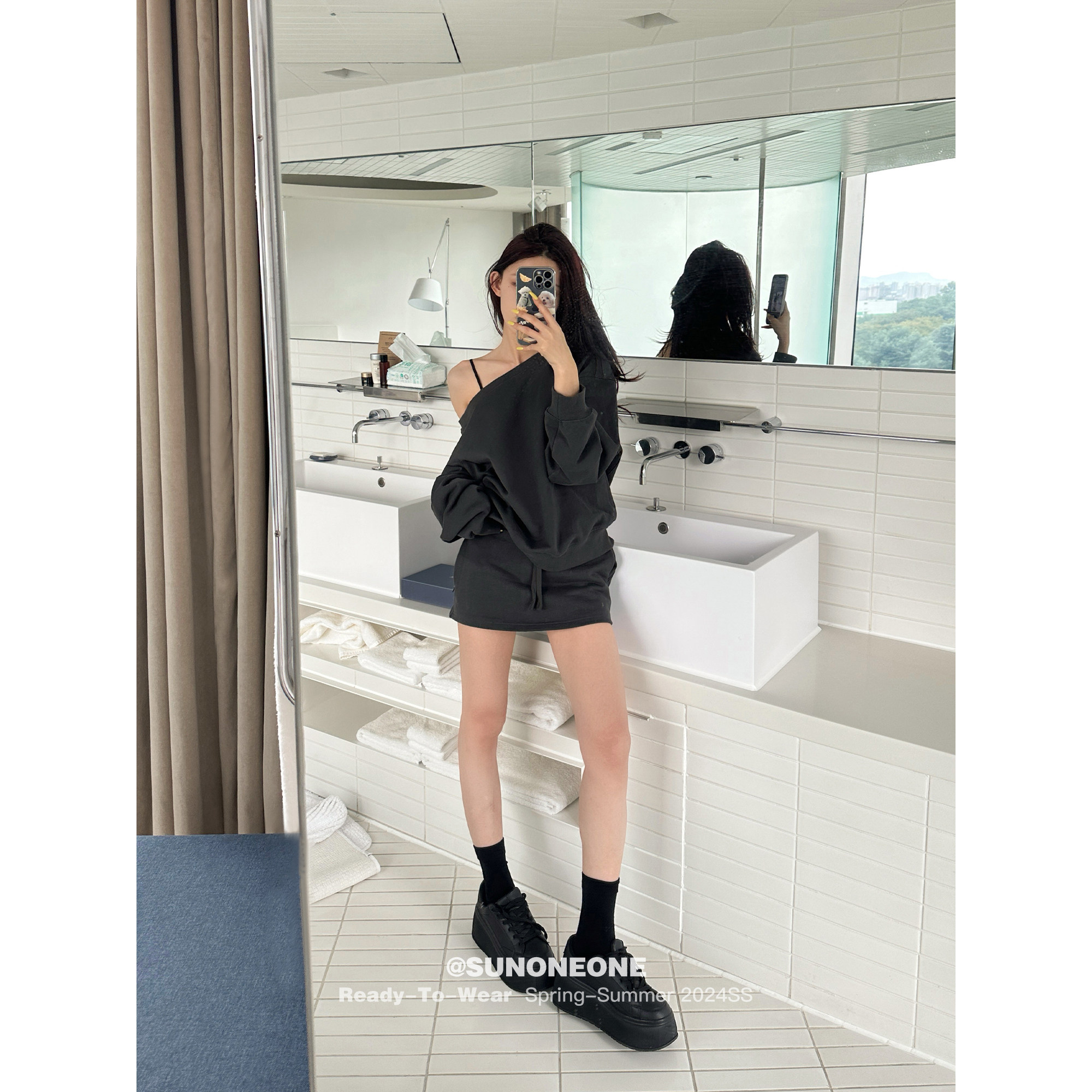 SUNONEONE Толстовка, комплект, лонгслив, юбка, штаны, открытые плечи