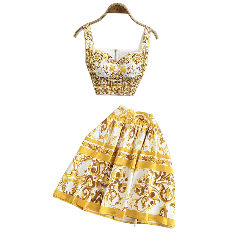 Модная майка, юбка, комплект, европейский стиль, в обтяжку, А-силуэт