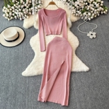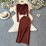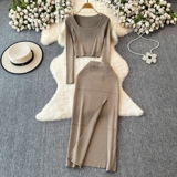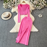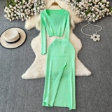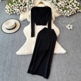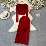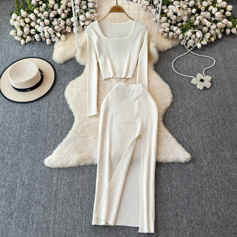 Эластичный комплект, трикотажный свитер, юбка, квадратный вырез, в обтяжку, высокая талия, с акцентом на бедрах