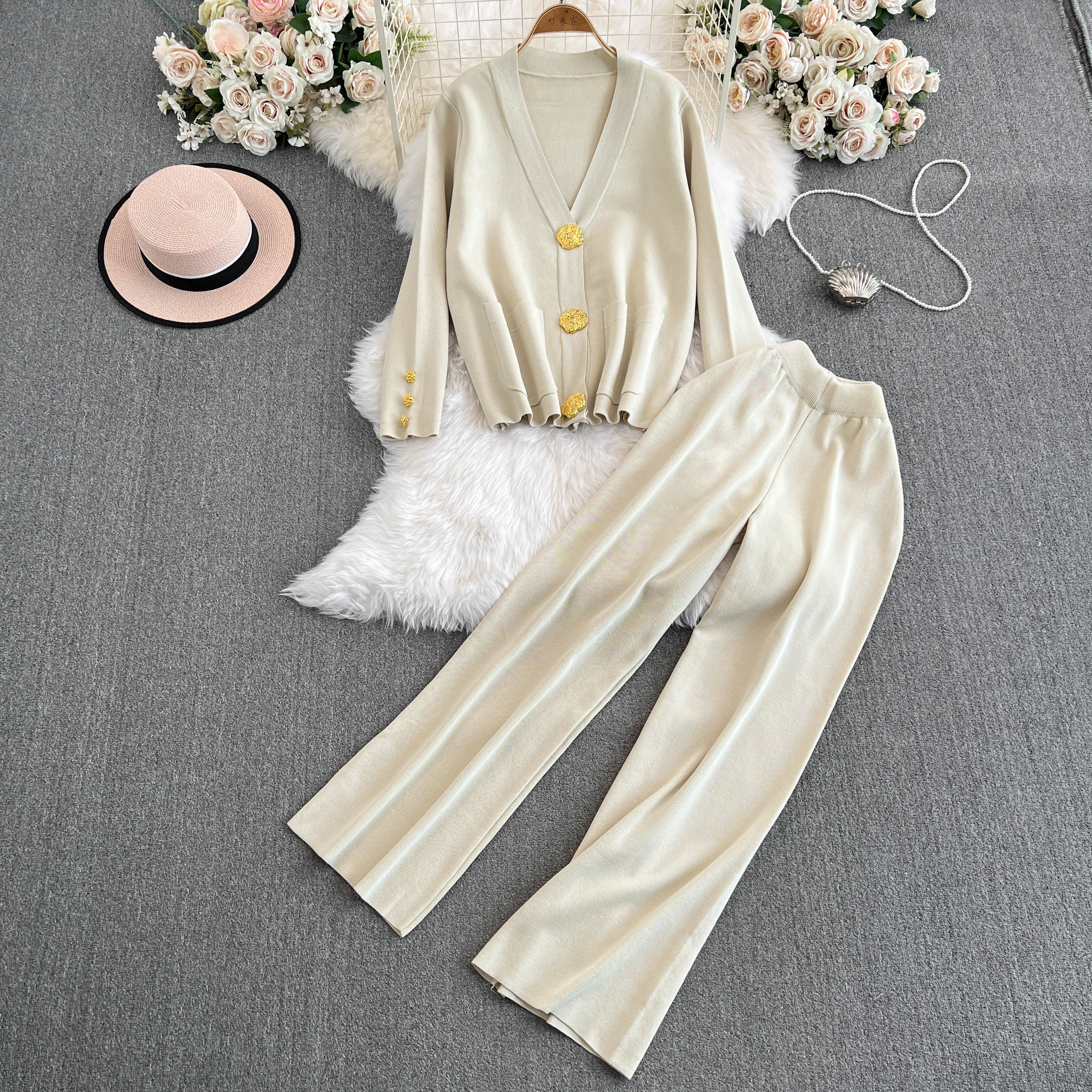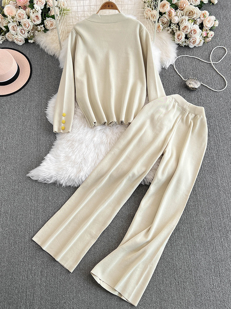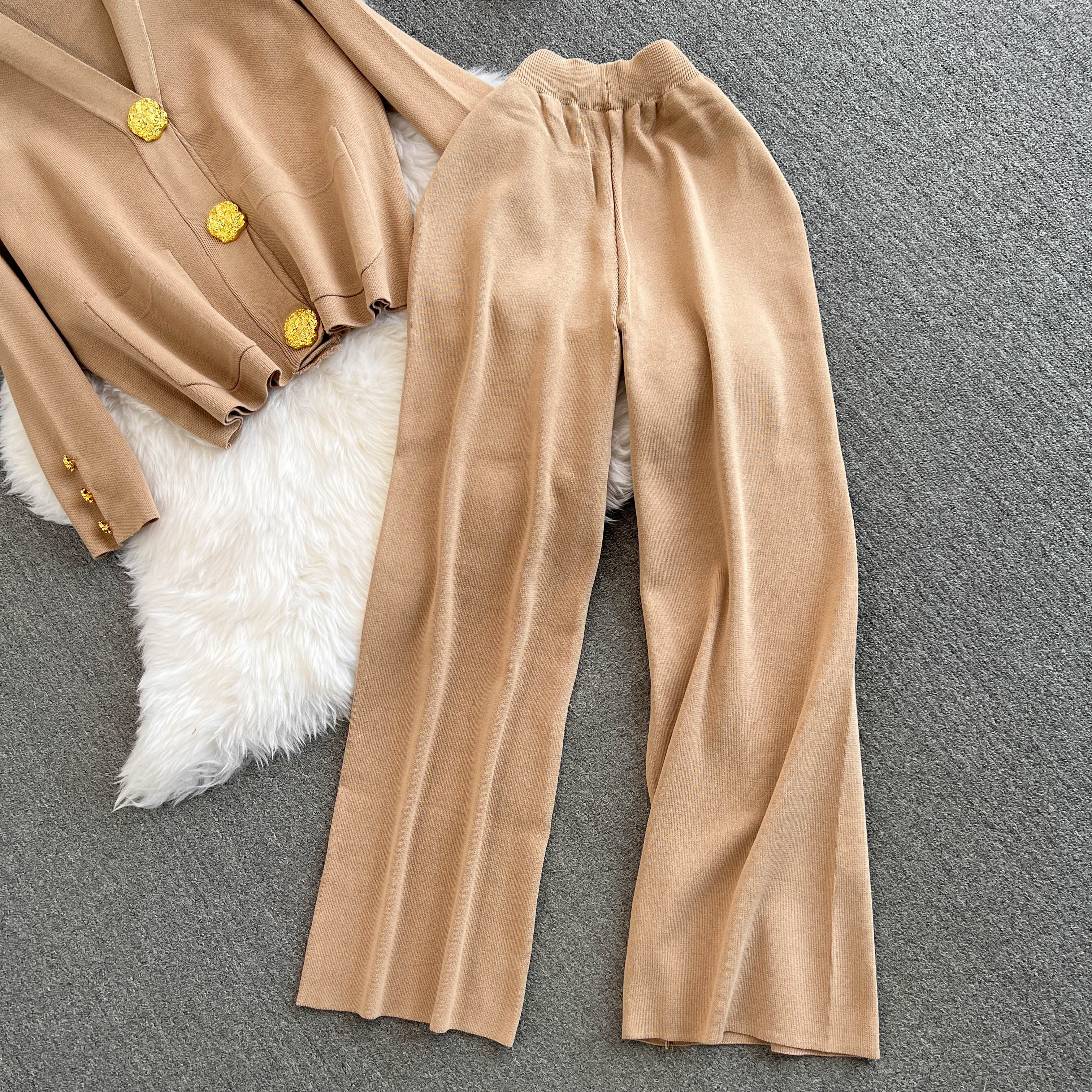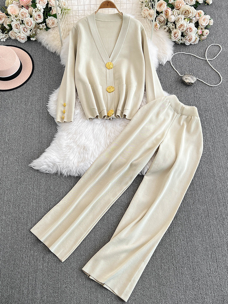 Chanel, модный осенний металлический кардиган, штаны, комплект, высокая талия