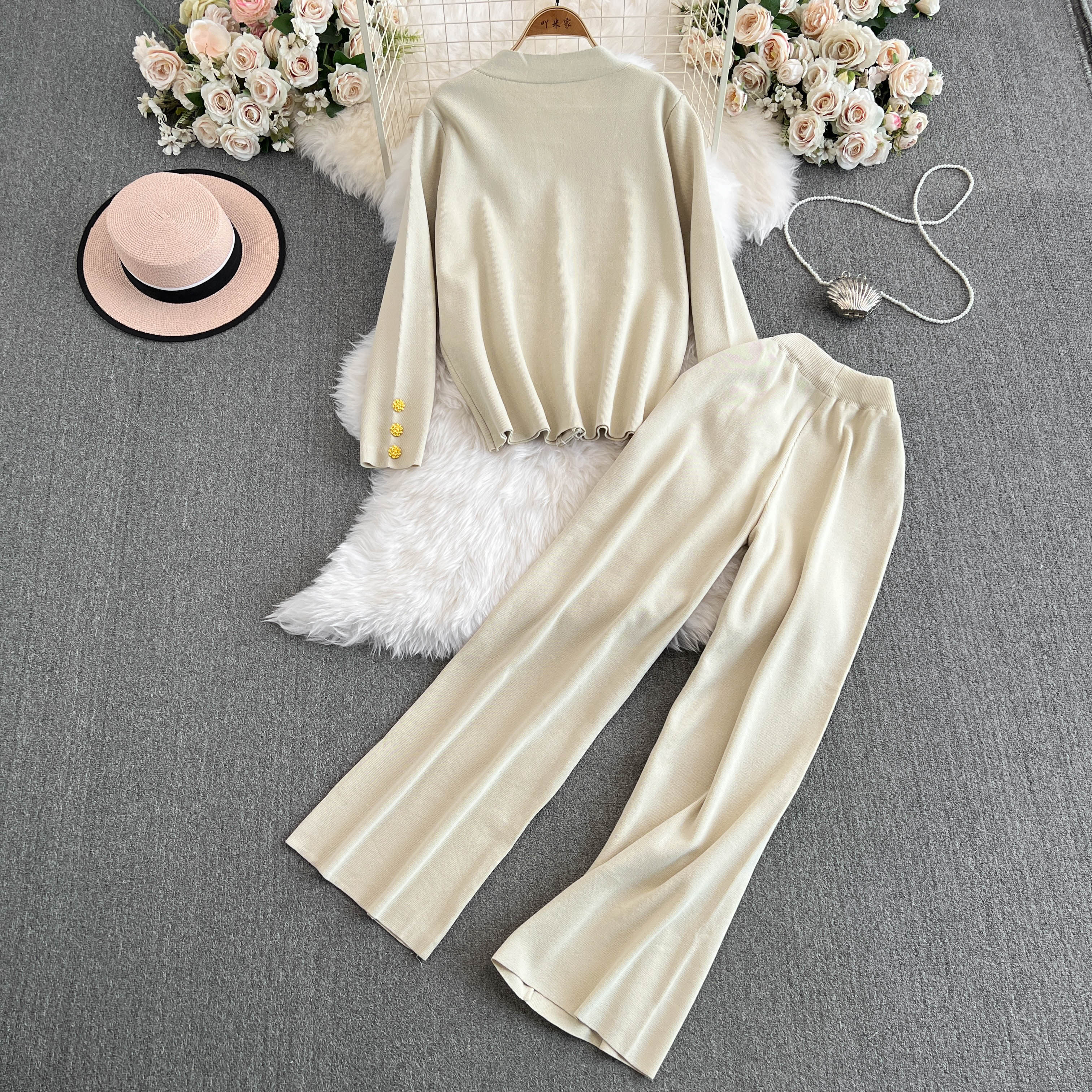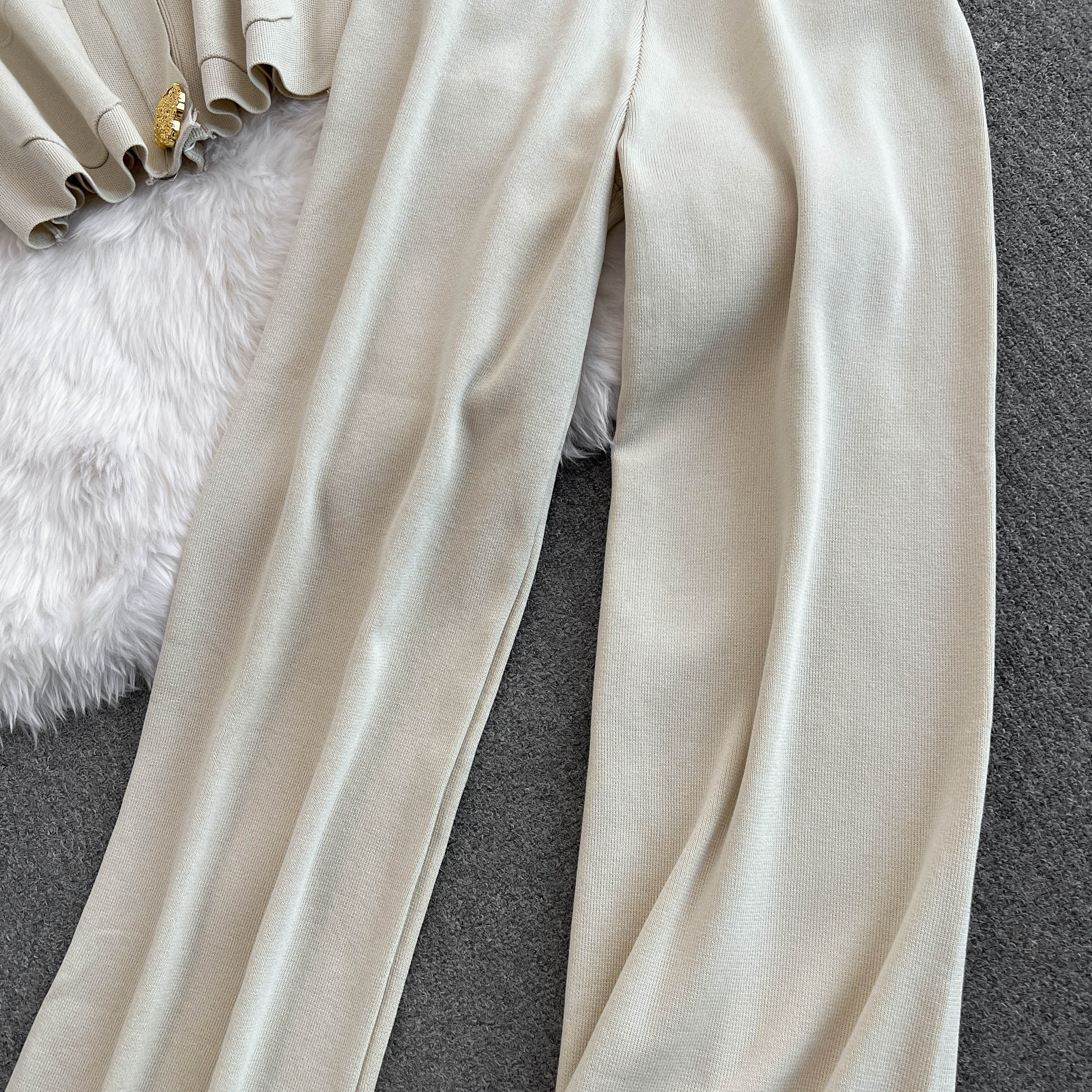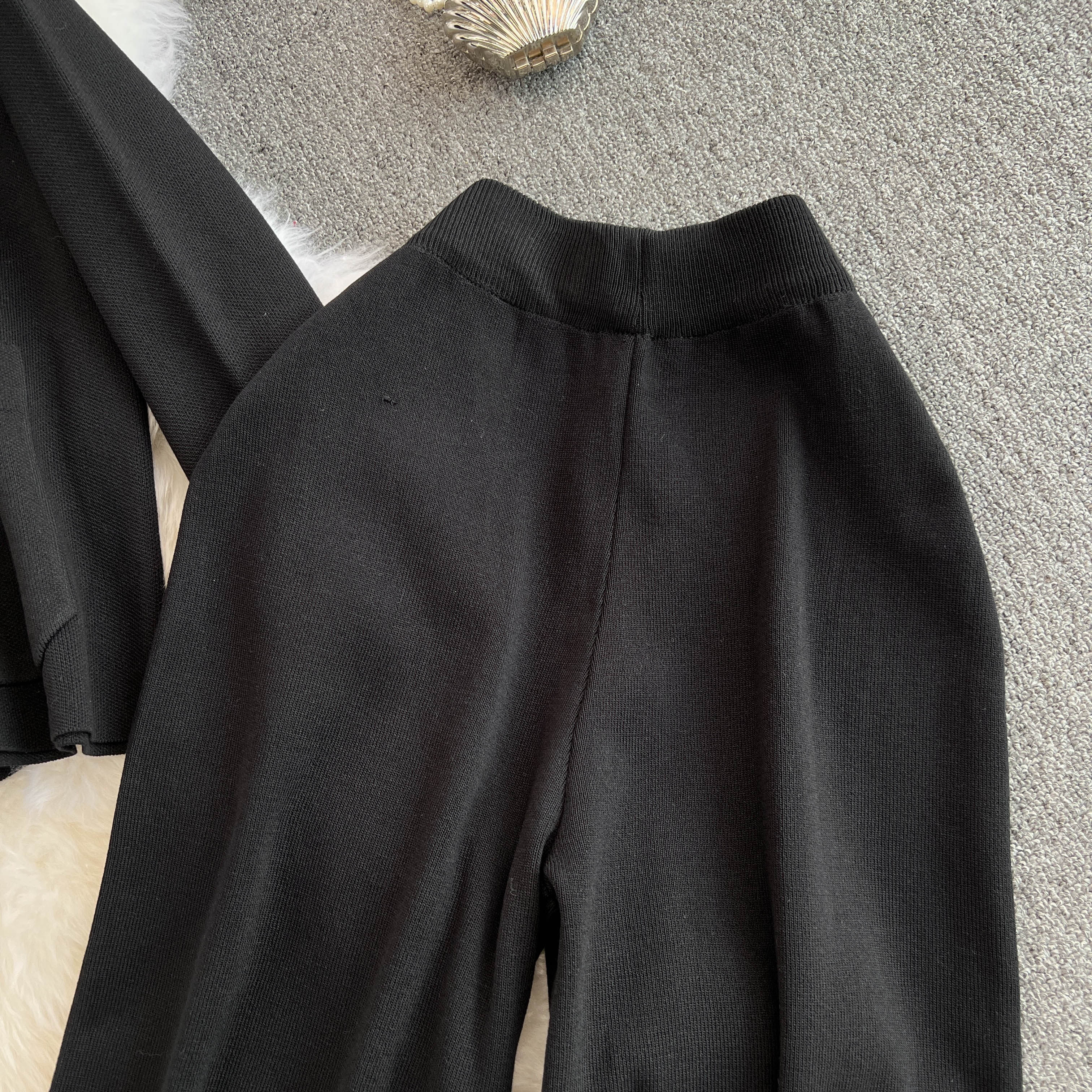 Chanel, модный осенний металлический кардиган, штаны, комплект, высокая талия