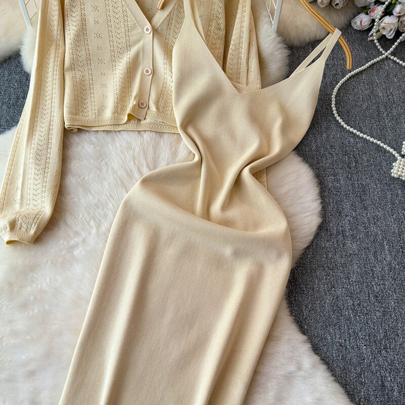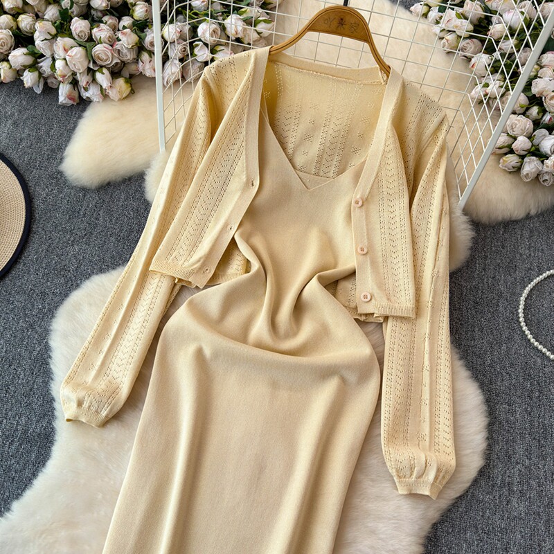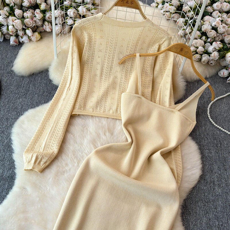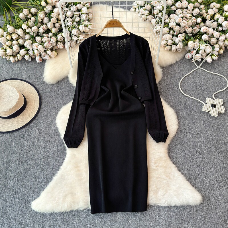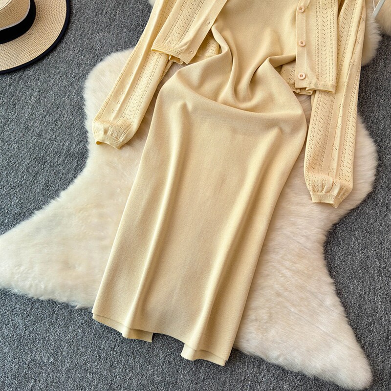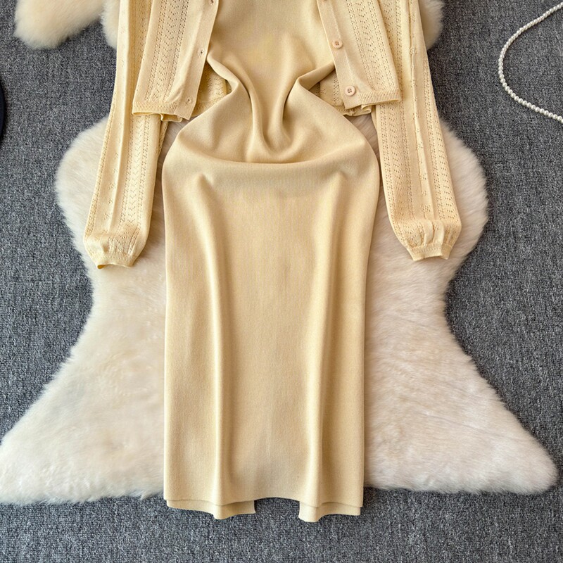 Осенний кардиган, платье, комплект, французский стиль, изысканный стиль