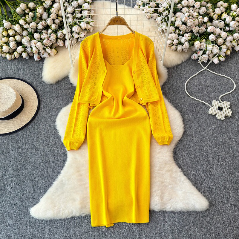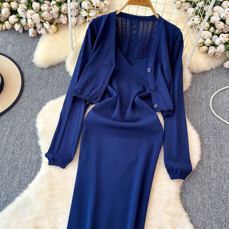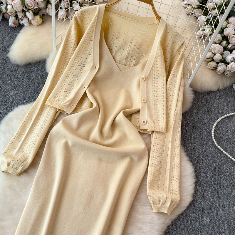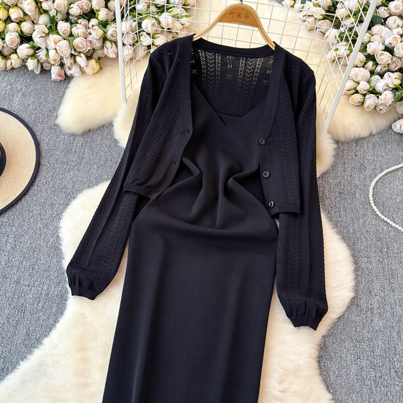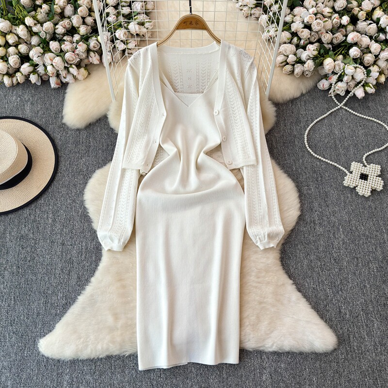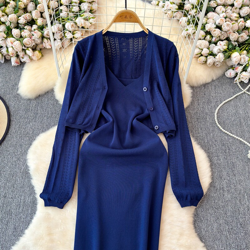 Осенний кардиган, платье, комплект, французский стиль, изысканный стиль
