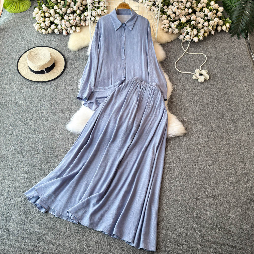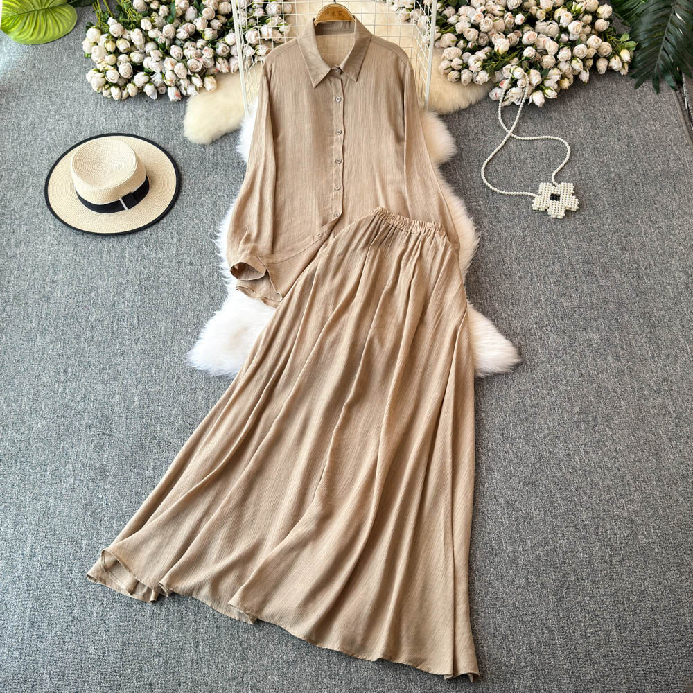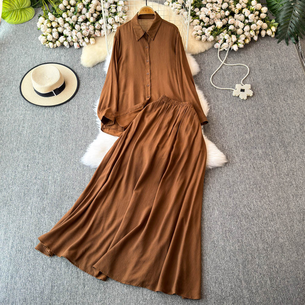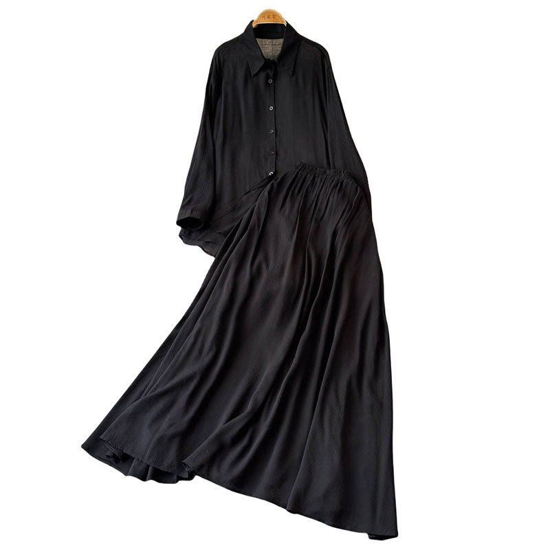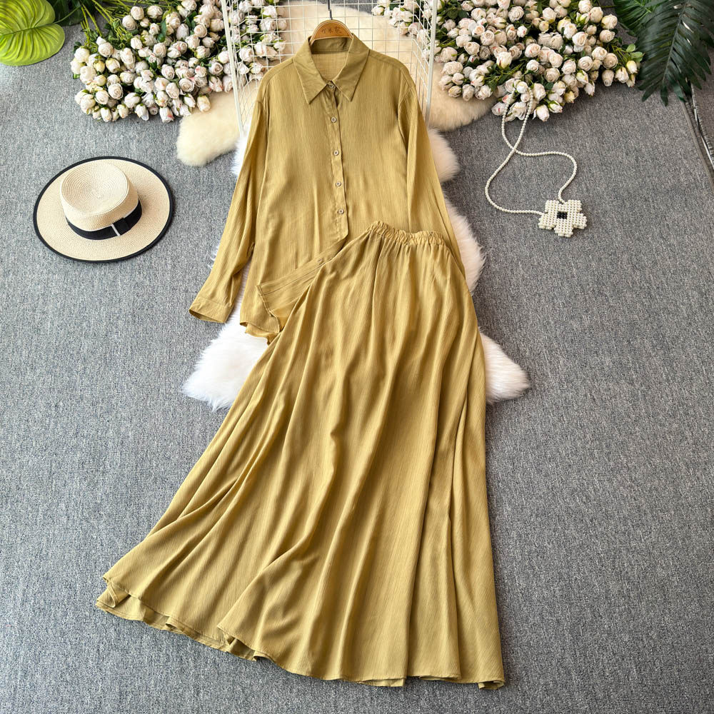 Комплект, лонгслив, рубашка, приталенная длинная юбка, в корейском стиле, высокая талия, яркий броский стиль, средней длины