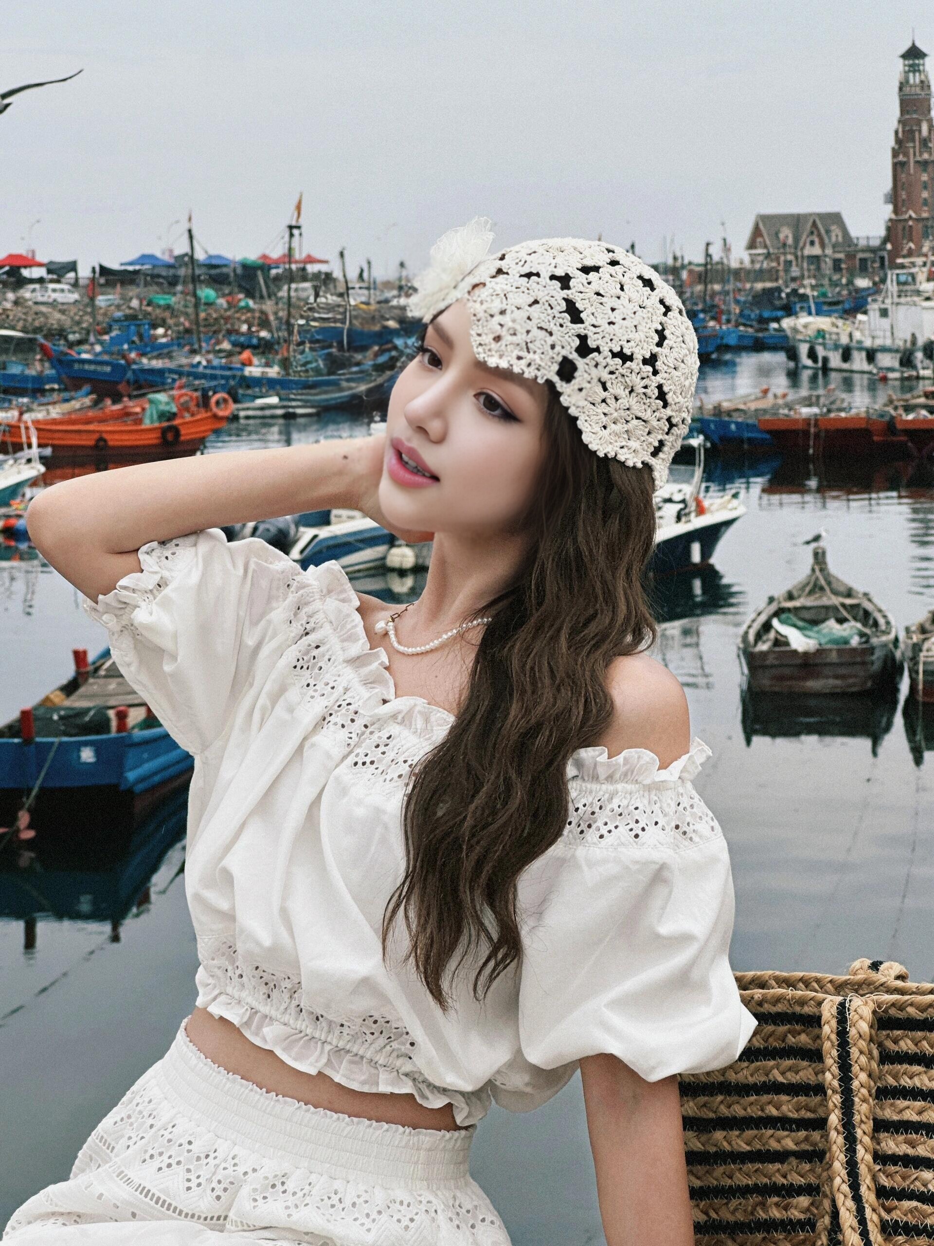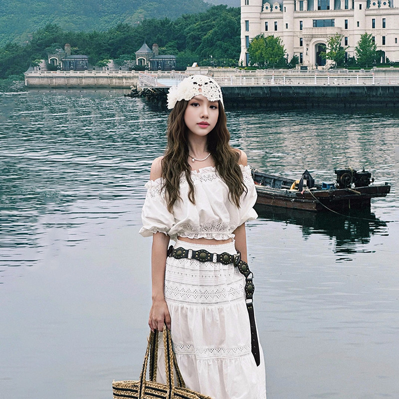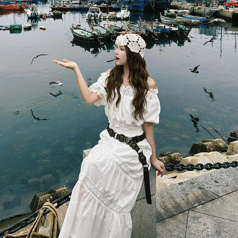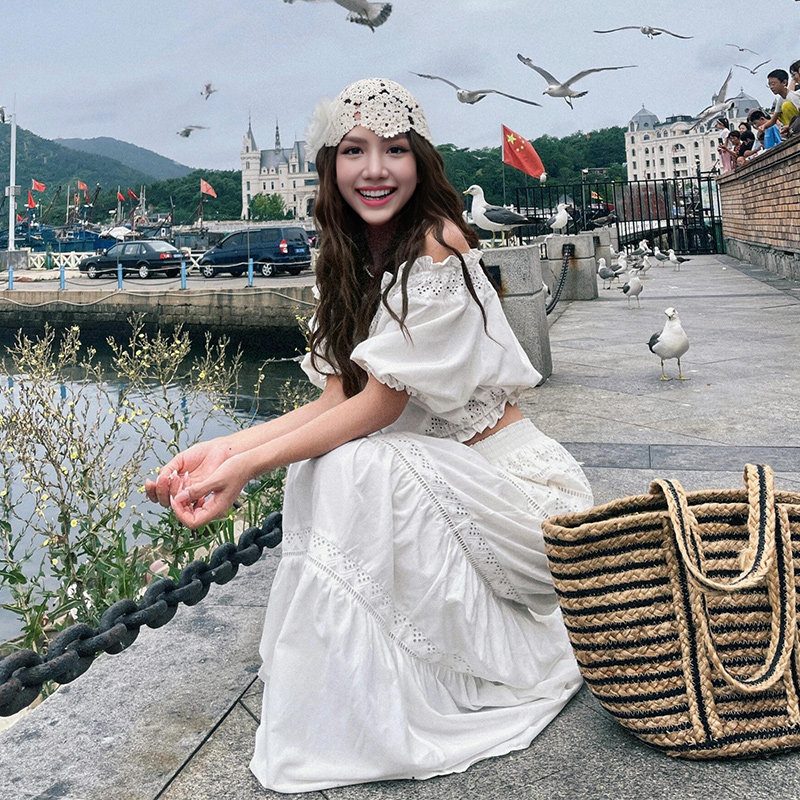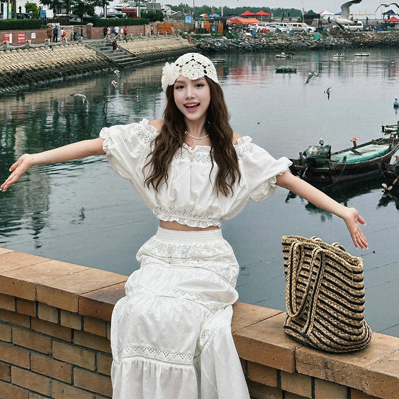 Милый комплект, юбка, французский стиль, изысканный стиль, открытые плечи, А-силуэт