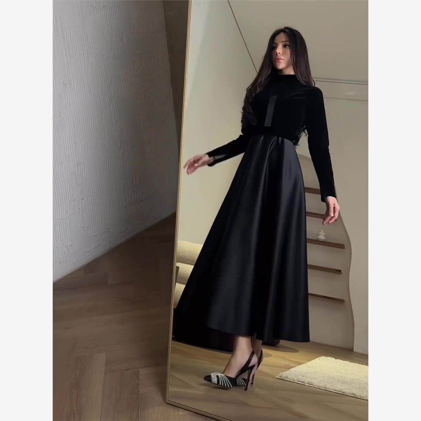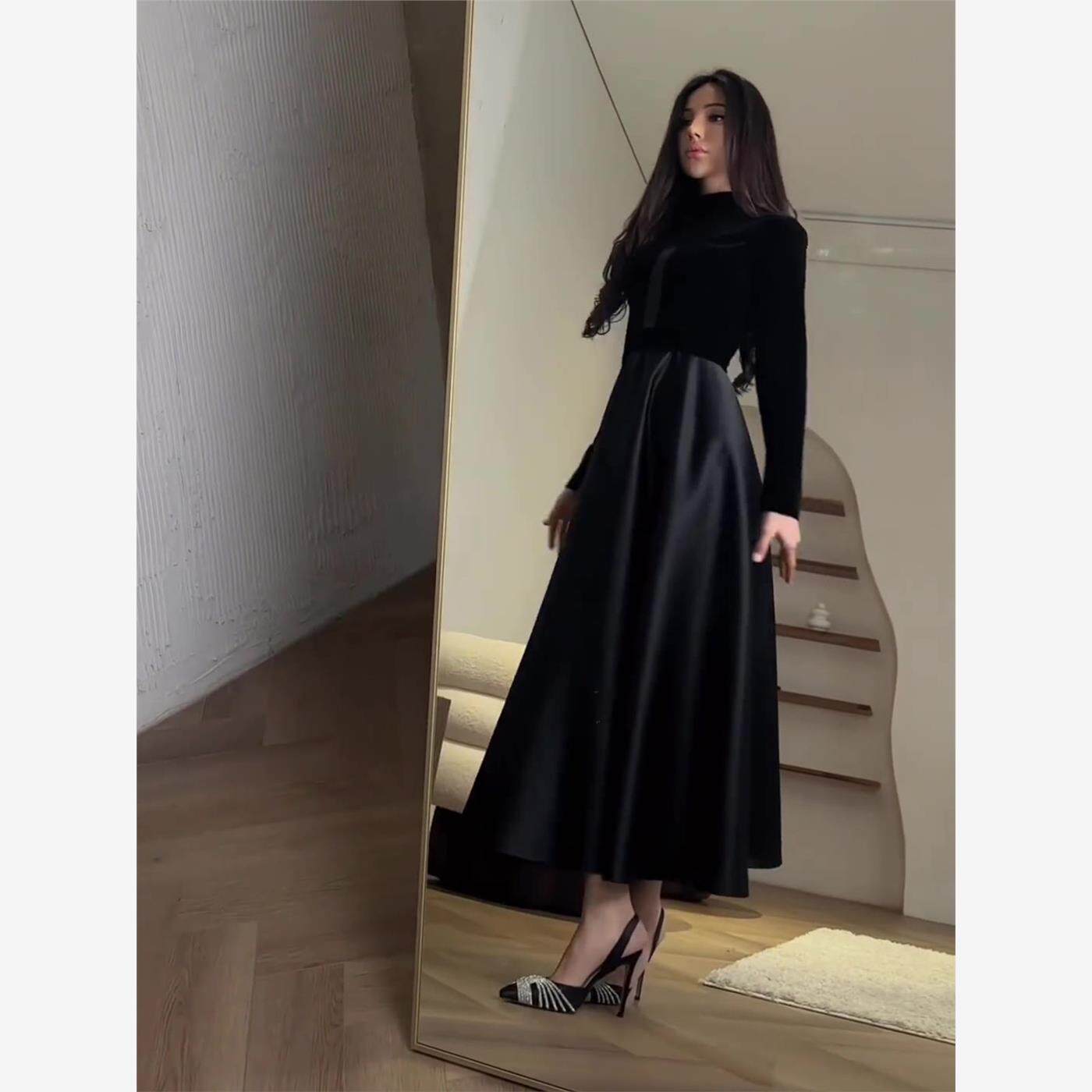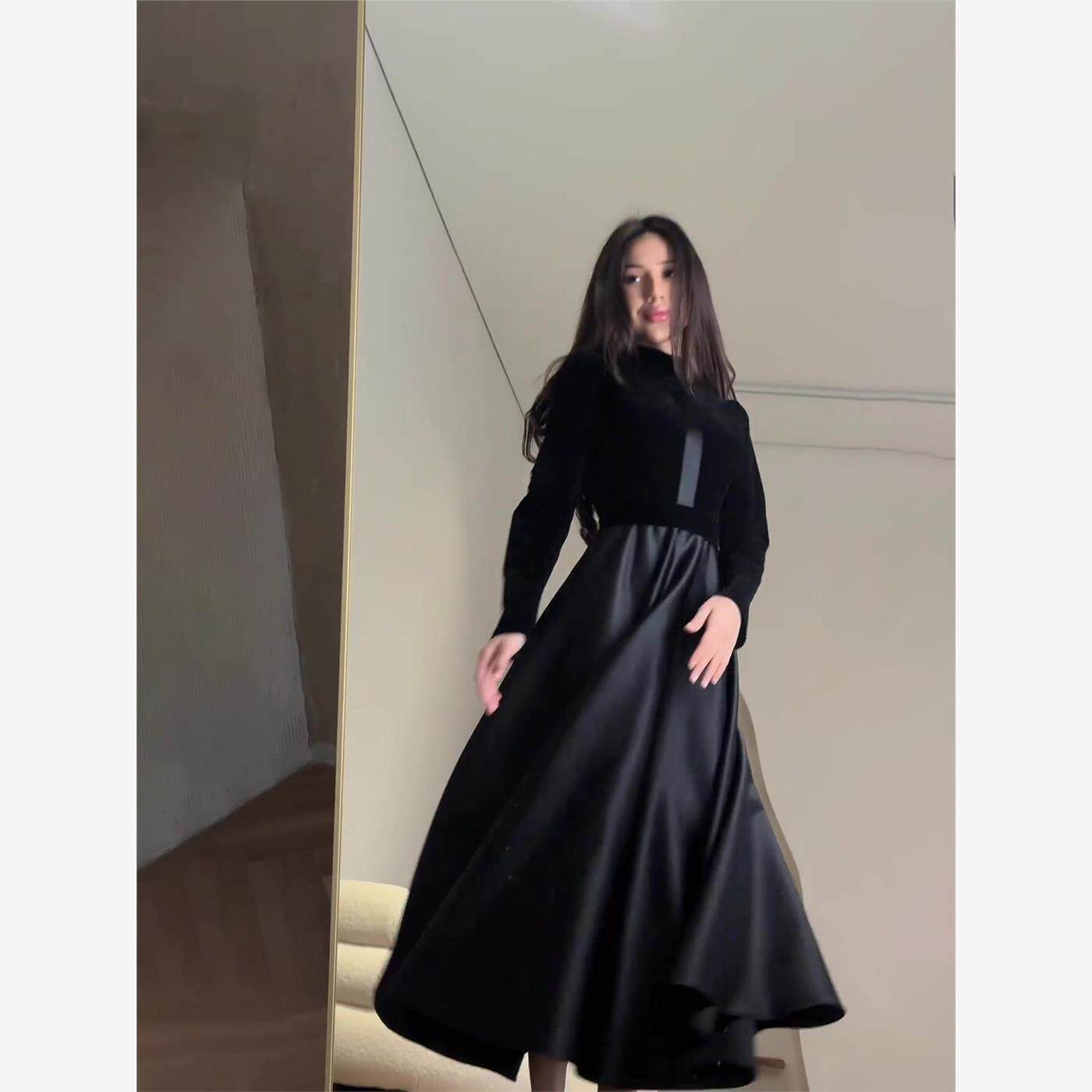 Бархатный черный корсет, лонгслив с круглым воротником, 2023