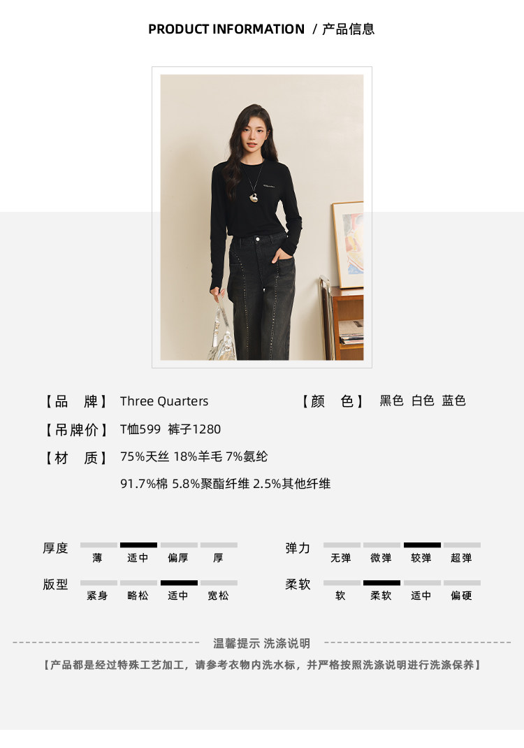 Футболка с тремя кварталами Hot Diamond Wool, старые расклешенные брюки, Missas Buyer Store