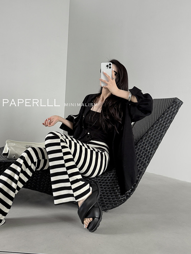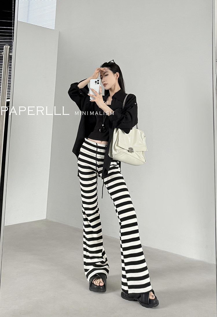Прямые брюки простираются от талии до лодыжки