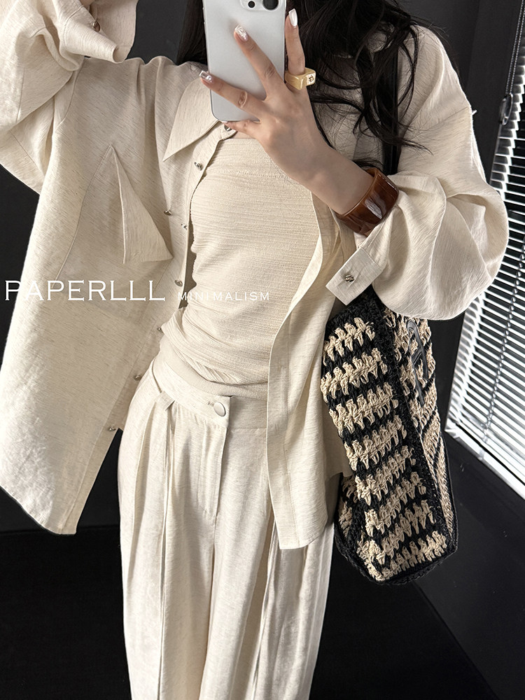 PAPERLLL Рубашка, комплект для отдыха, из хлопка и льна
