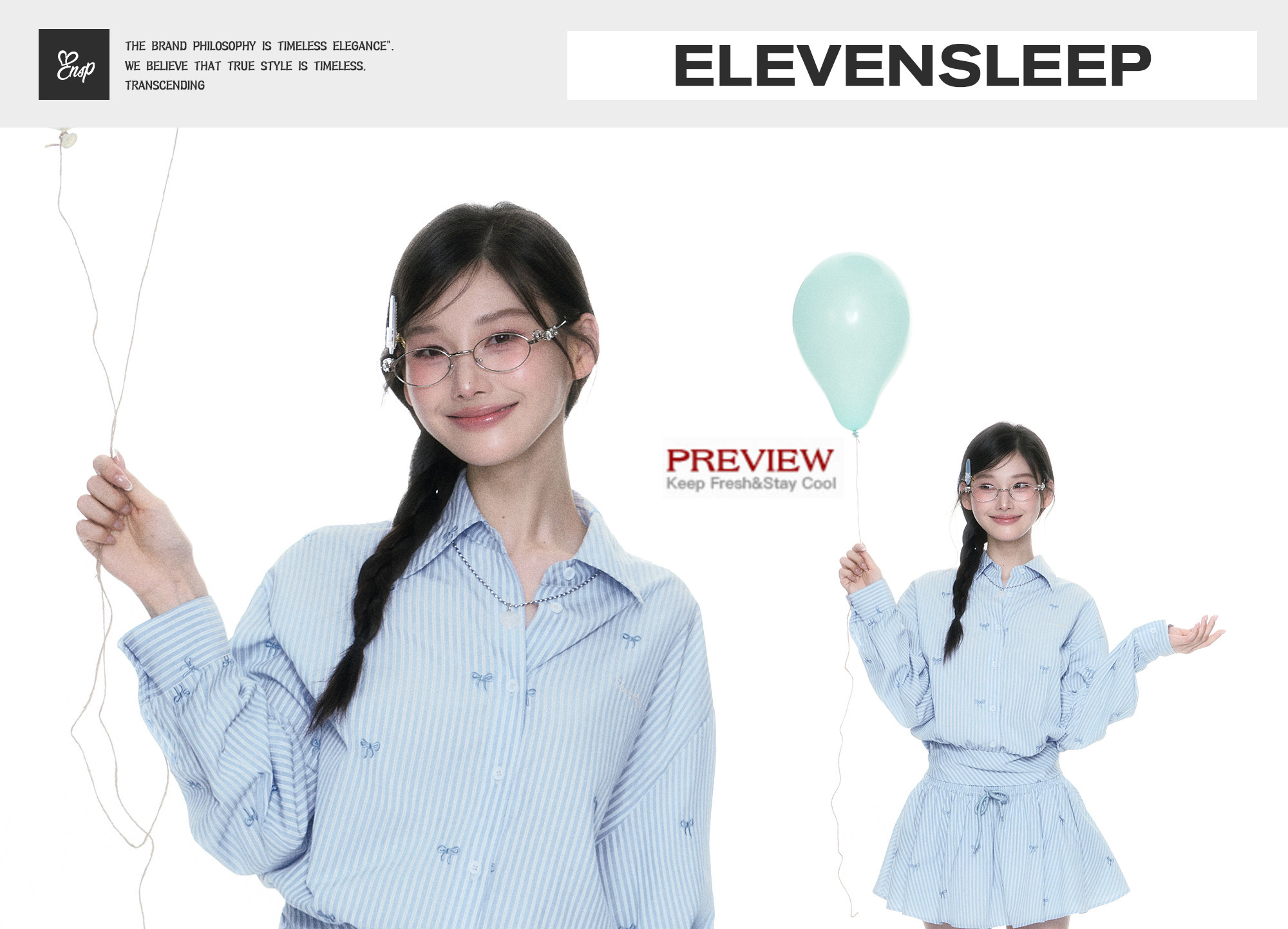 ELEVEN SLEEP Синяя рубашка, комплект, юбка, японские и корейские