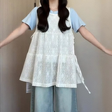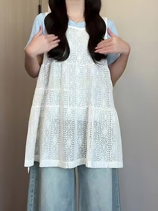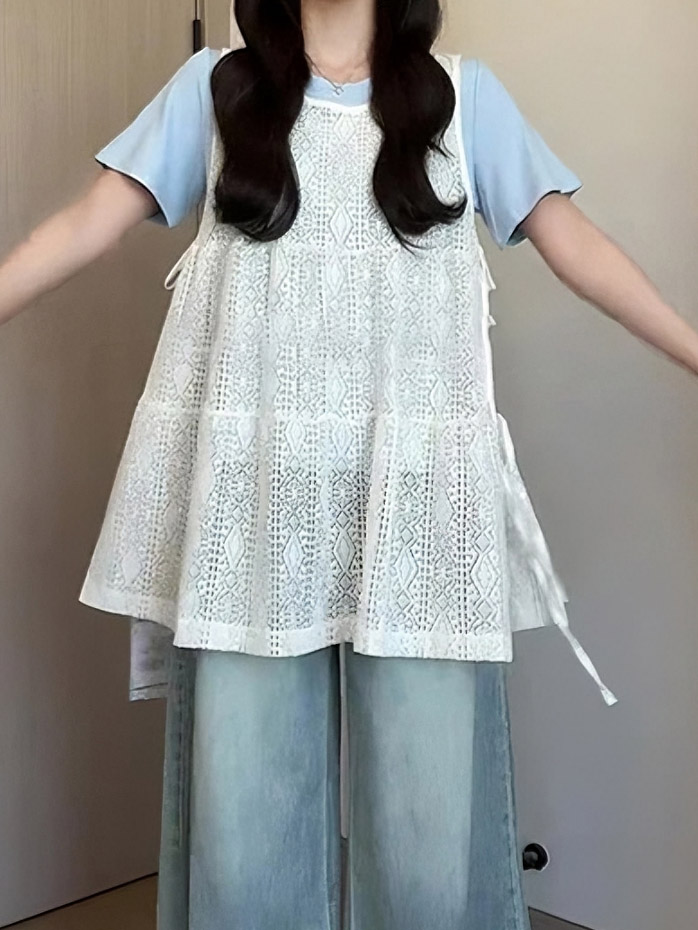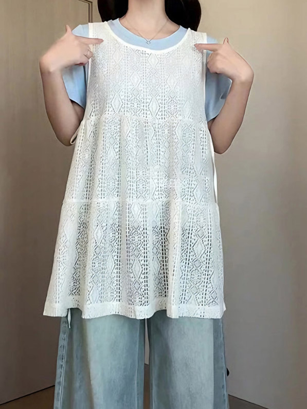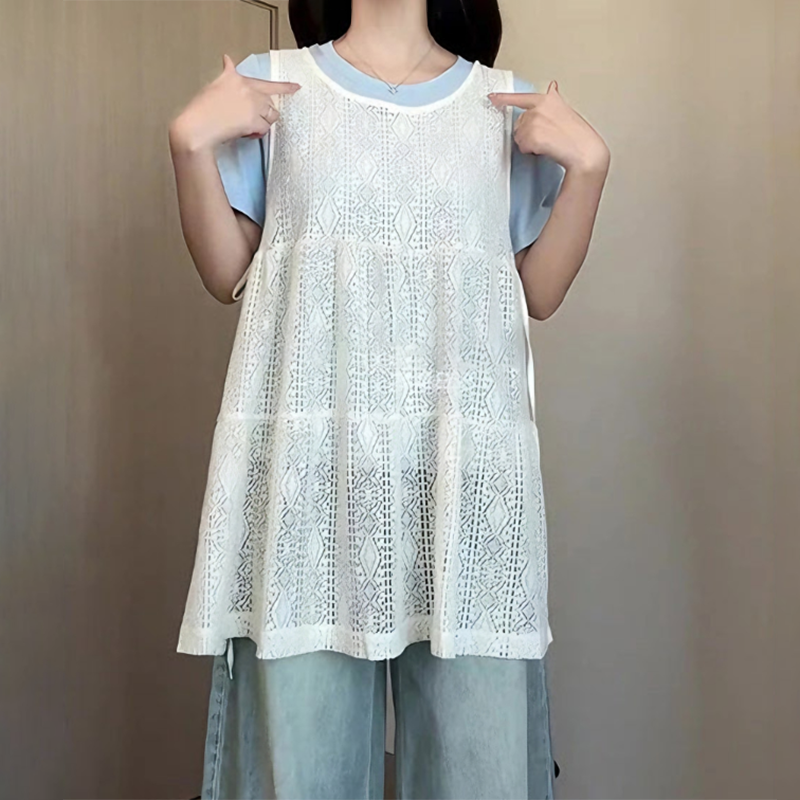 Летний кружевной комплект, жилет без рукавов, футболка, по фигуре, короткий рукав