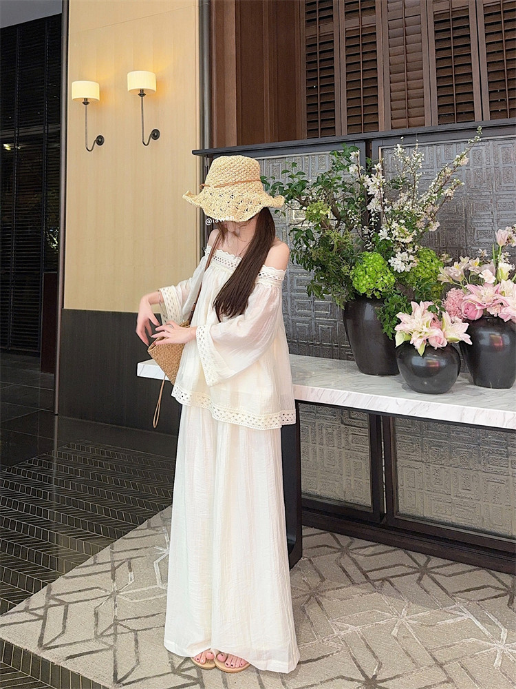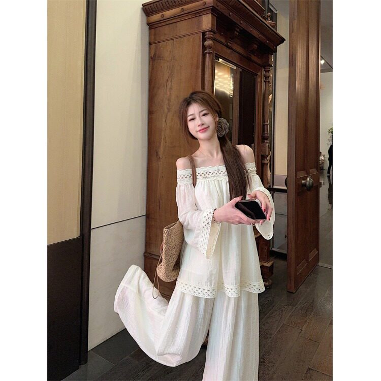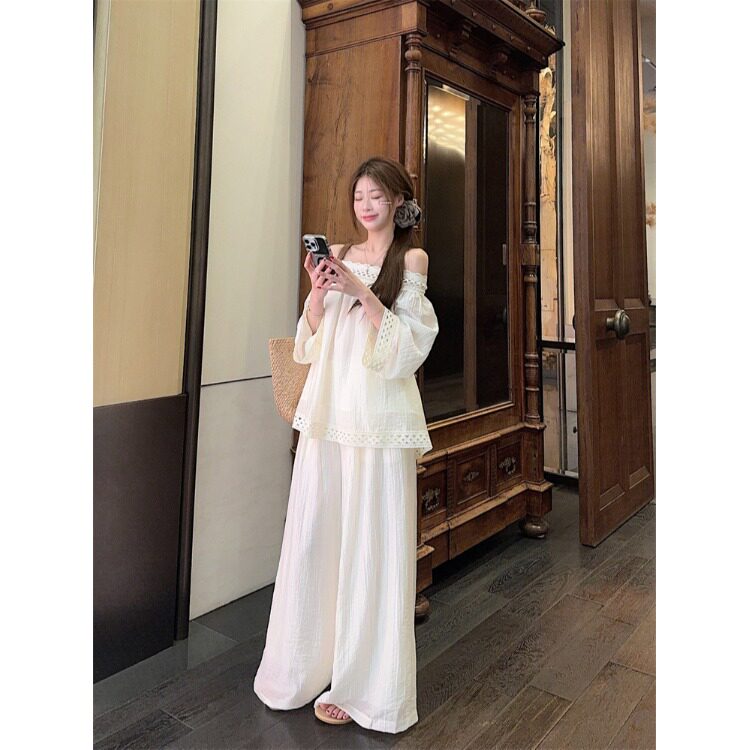 | Цвет: | Бежевый топ, Белые штаны |