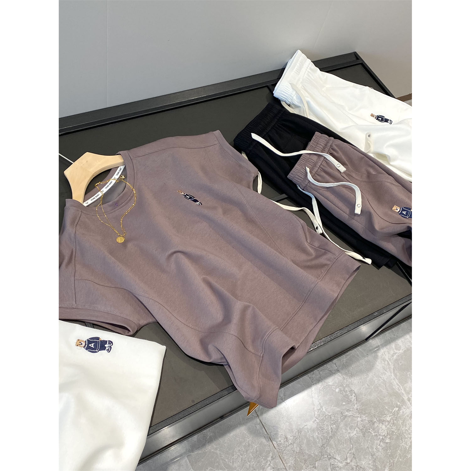 IN BLUE Комплект, с медвежатами, с вышивкой, короткий рукав, на шнурках