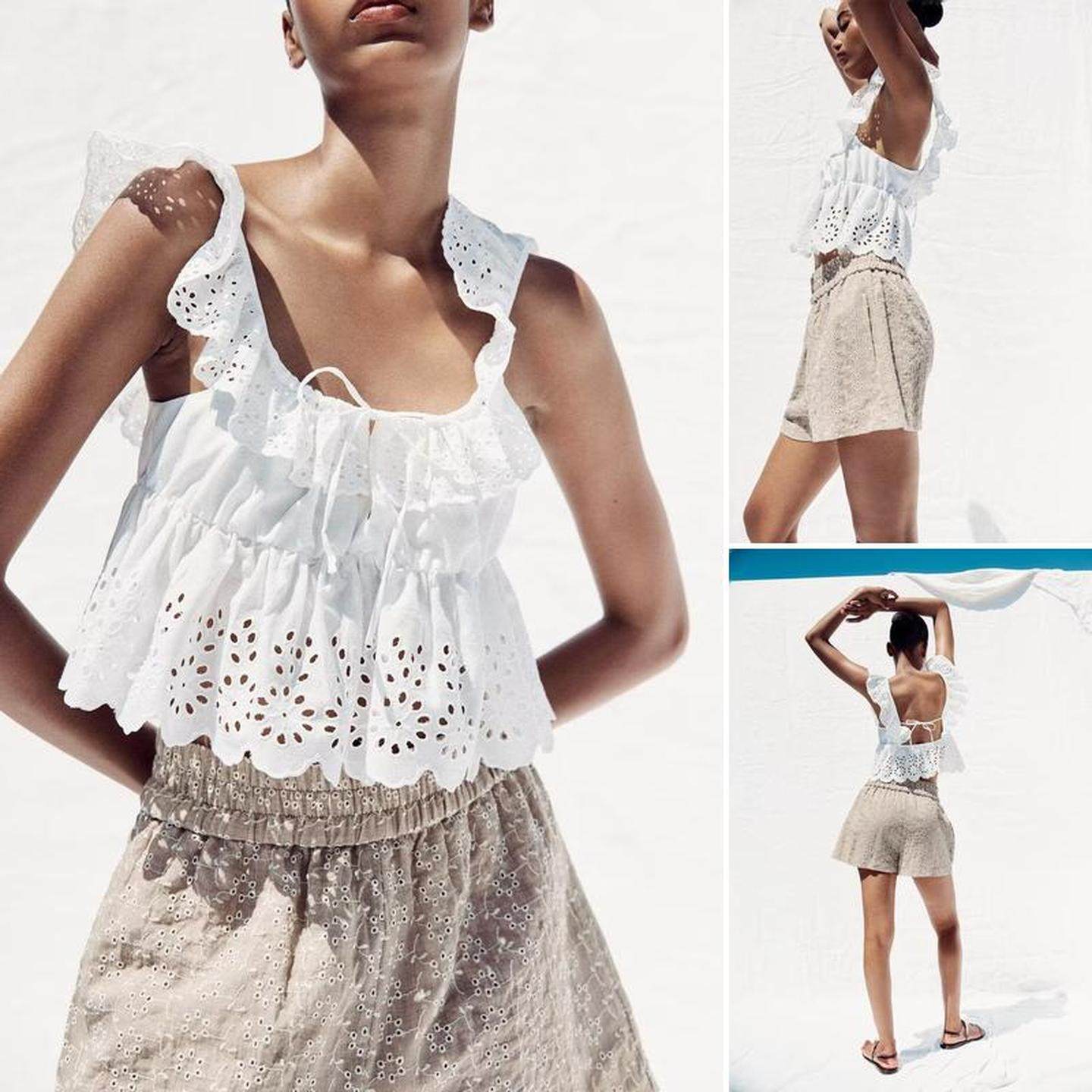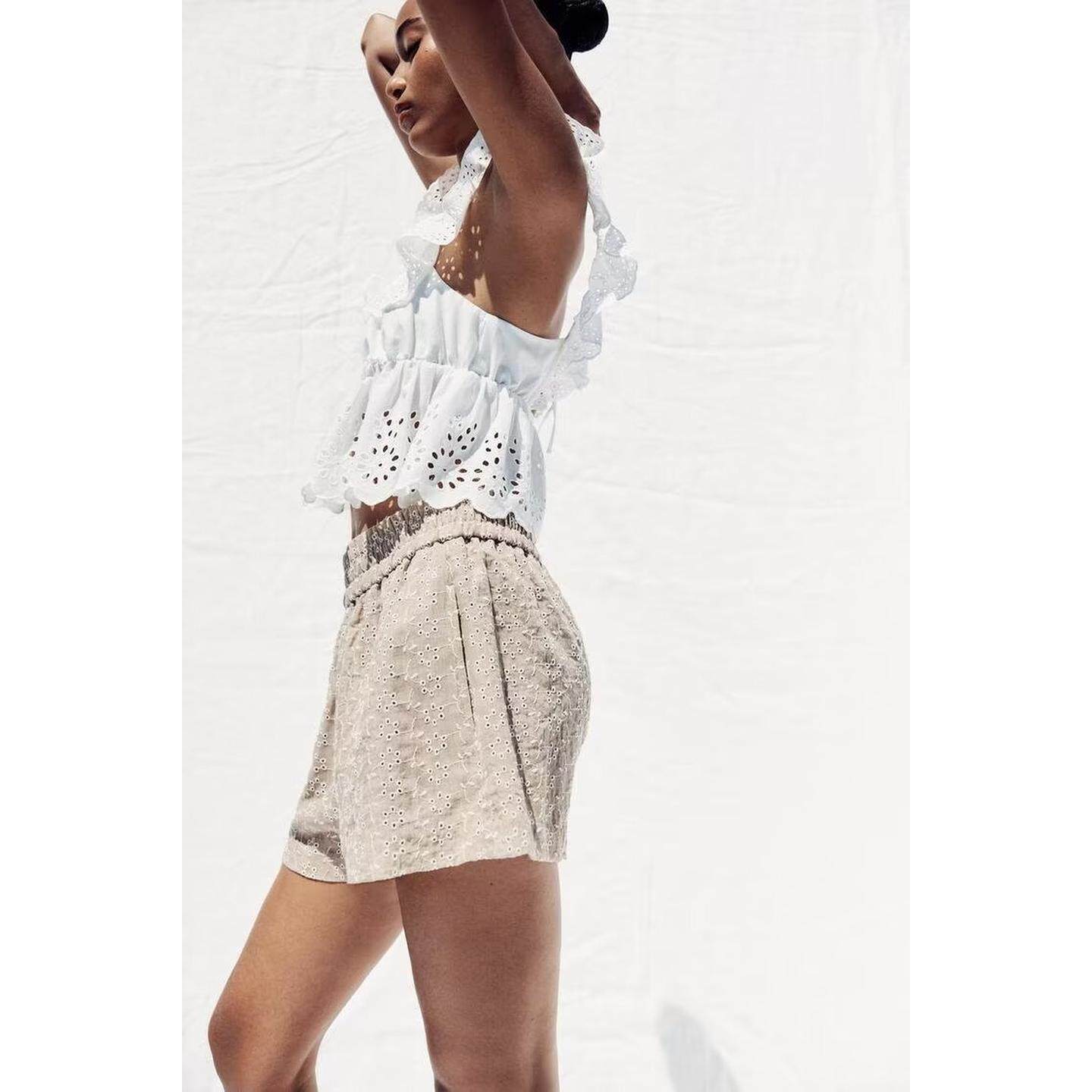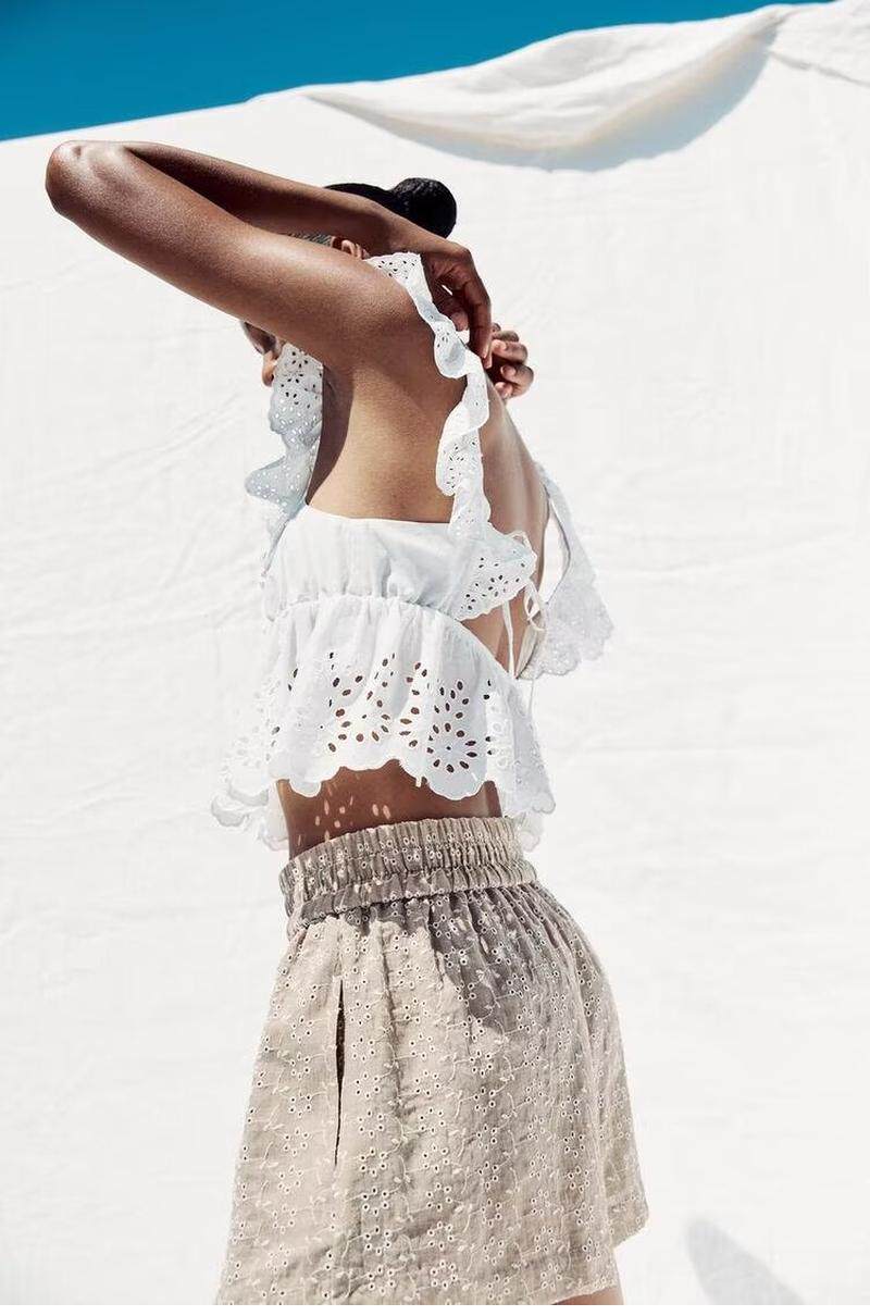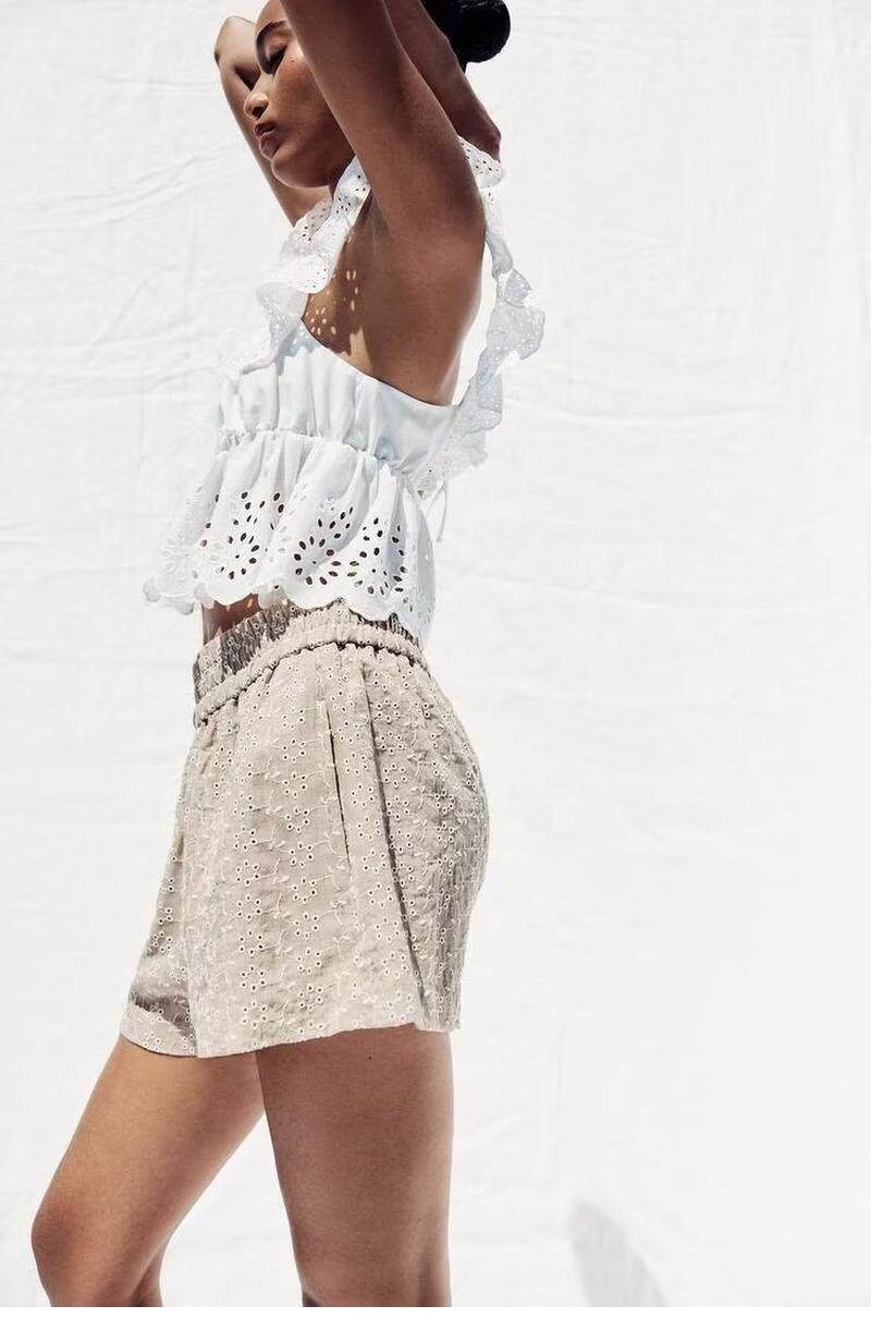Qinchuan 25 Xia Xin многослойный декоративный топ с полой вышивкой 0666099 + повседневные шорты 8073286