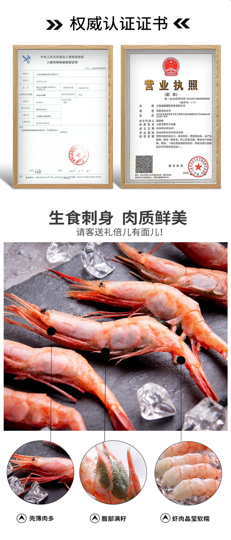 天天小船 Импортированная арктическая сладкая креветка сашими сырое питание с ограниченной раковиной японские кулинарные суши 1 кг 2 л.