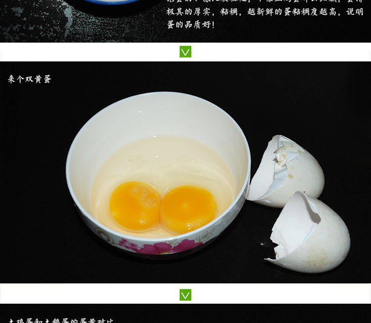 наконец*Технические характеристики яйца с гусенными яйцами в норме составляют около 80-160 граммов, которые являются одинокими желтыми, то есть только один яичный желток.Настоящее гусиное яйцо составляет около 200 граммов двойного желтого, После открытия, будут открыты 2 яичных желтка.Обратите внимание на использование веса и открытия, будь то двойной желтый, чтобы идентифицировать.
