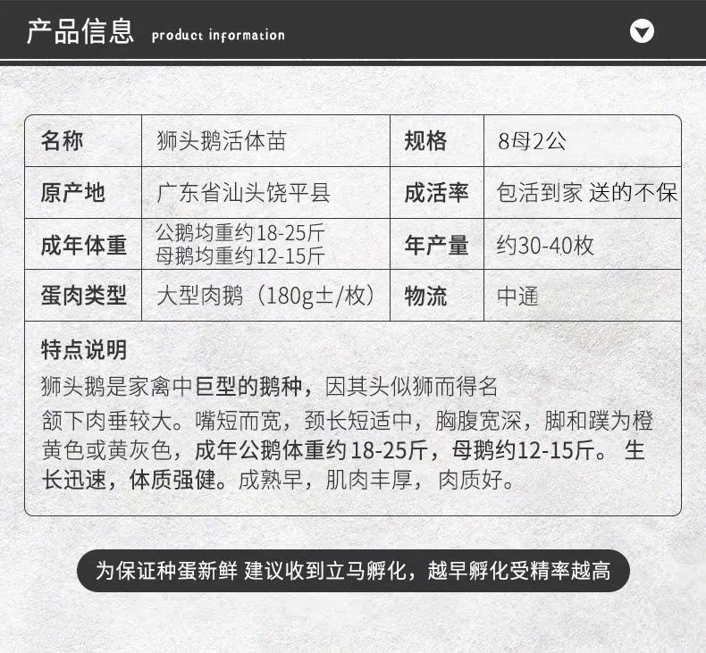 Lion Head Goose Living Miao Великие породы Аутентичная льва голова гуси