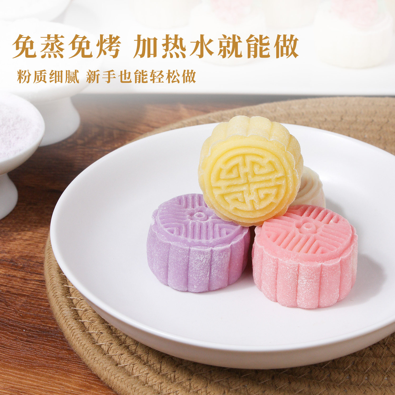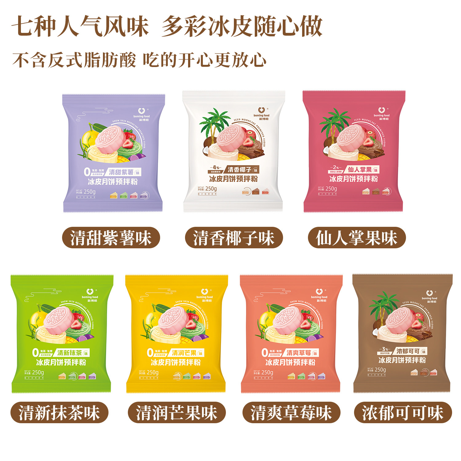 Xinbo Ming Colorful Snowskin Mooncake Предварительно смешанный порошок Не требует пропаривания, выпечки или окрашивания Порошок Mooncake середины осени со вкусом клубники, манго и матча