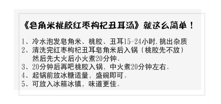 Перед употреблением сапонина вам нужно впитывать воду в течение около 24 часов, взять около 5-10 граммов на человека и изменить воду посередине в течение 1-2 раза. Рекомендуется впитать в холодильнике летом и и Затем тушить 30-60 минут.