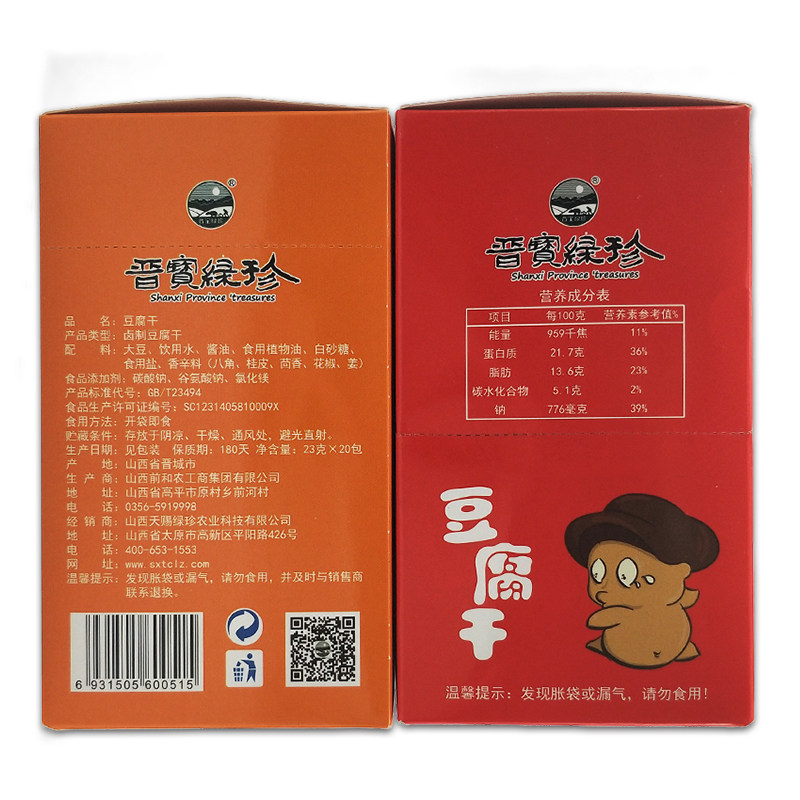 晋宝绿珍 Leisure Tofu Dry Argrance, сухой тушеной маленькие закуски маленькие упаковки закуски много со вкусом 23 г*20 мешков