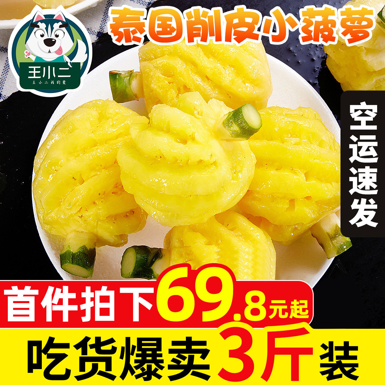 Тайский маленький ананасовый импорт должен приправить фрукты с пресной водой, целую коробку, ручные волны, ананасовый ананас, бесплатная доставка 3 фунта парабии