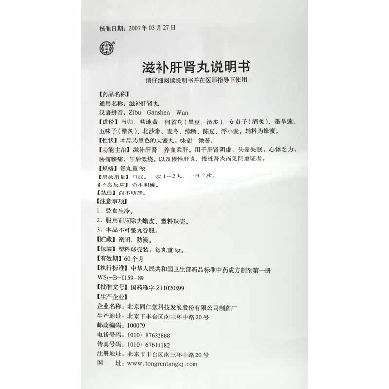 同仁堂 Питательная таблетка почки печени 9G*10 таблетки/коробка подлинный большой флагманский магазин аптеки