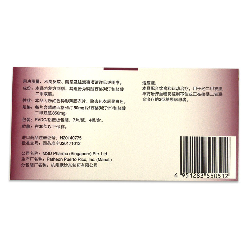 捷诺达 Гонота сигериновый двойной -дал -тадпорт II 50 мг/850 мг*28 таблетки/коробка для диабетических симптомов
