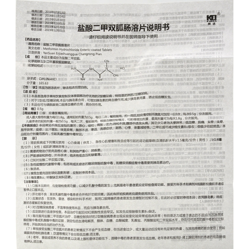 KD/凯达 Гидрохлорновая кислота Di Metamoreica кишечные растворимые таблетки 0,5 г*60 таблетки*1 бутылка/коробка с ожирением.